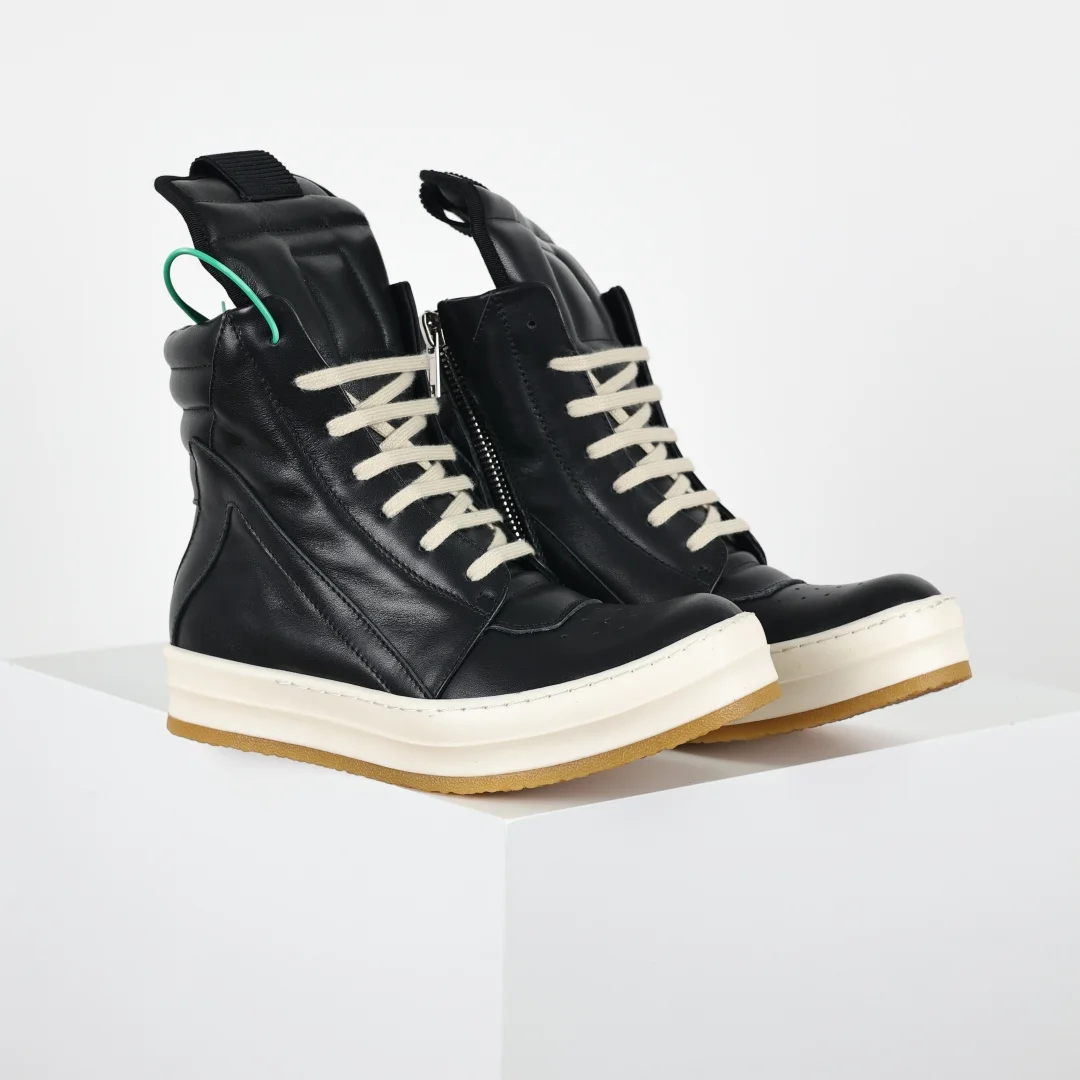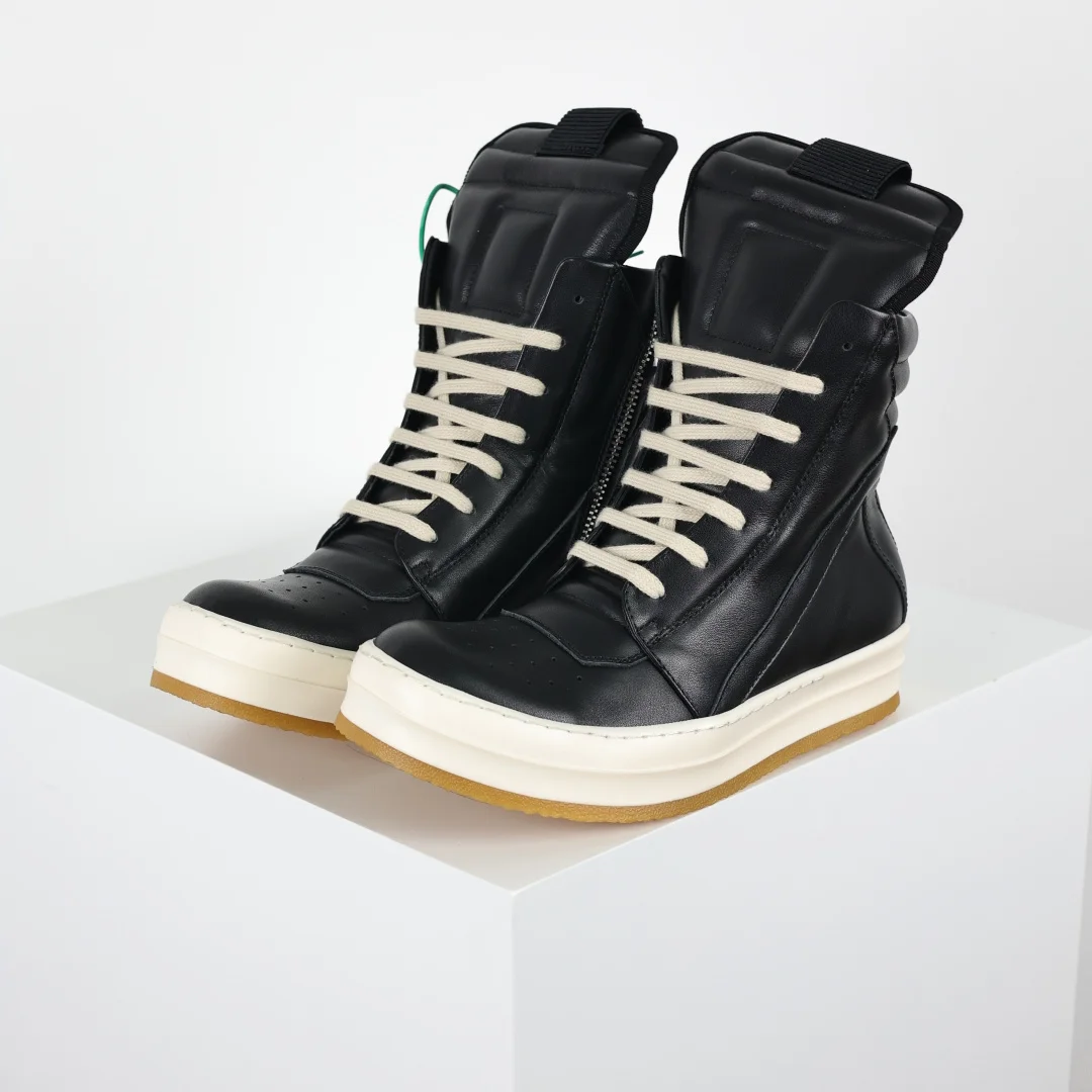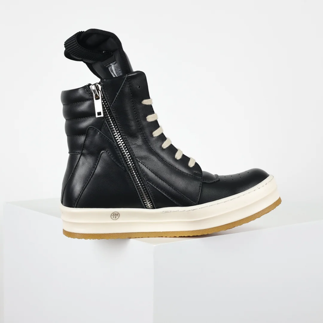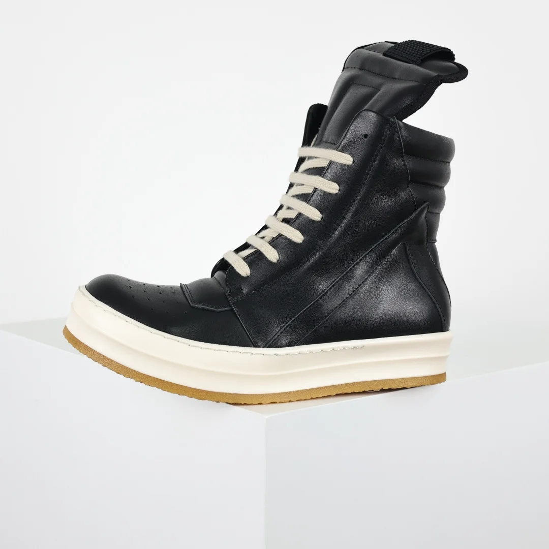 Rick Owens High-Top Casual Sneakers, Exclusive Private Mold Outsole, Custom Top Layer Cowhide, Stitching Distance is Extremely Restored, 1:1 Specification Gift Box, Weighing Over 3 Jin, Plus Custom Owens Protective Box, Complete Packaging and Accessories, High-End Retail Exclusive Quality, Distinguishable from Market Goods, Purely Handmade, Each One is Unique with a Handmade Texture.