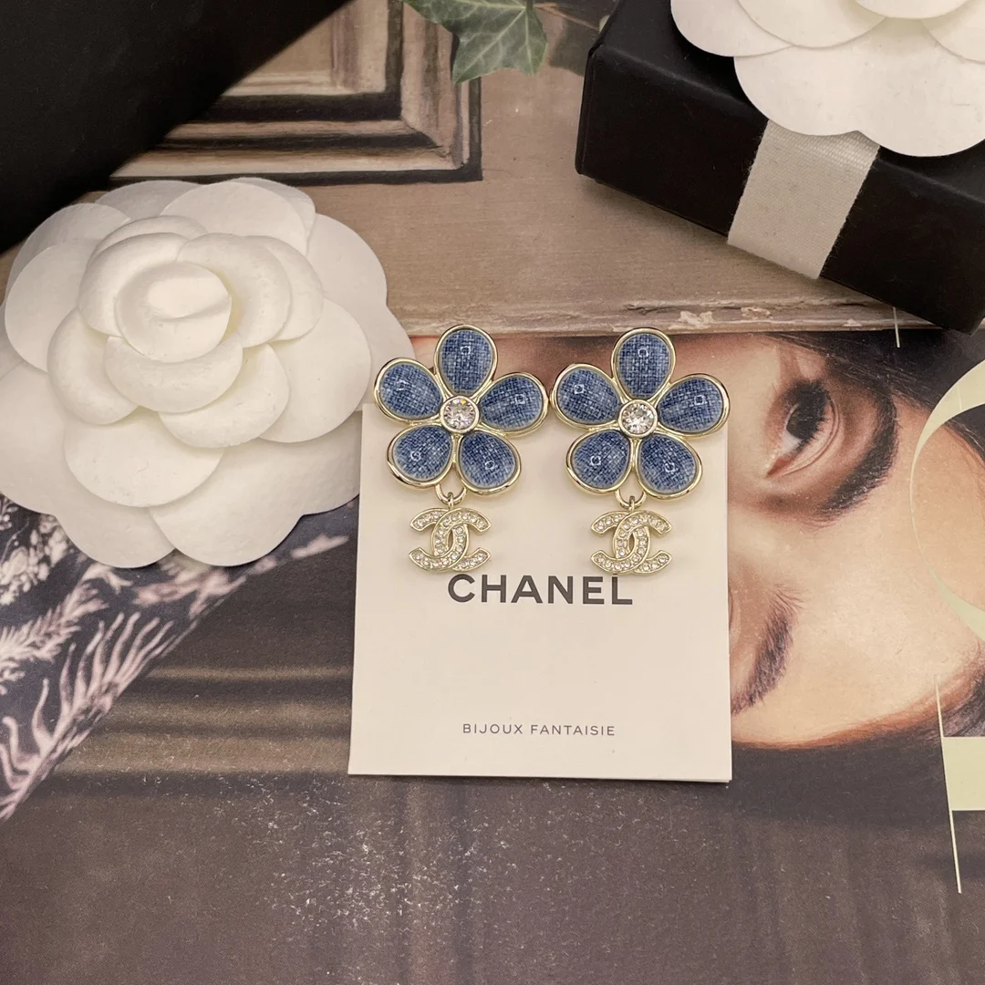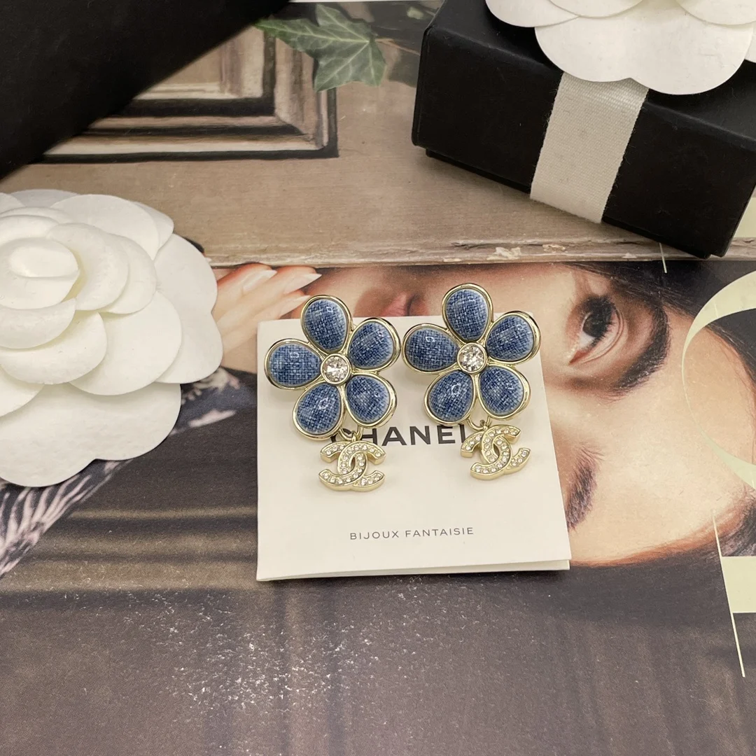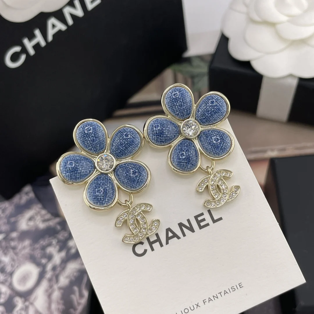 Chanel Imitation Chanel denim floral drop C earrings