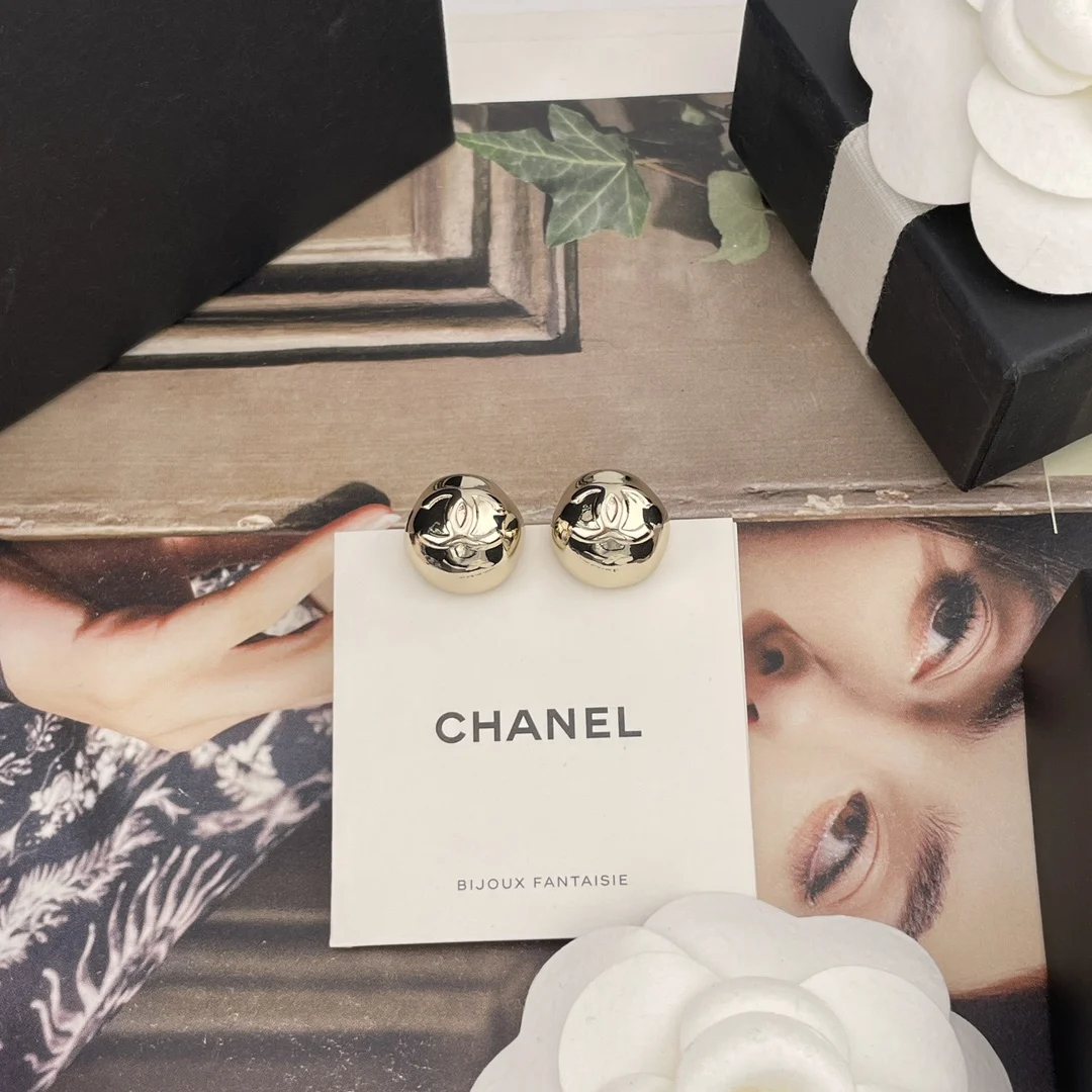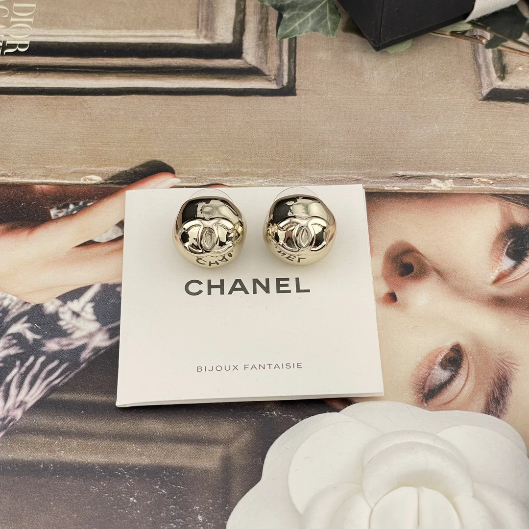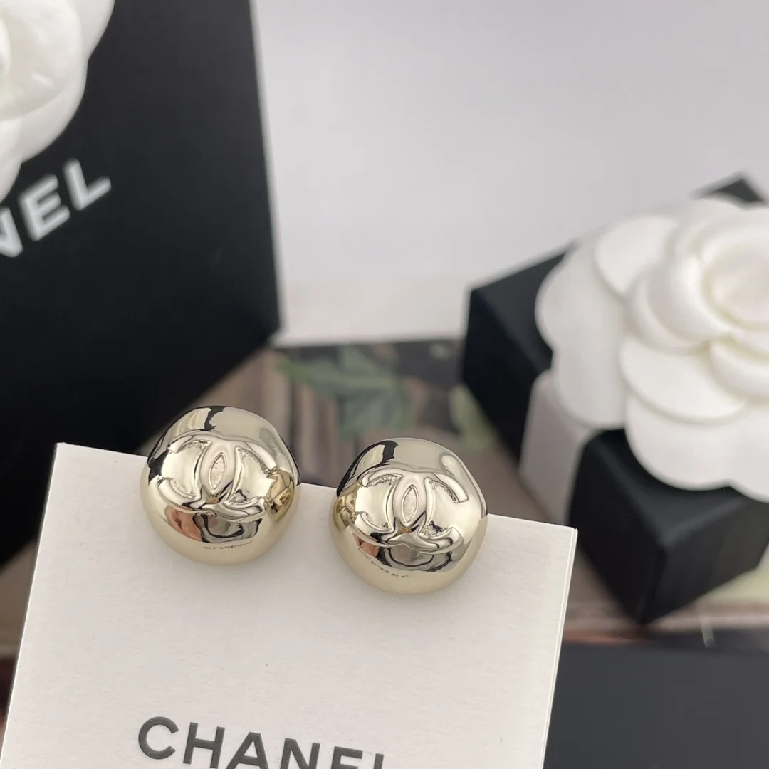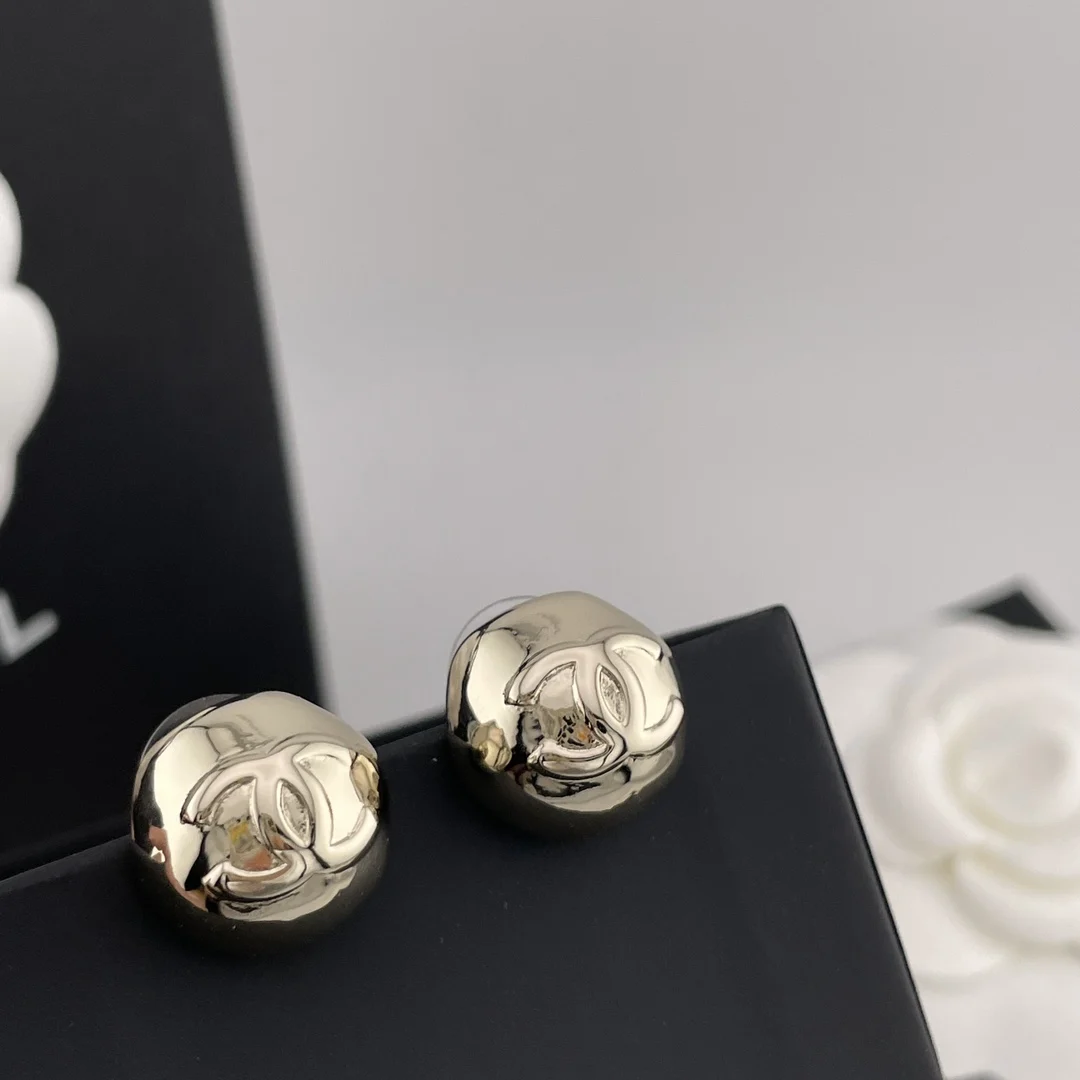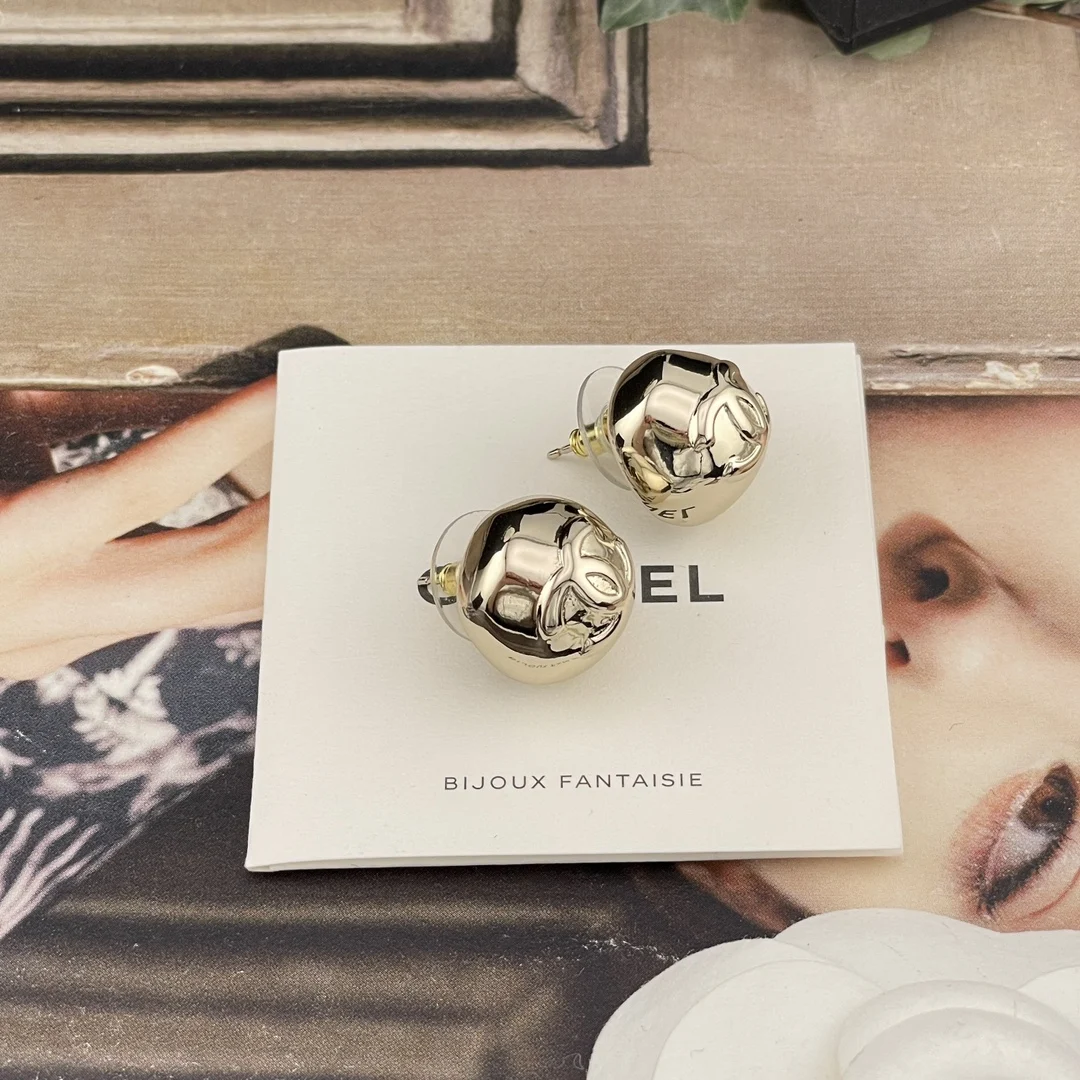 Chanel Irregular hemispherical metal stud earrings
