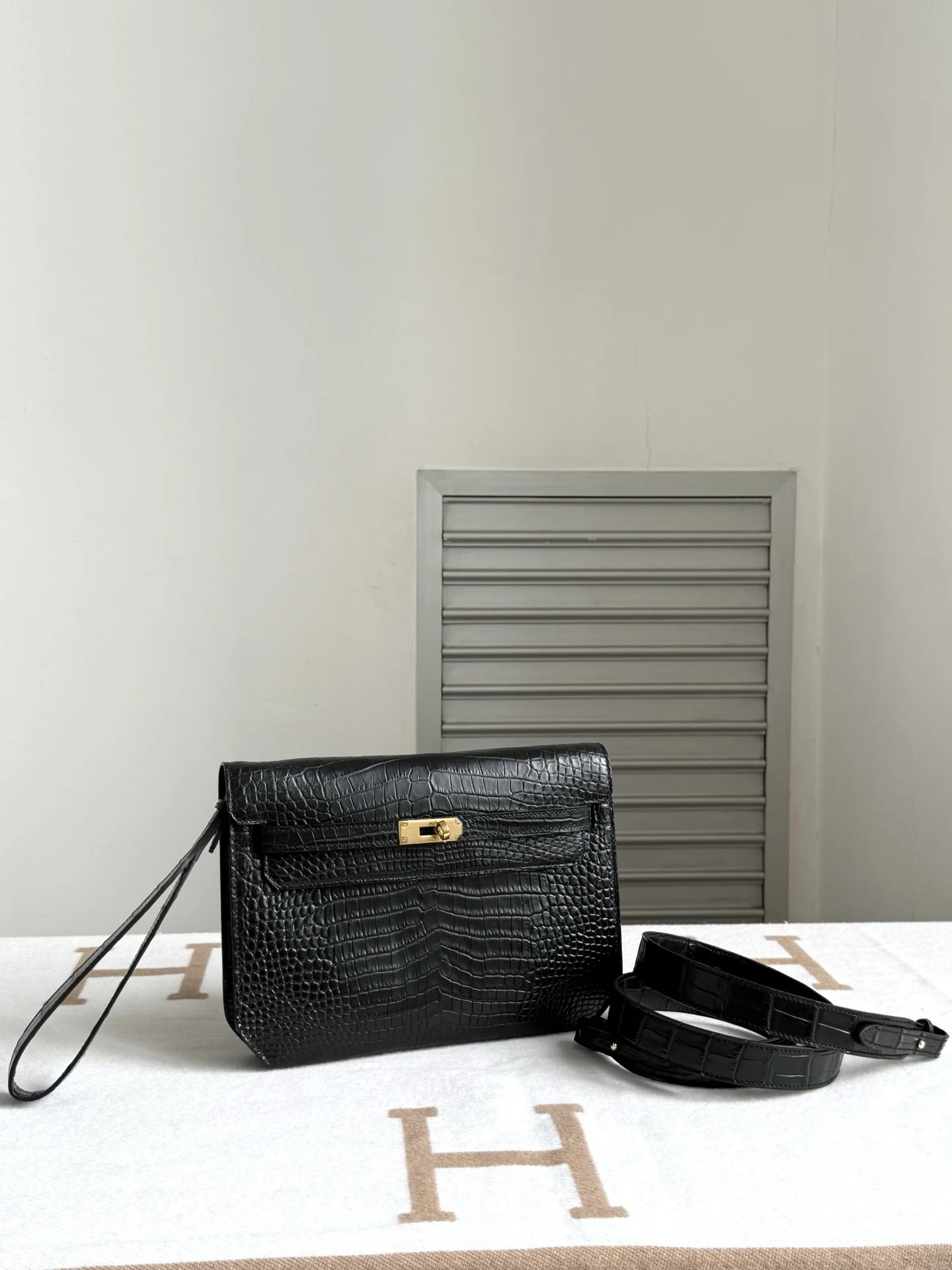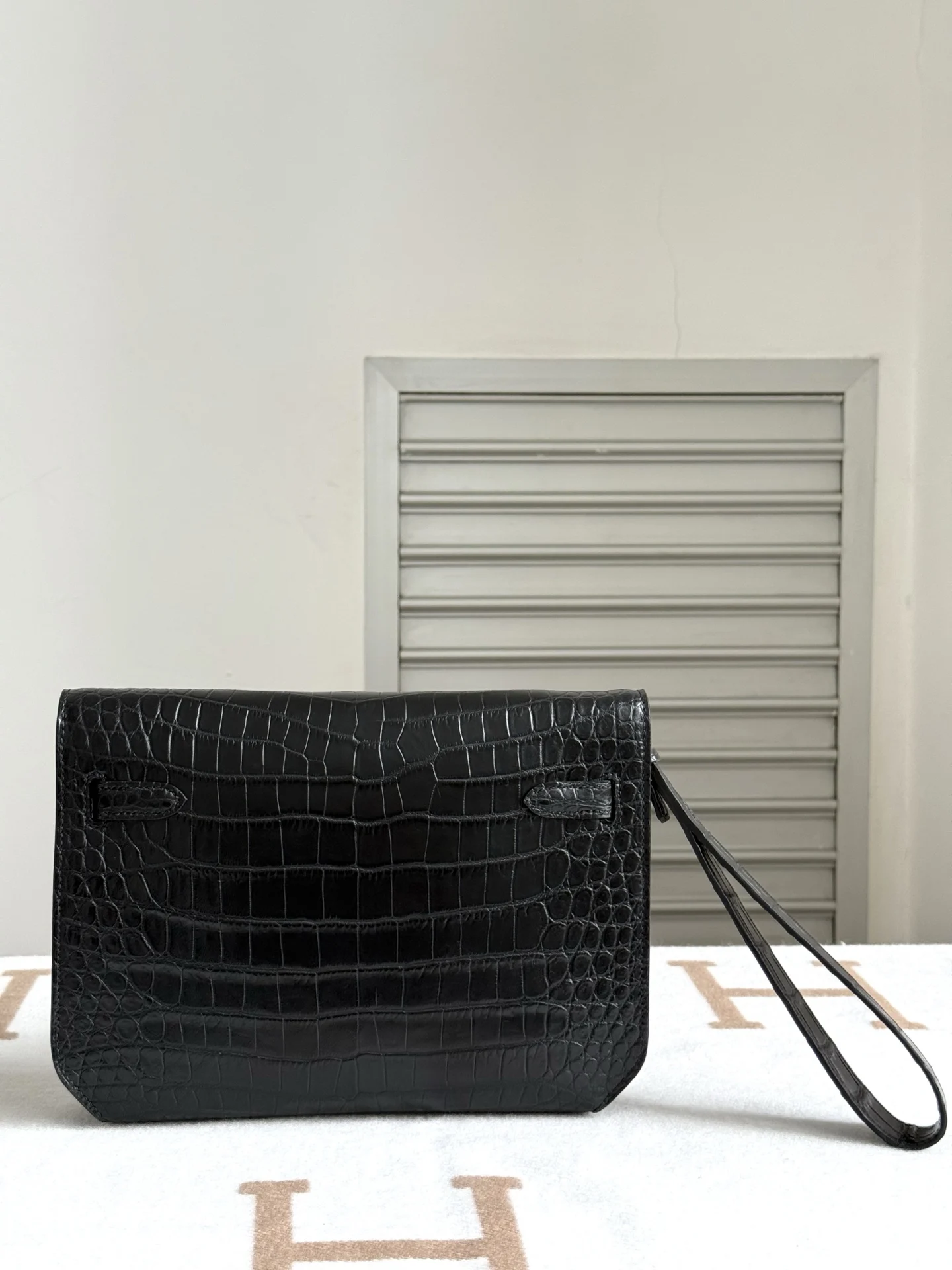 Hermes Kelly Depeches 25cm Clutch, Imported Matte Alligator Belly Leather, Handbag
