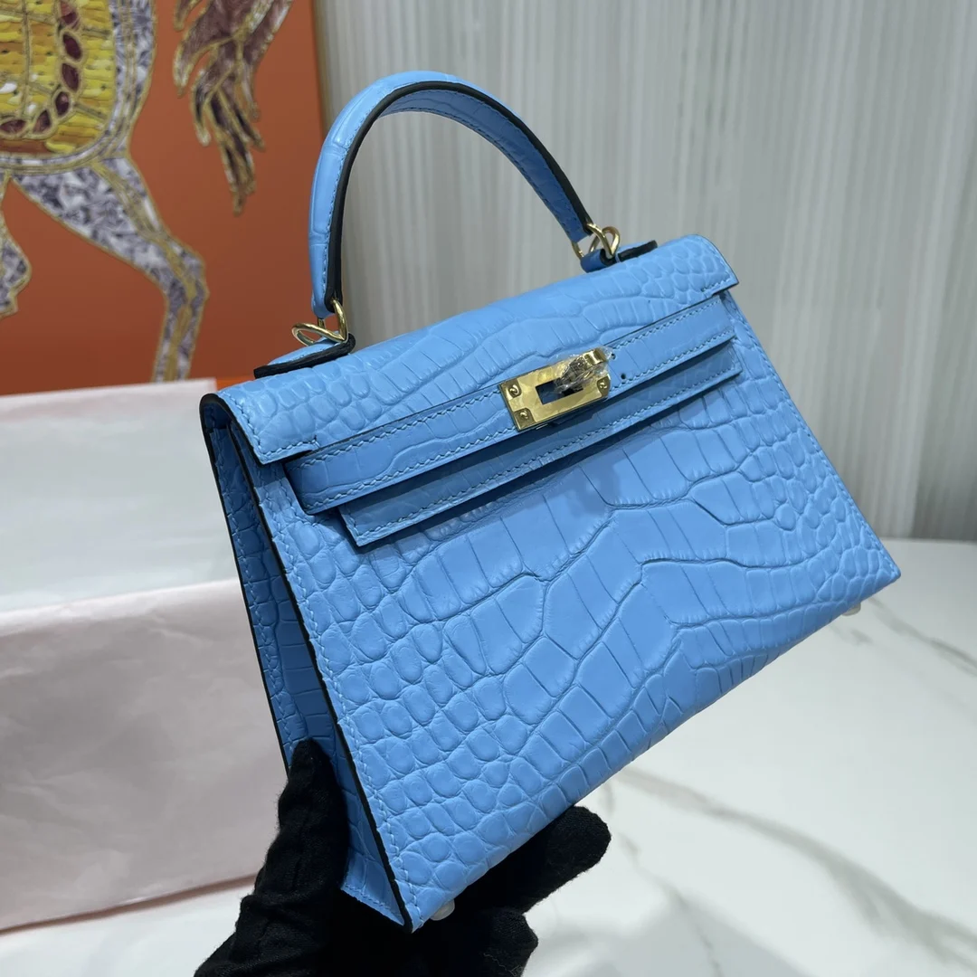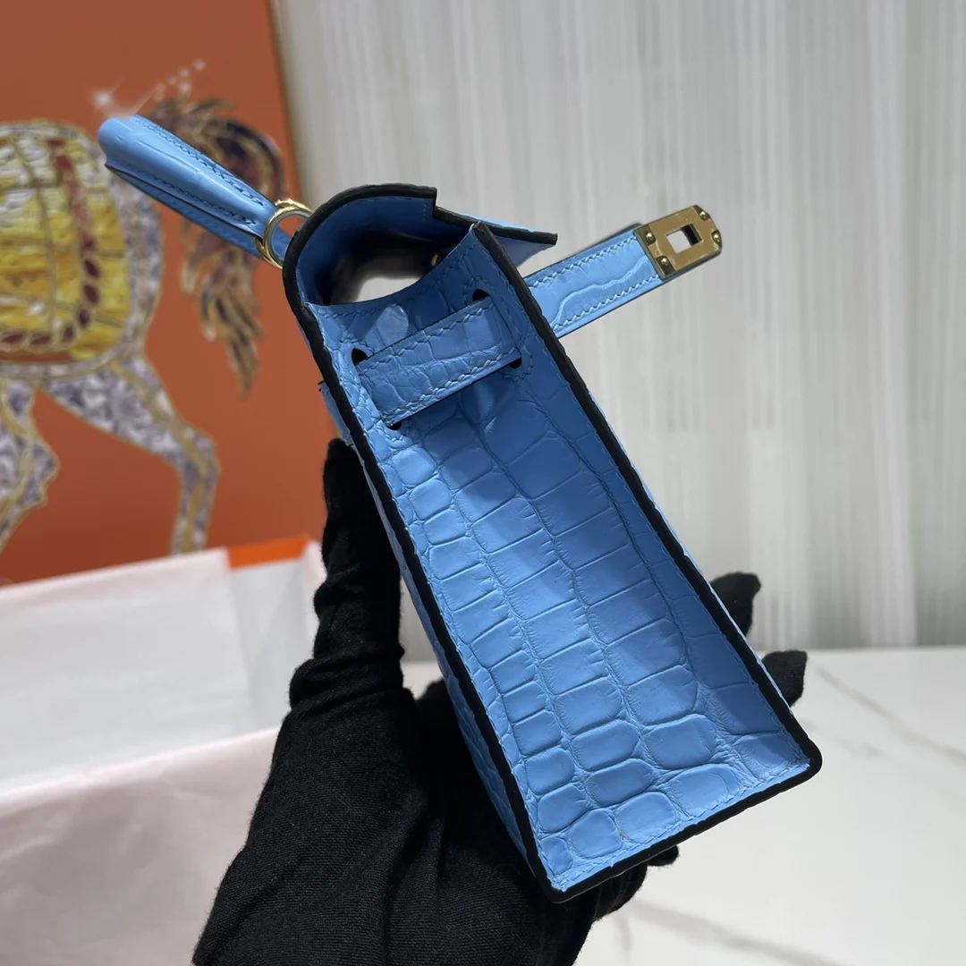 Kelly II 19cm Imported American Matte Alligator Leather, Hand-stitched Exact Replica of Boutique American Alligator