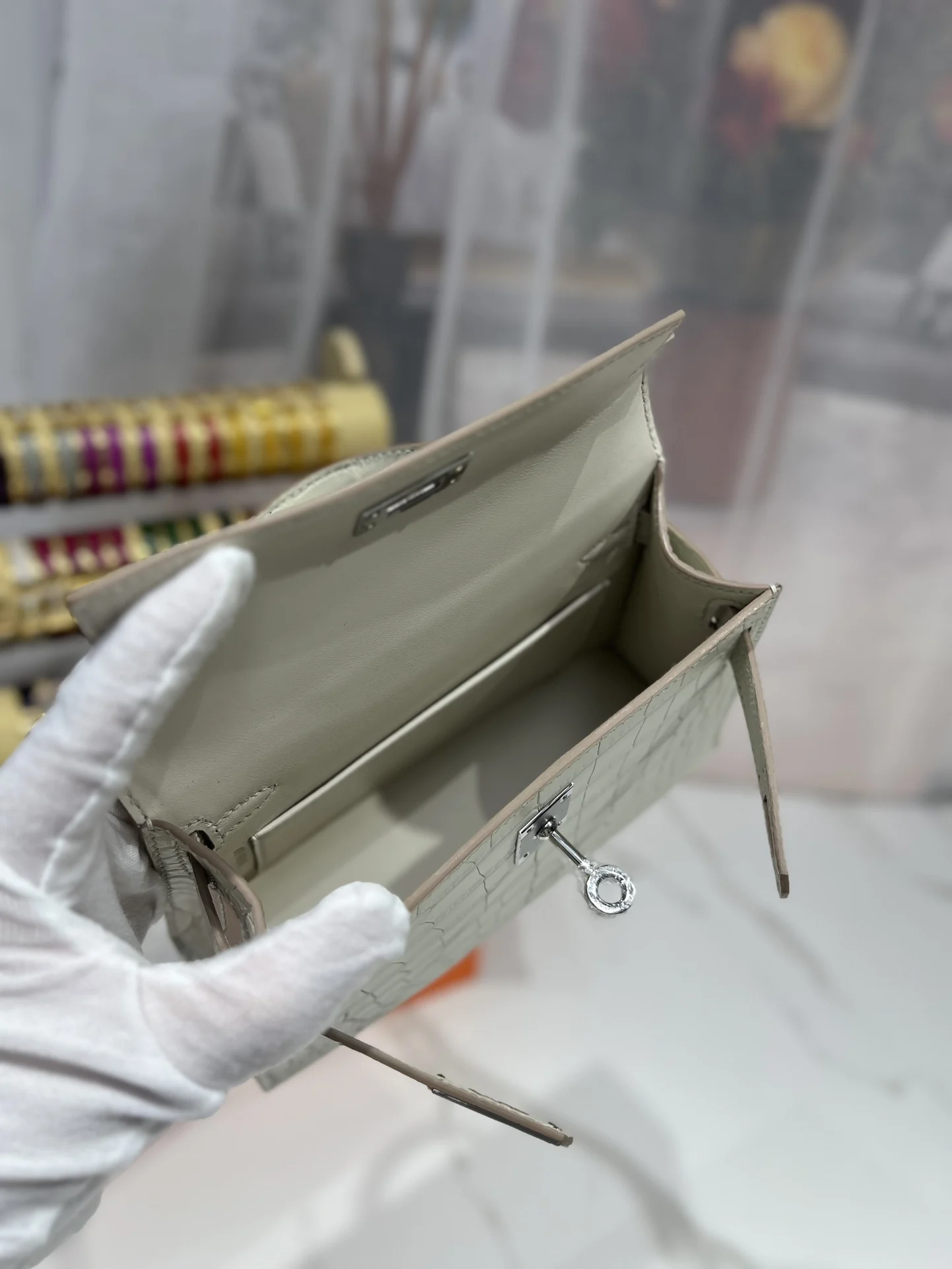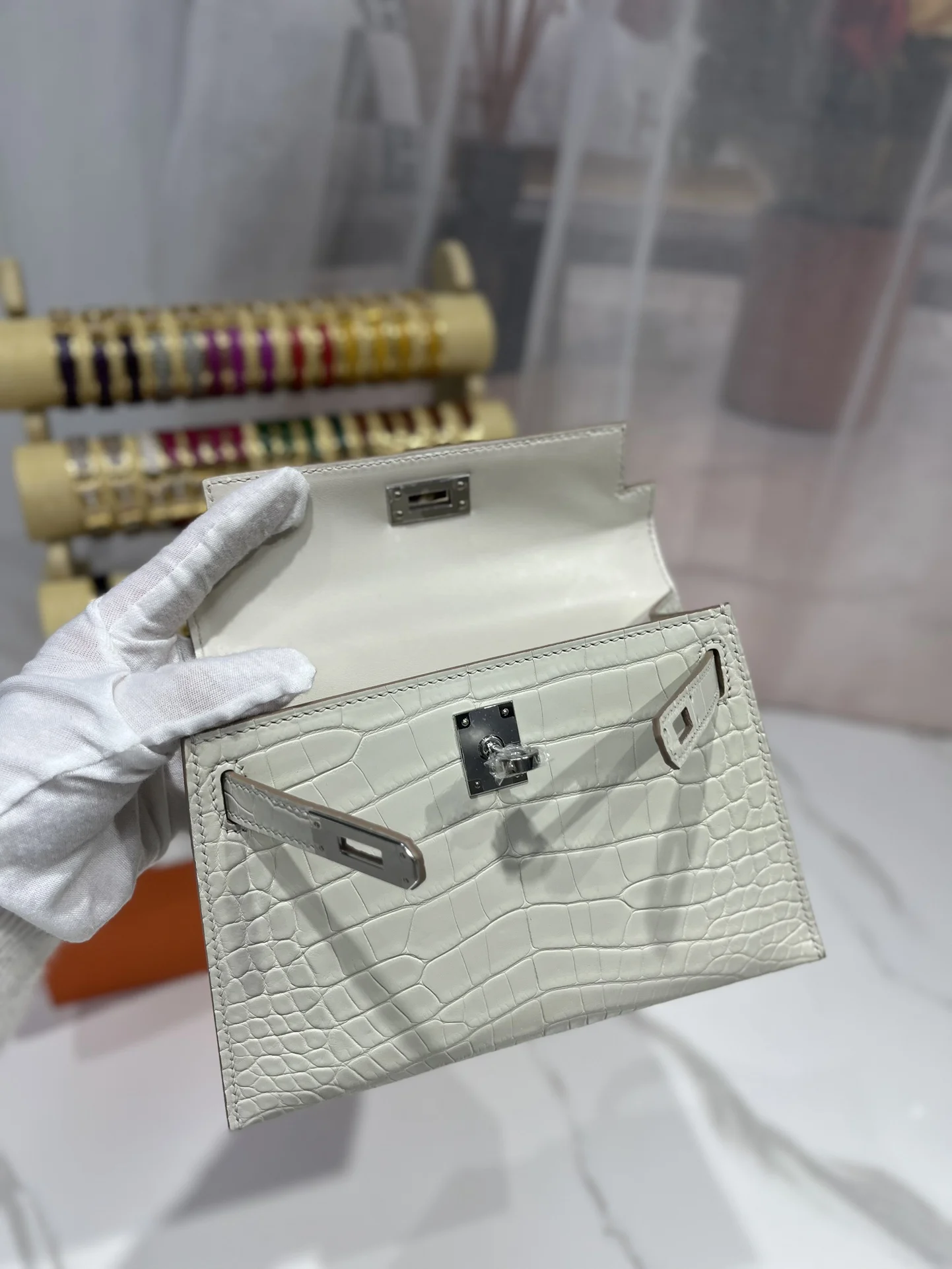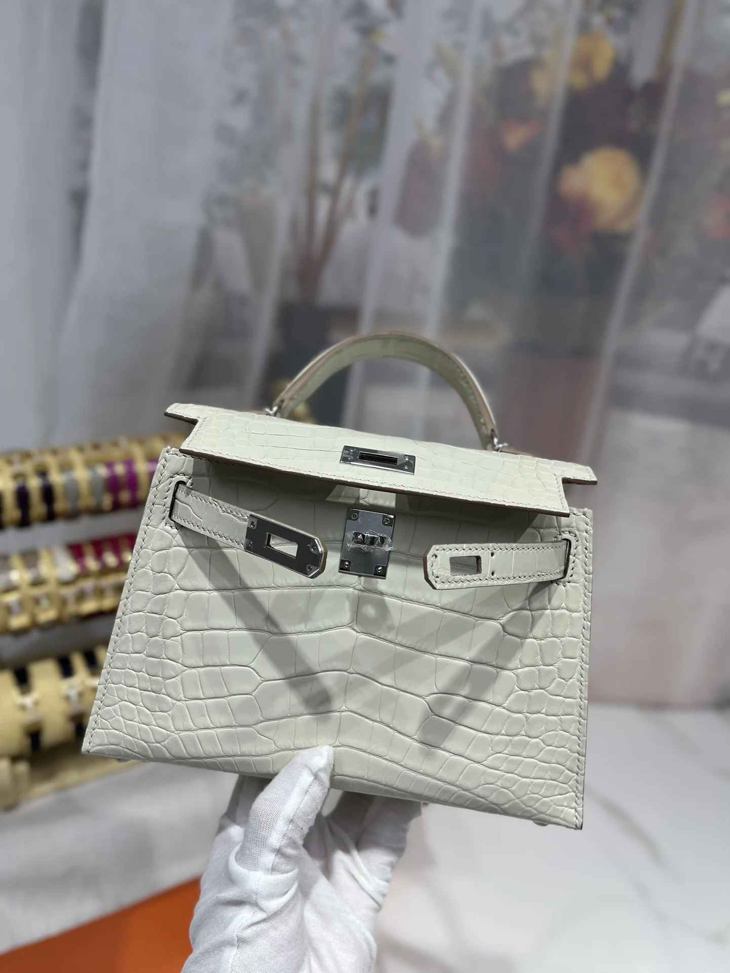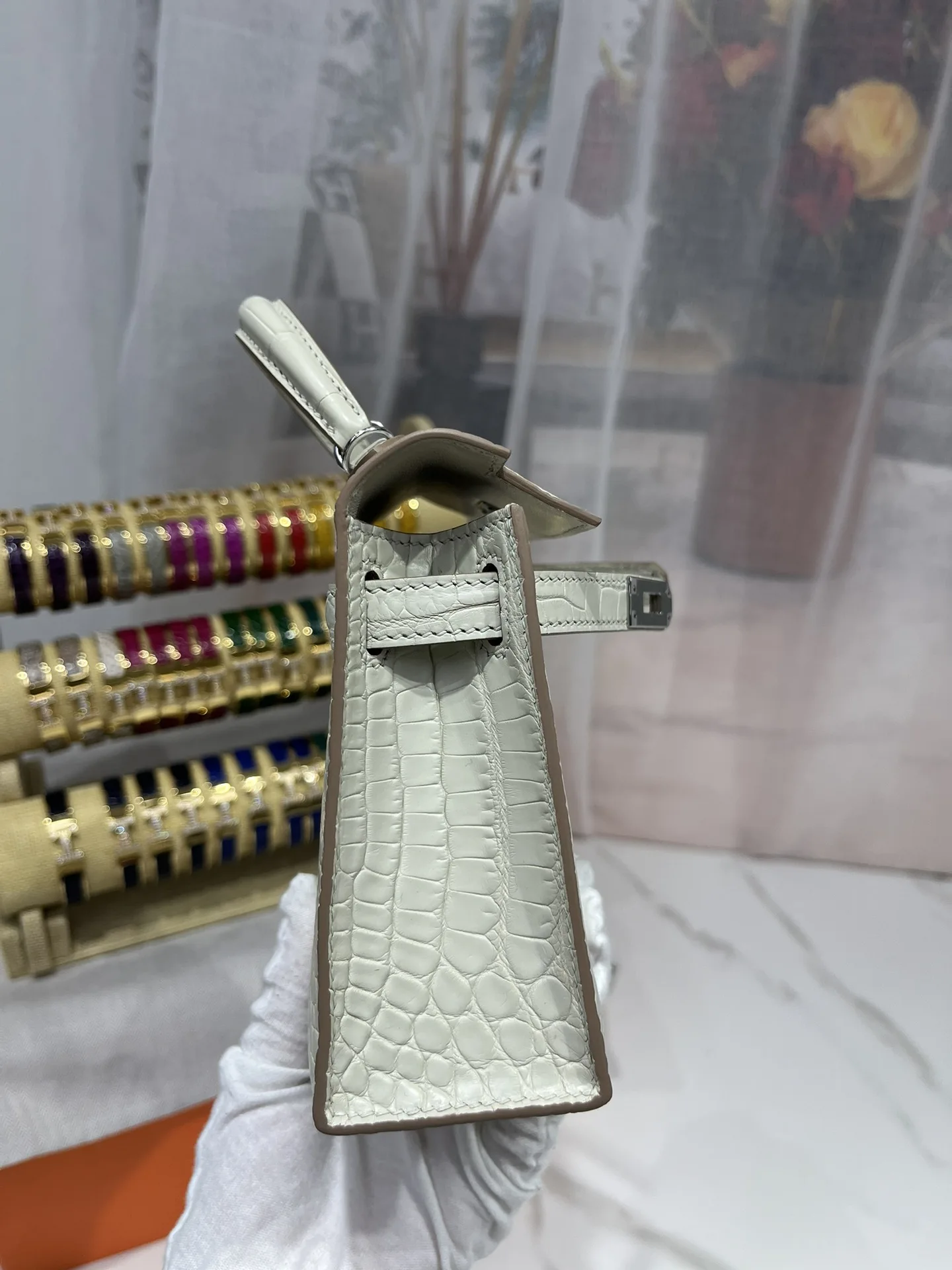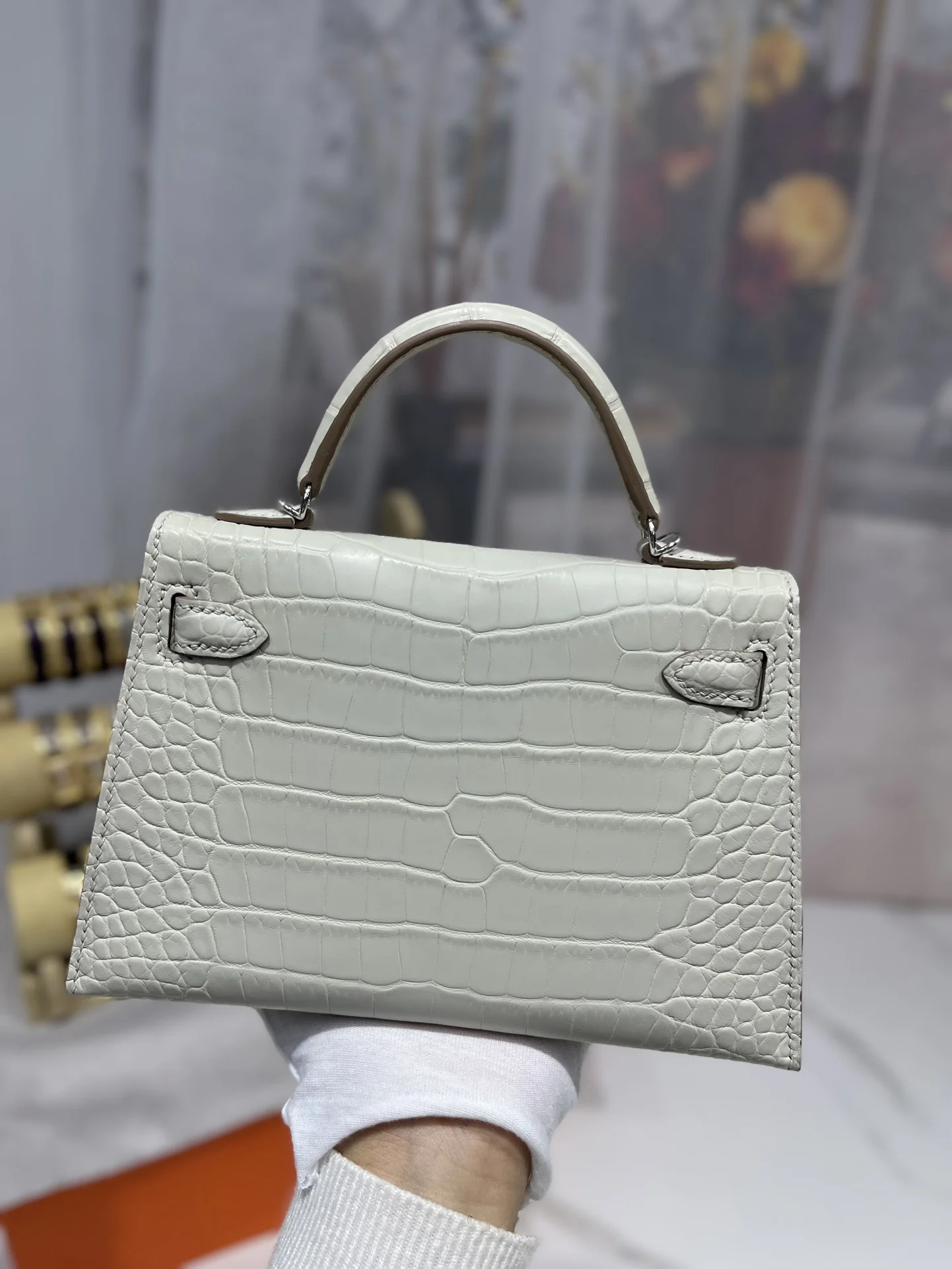 Mini 2nd generation 19cm matte American alligator, glacier silver buckle [color]. Matches the authentic American alligator from the boutique.