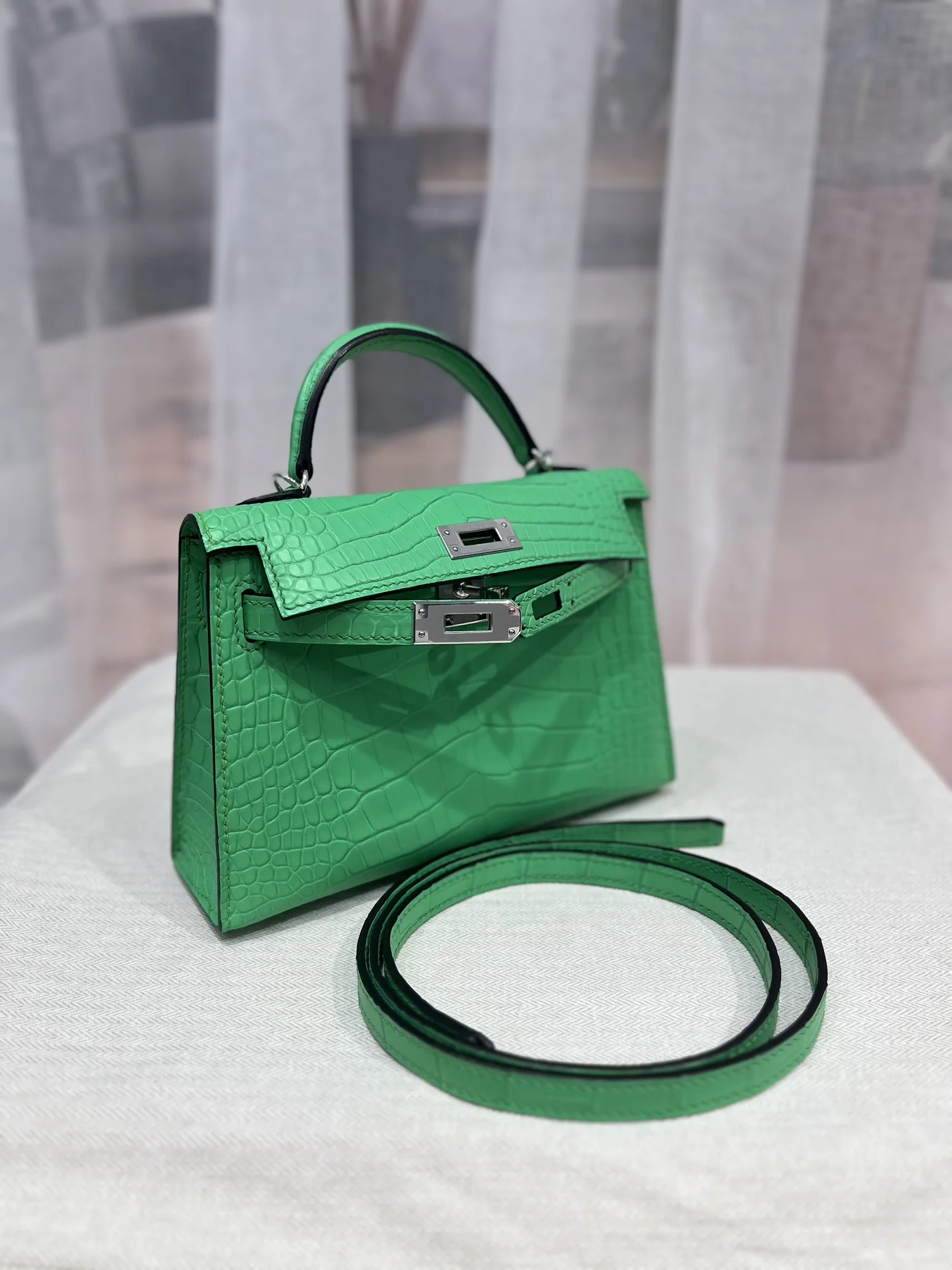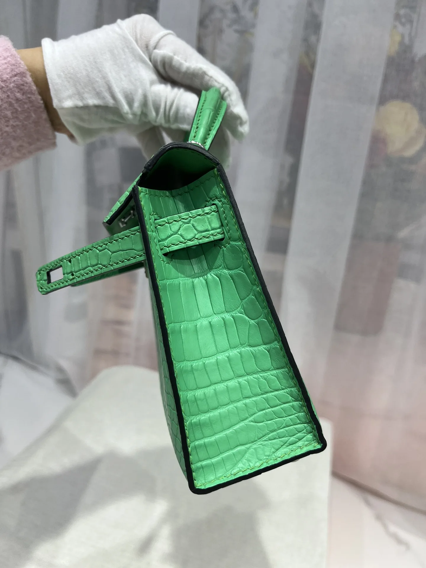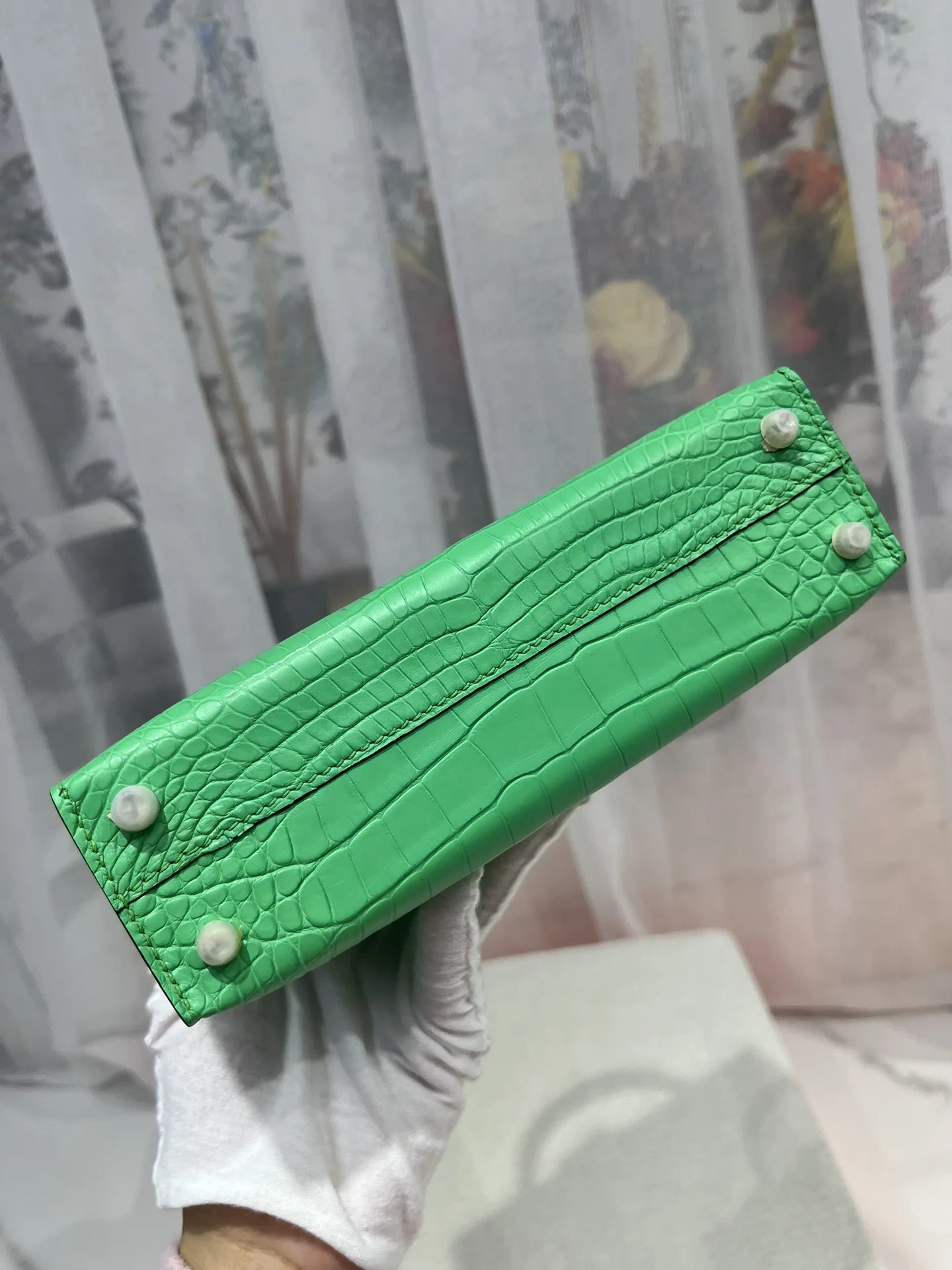 Kelly II 19cm Imported American Matte Alligator Leather, Hand-stitched Matches Authentic American Alligator.