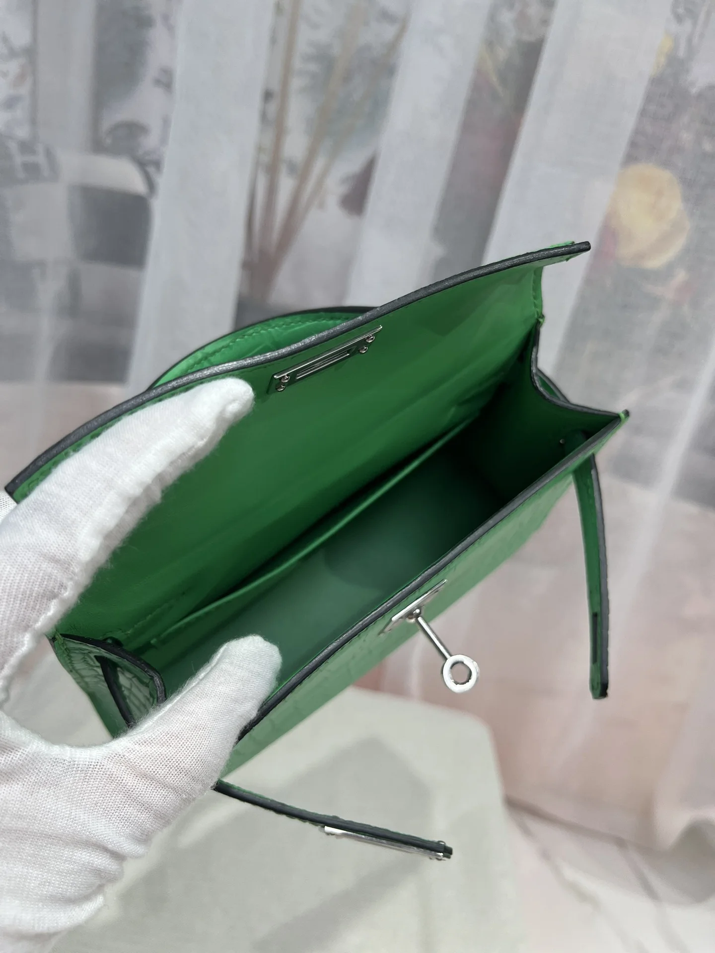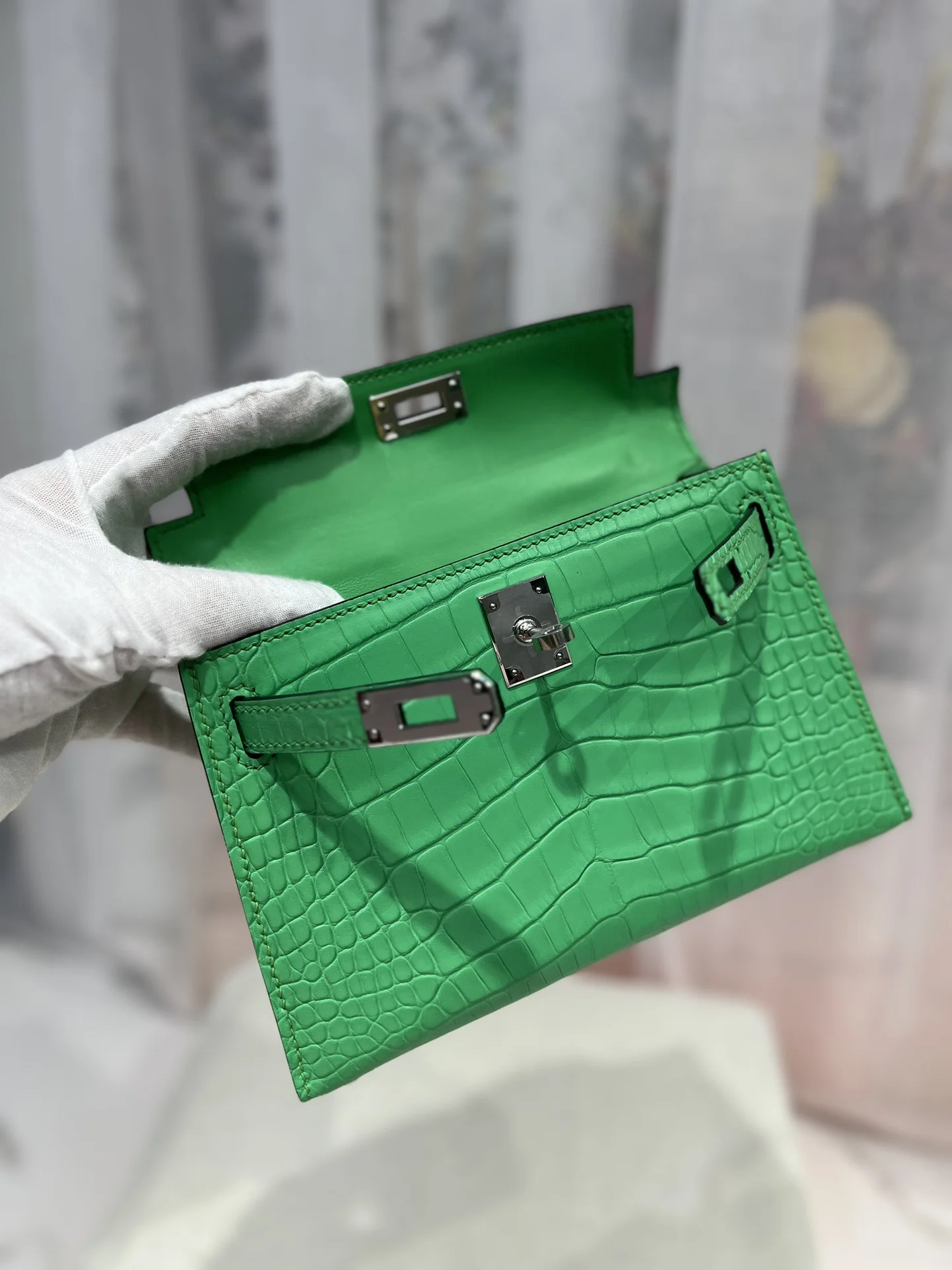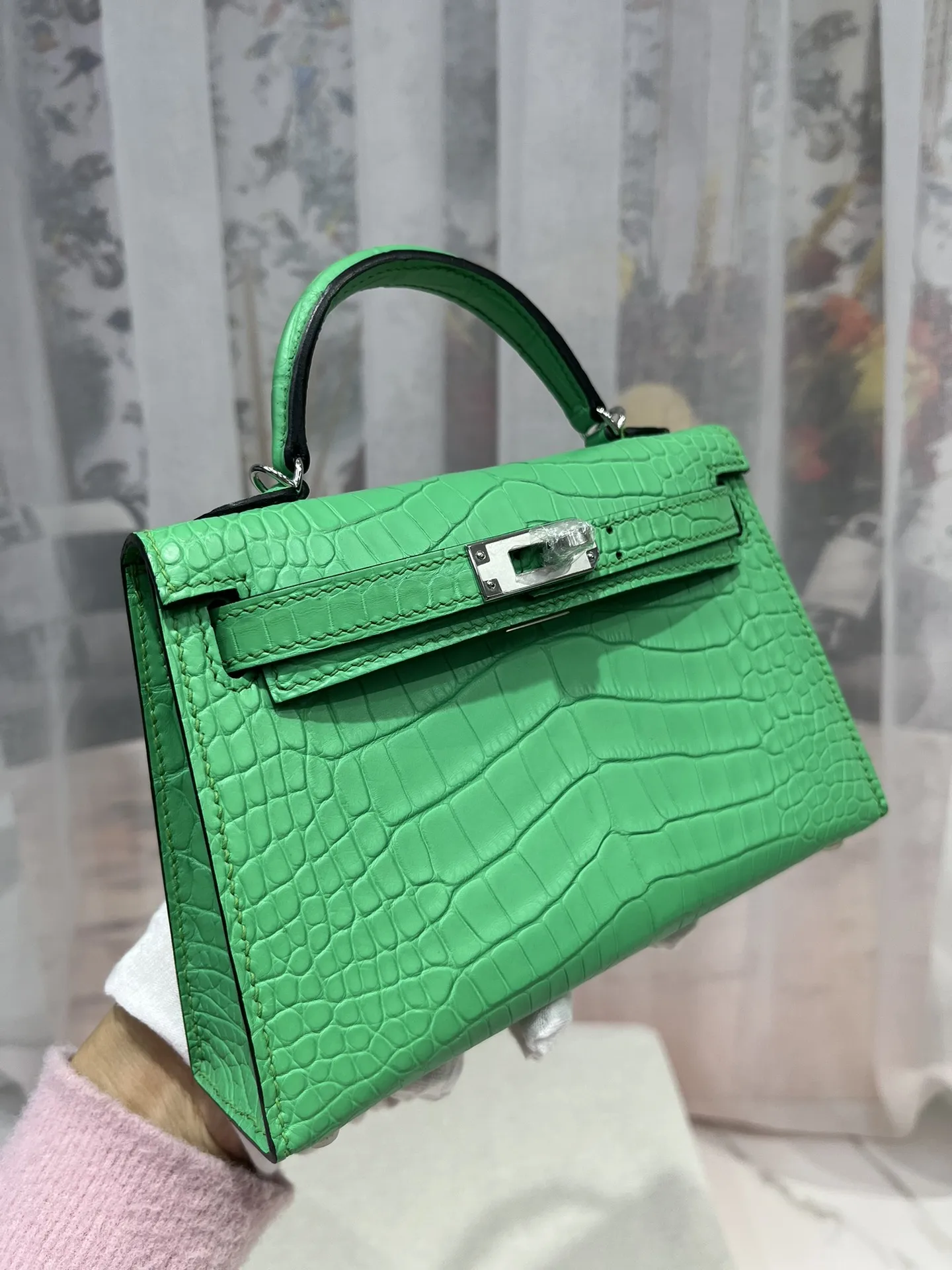 Kelly II 19cm Imported American Matte Alligator Leather, Hand-stitched Matches Authentic American Alligator.