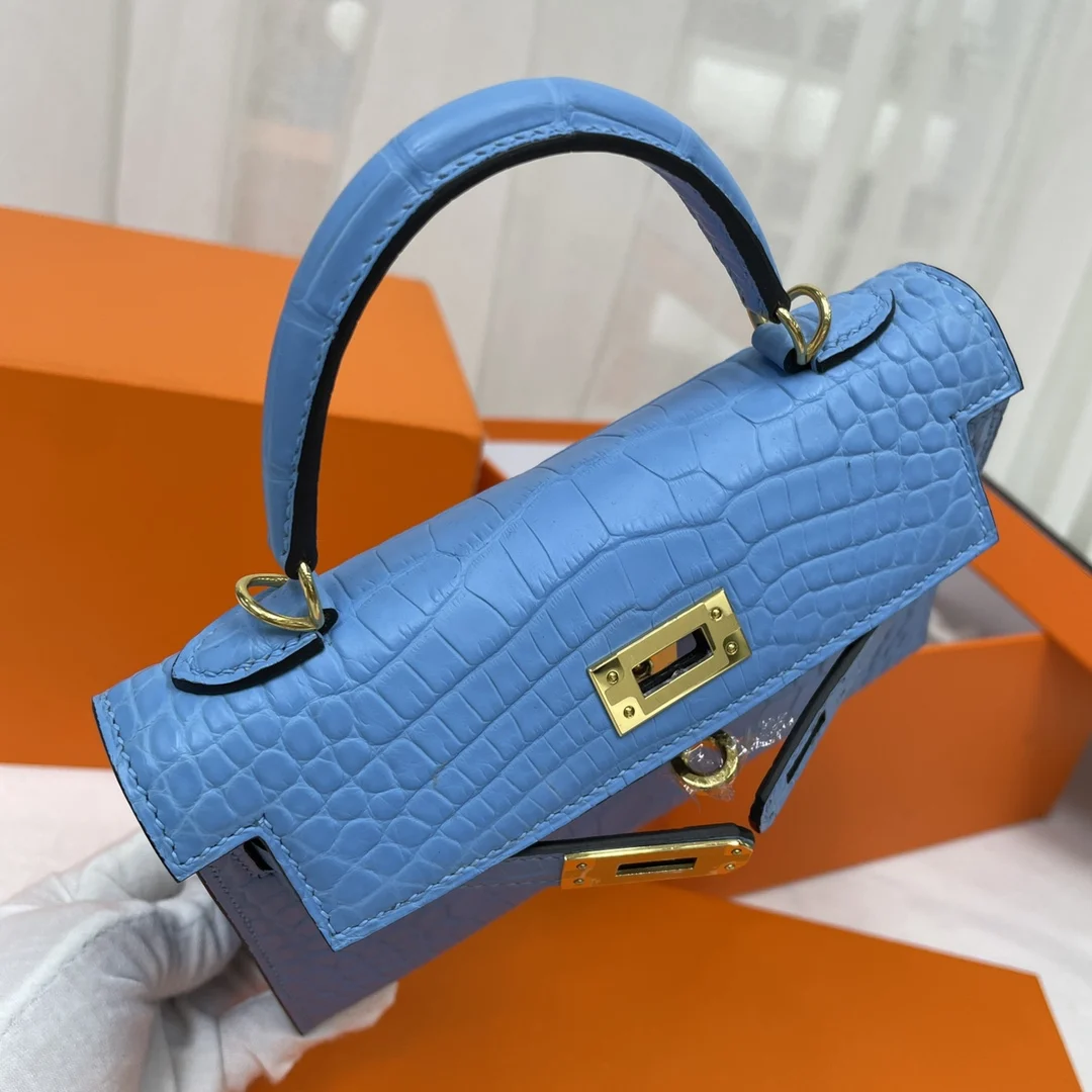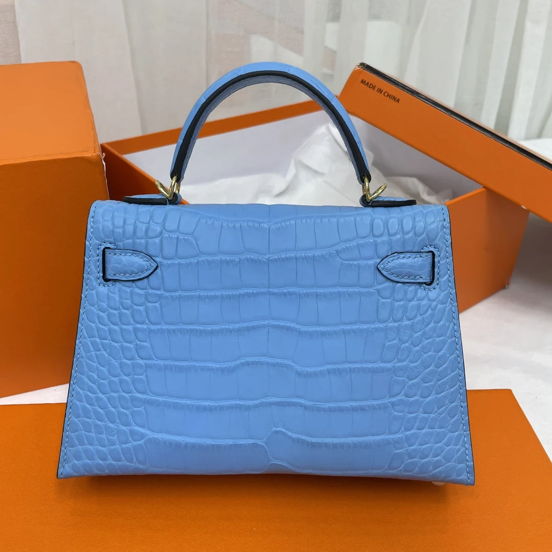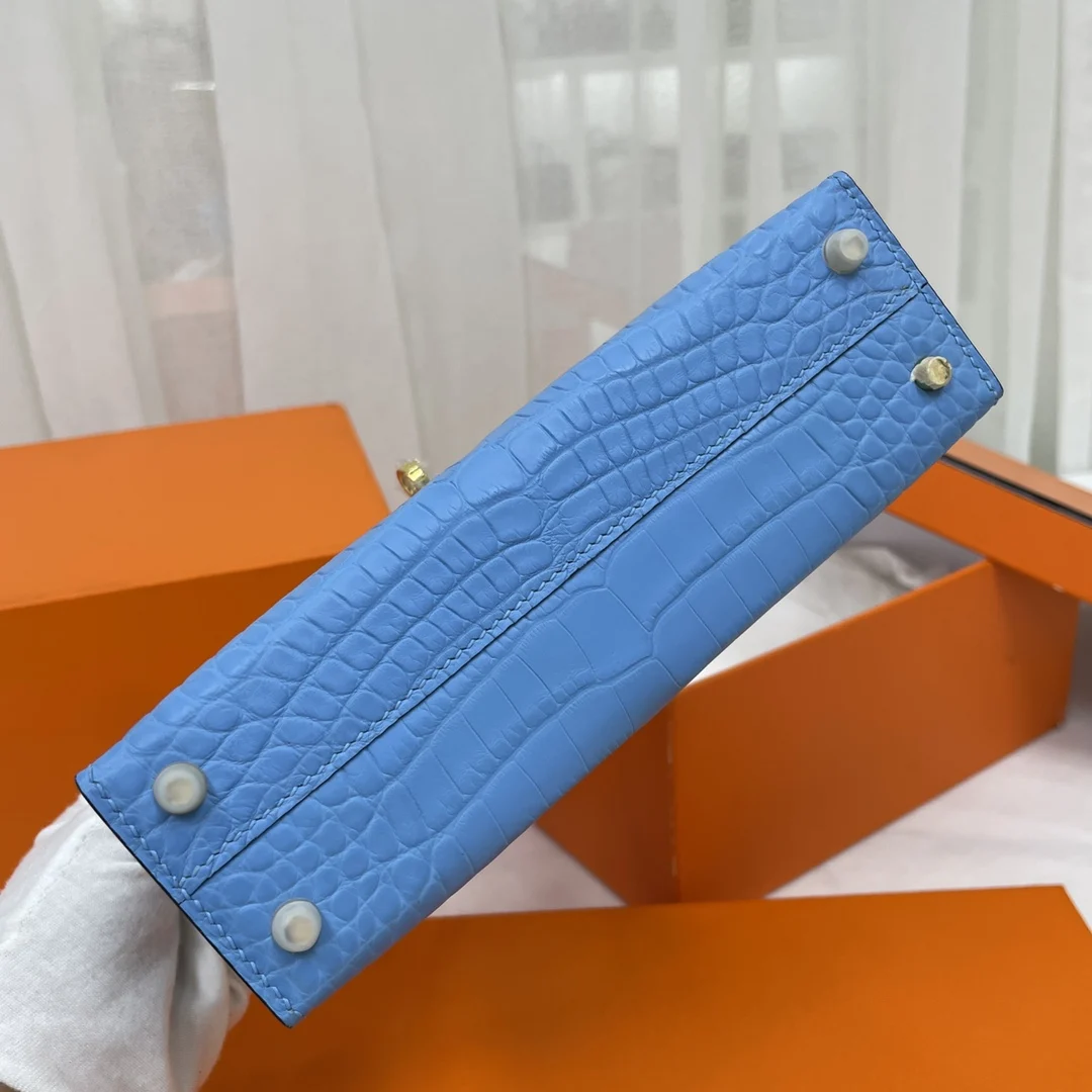 Kelly II 19cm Imported American Matte Alligator Leather, Hand-stitched Matches Authentic American Alligator.