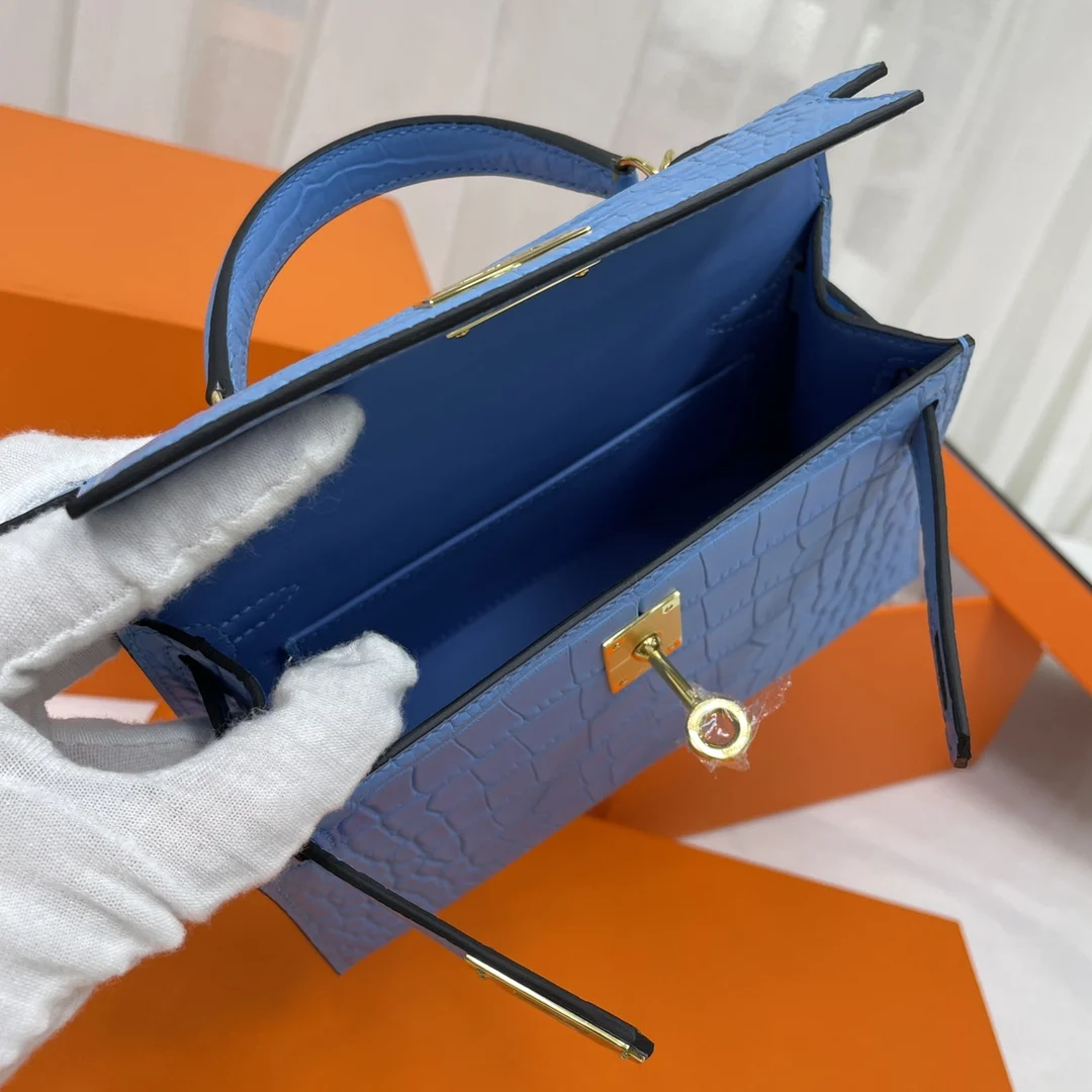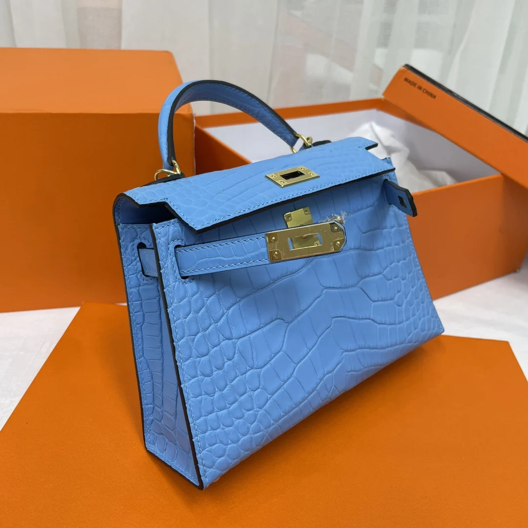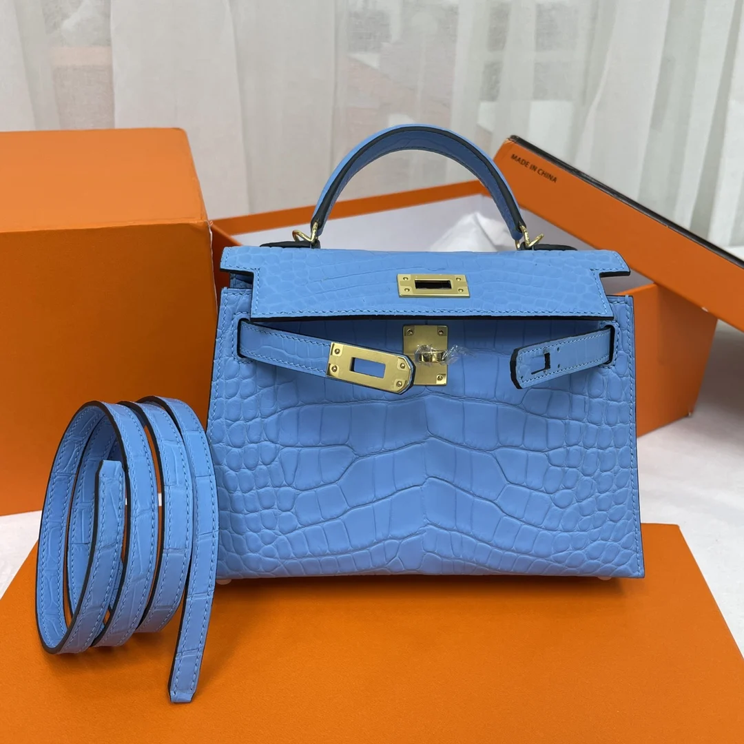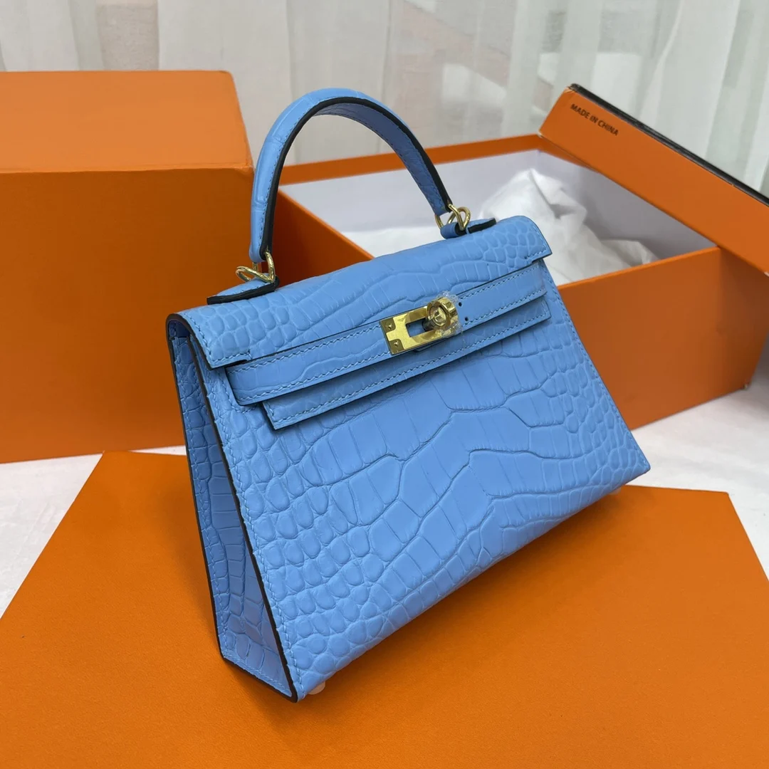 Kelly II 19cm Imported American Matte Alligator Leather, Hand-stitched Matches Authentic American Alligator.