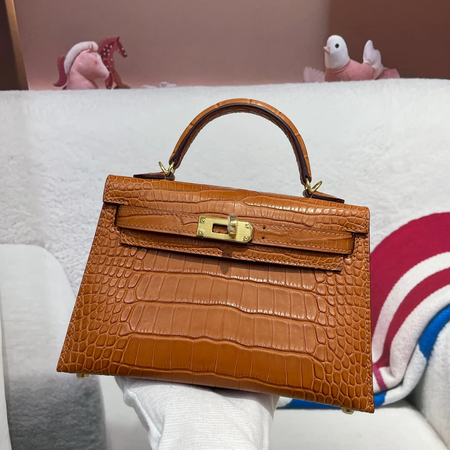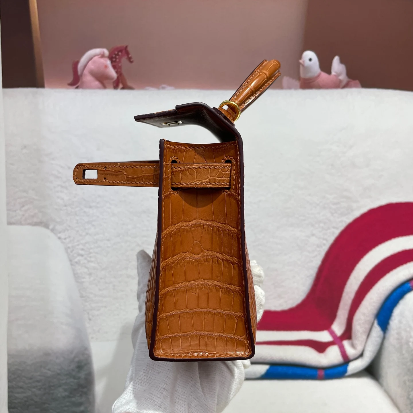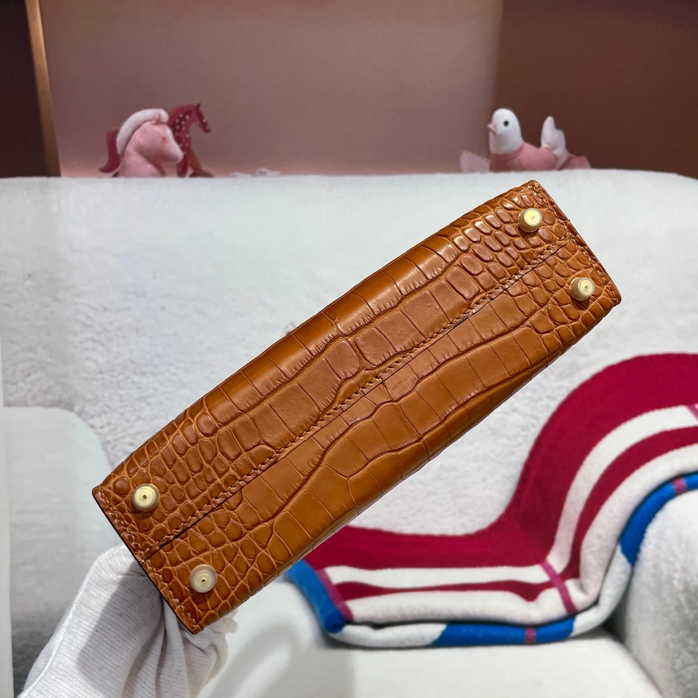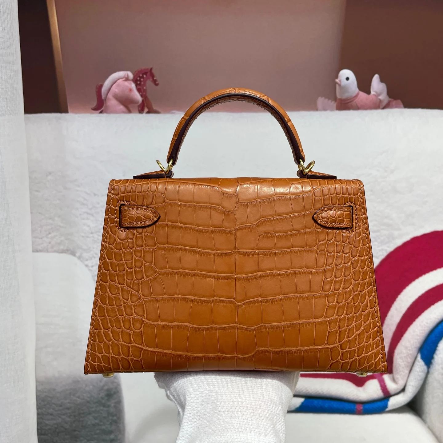 Kelly II 19cm Imported American Matte Alligator Leather, Hand-Hammered Hardware, Hand-Sewn Wax Thread. Actual Photos [Color] Exact Replica of Boutique American Alligator.