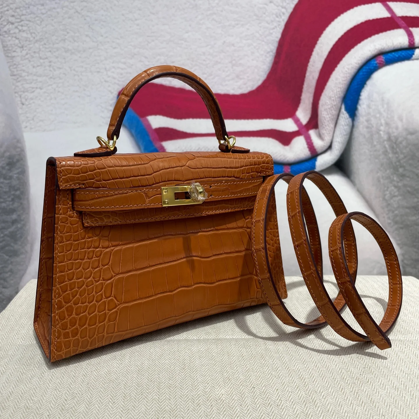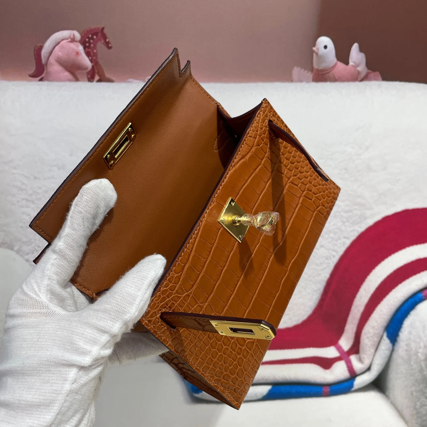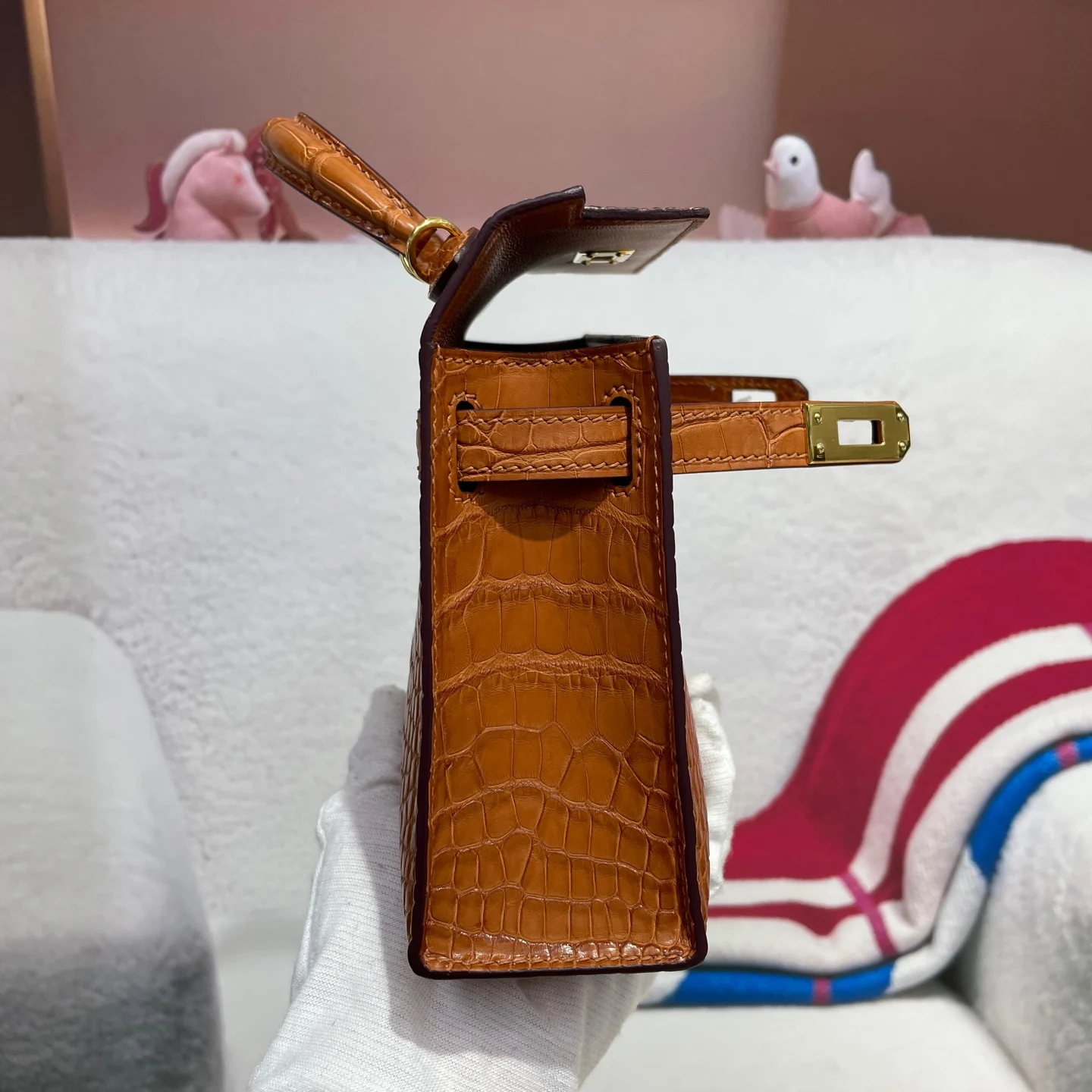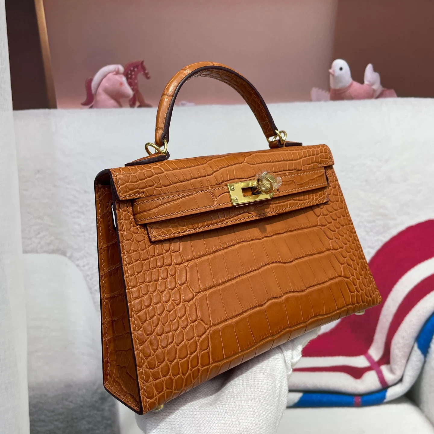Kelly II 19cm Imported American Matte Alligator Leather, Hand-Hammered Hardware, Hand-Sewn Wax Thread. Actual Photos [Color] Exact Replica of Boutique American Alligator.
