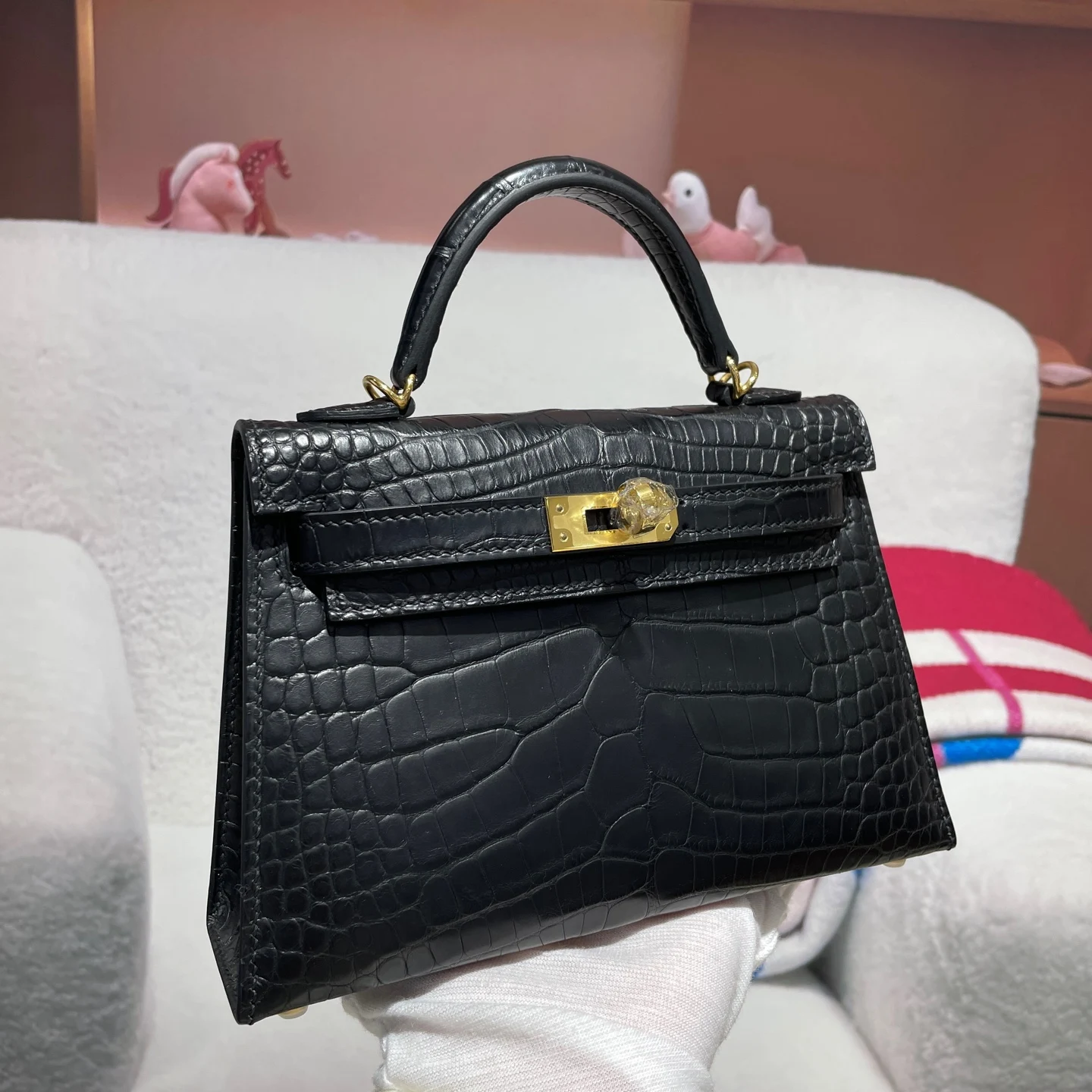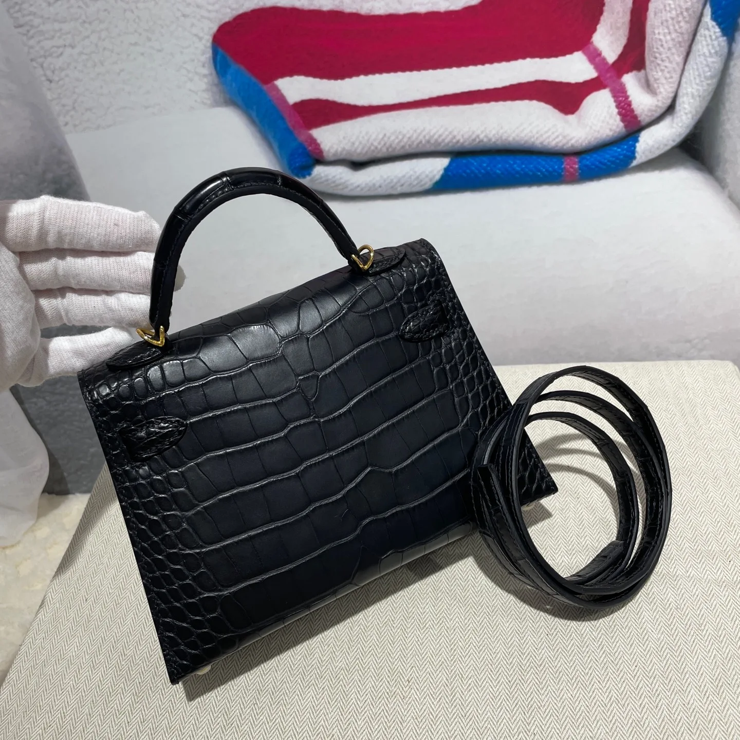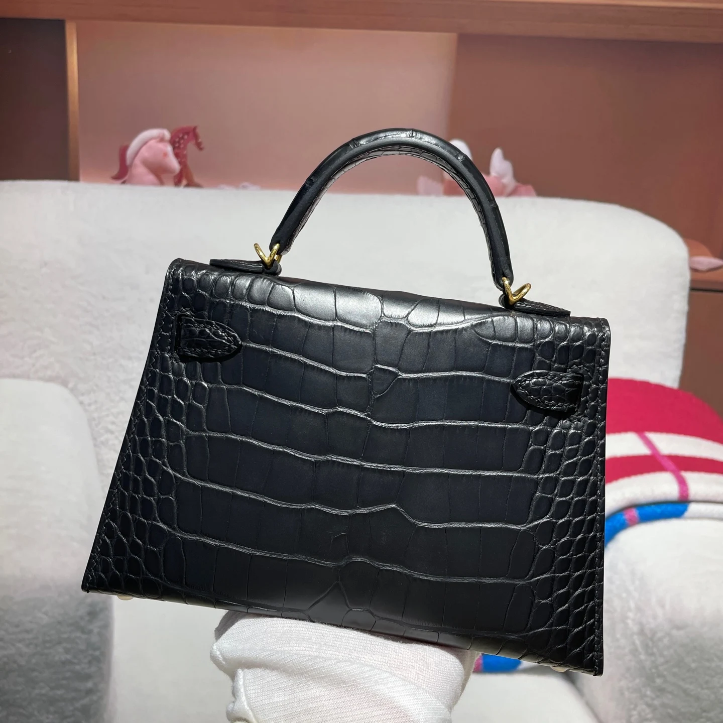 Kelly II 19cm Imported American Matte Alligator Leather, Hand-Hammered Hardware, Hand-Sewn Wax Thread. Actual Photos [Color] Exact Replica of Boutique American Alligator.
