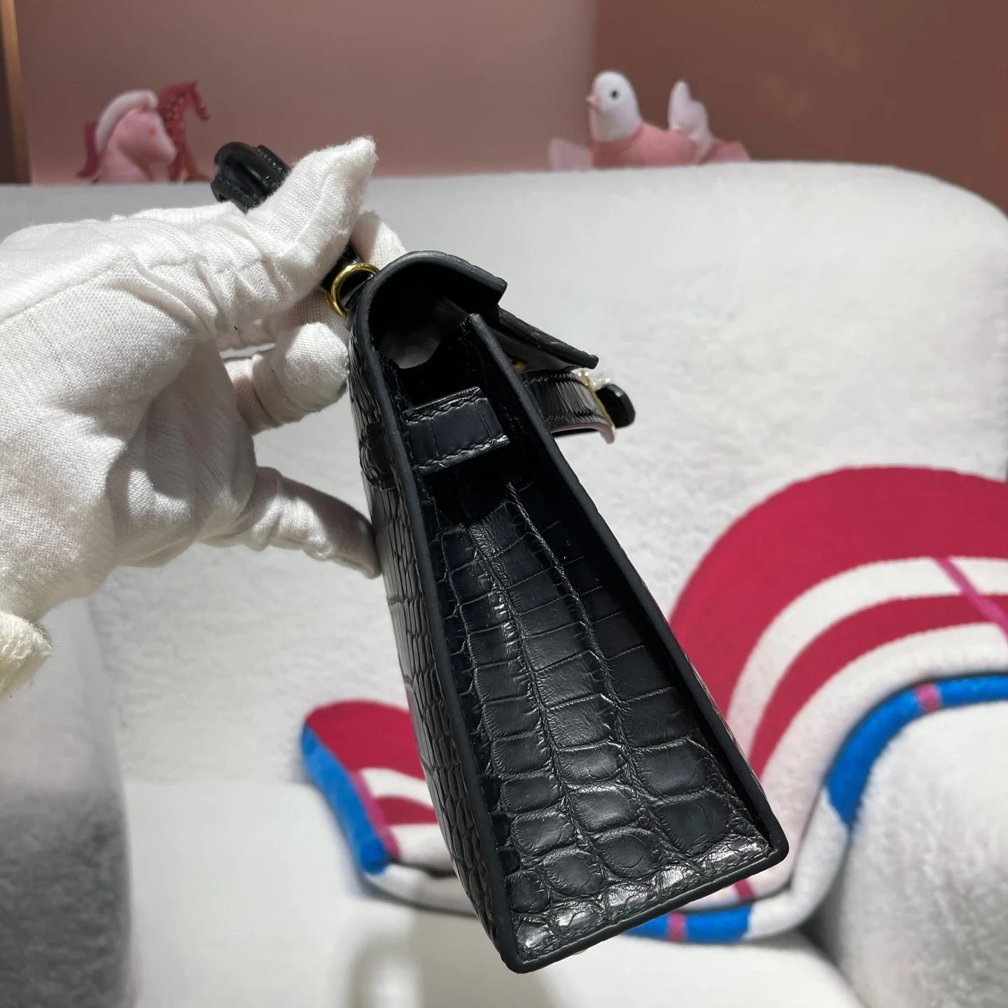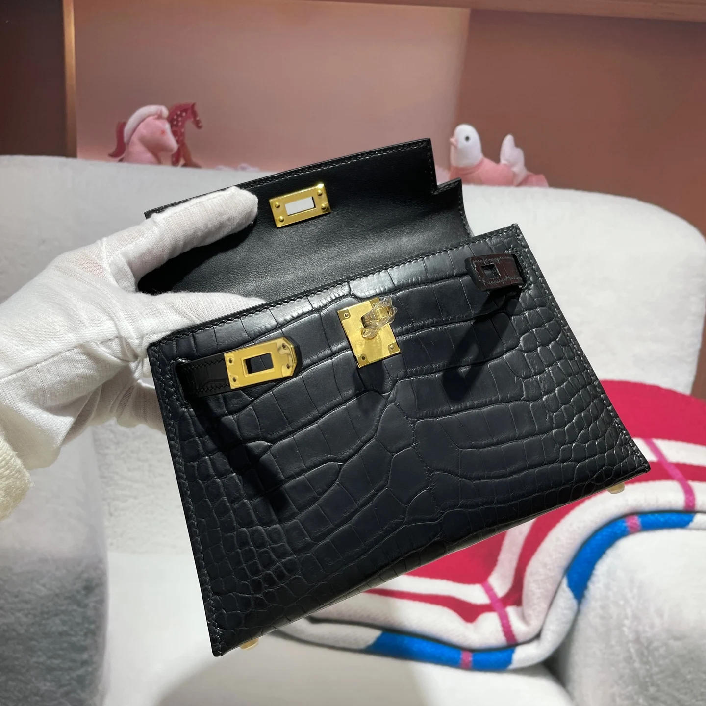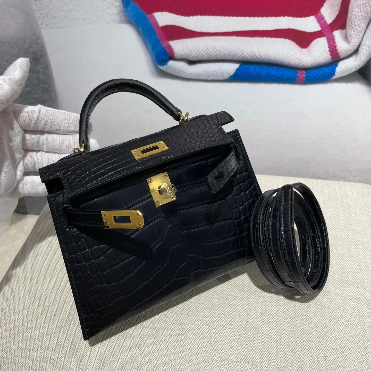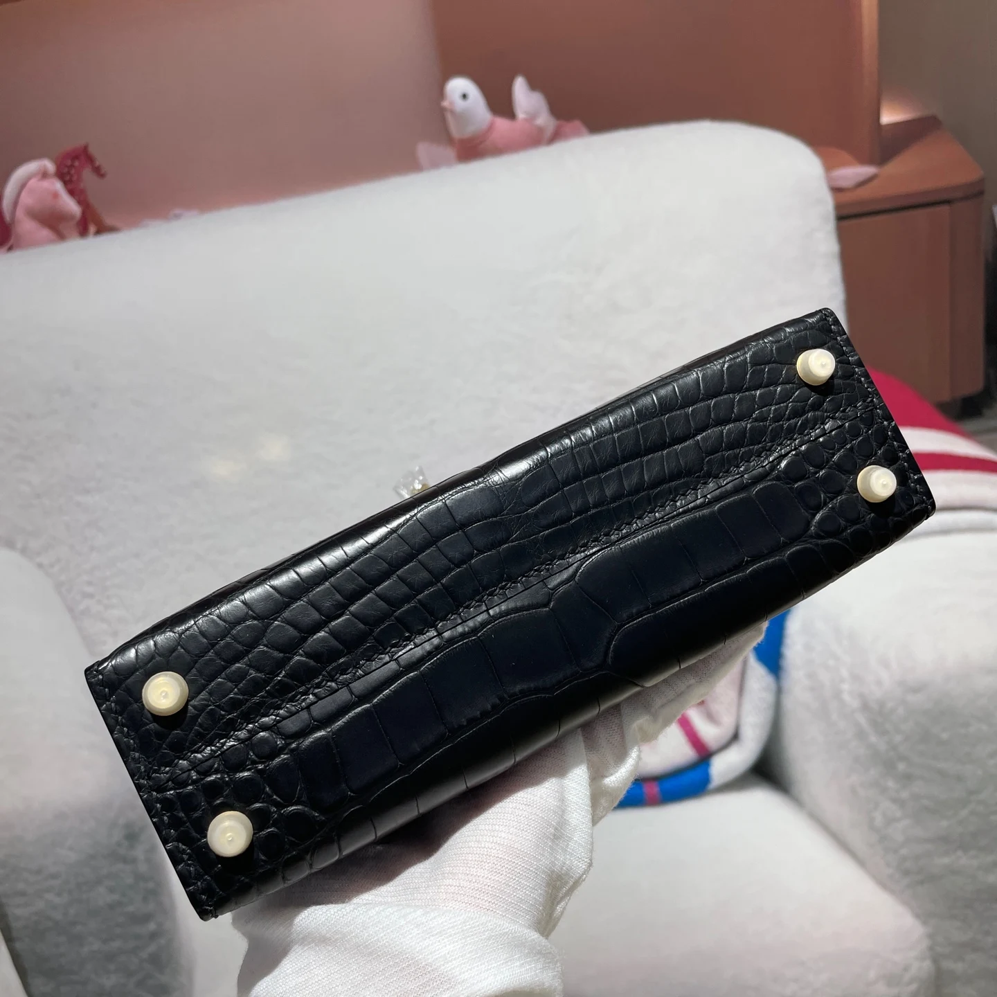 Kelly II 19cm Imported American Matte Alligator Leather, Hand-Hammered Hardware, Hand-Sewn Wax Thread. Actual Photos [Color] Exact Replica of Boutique American Alligator.