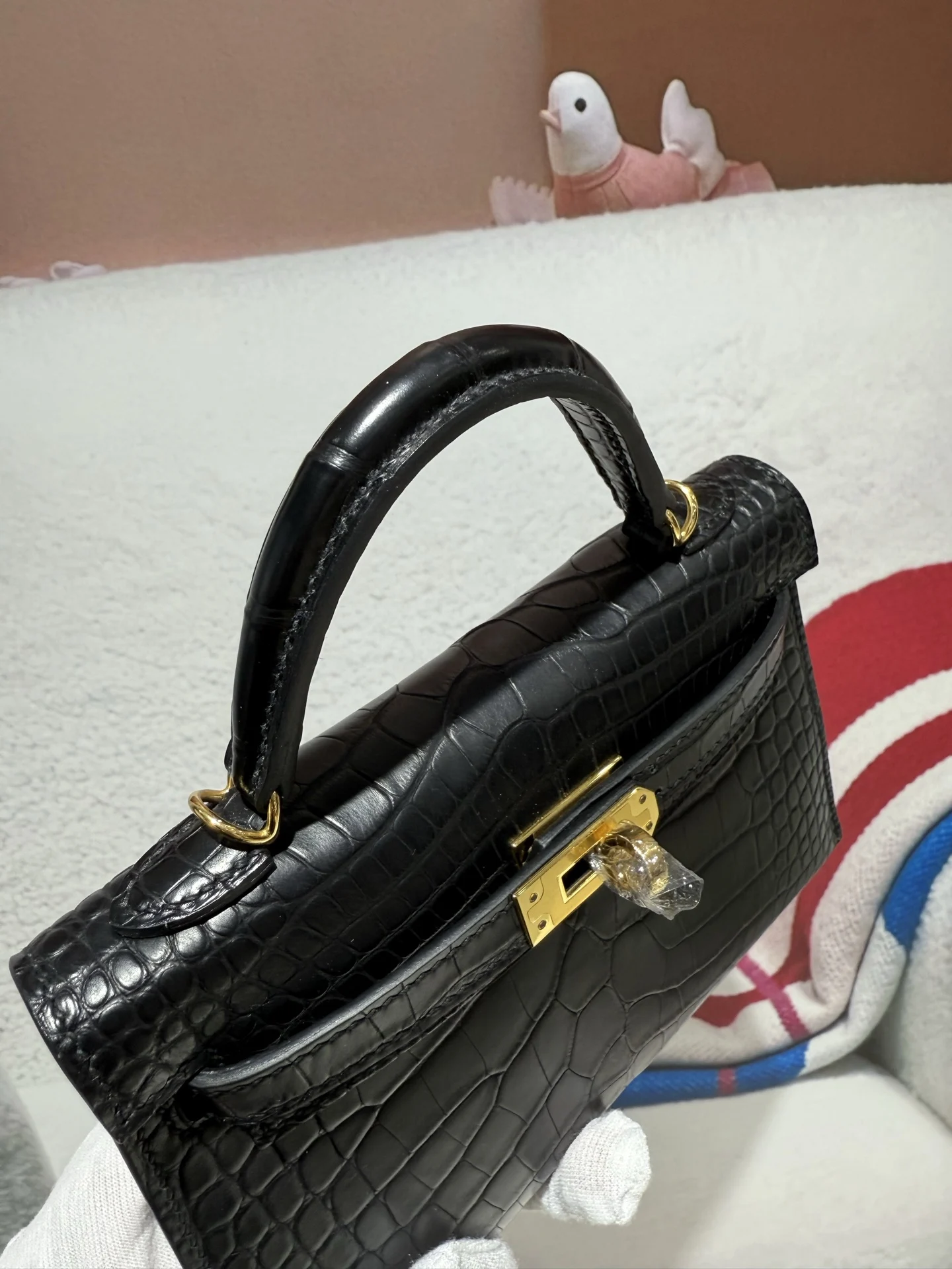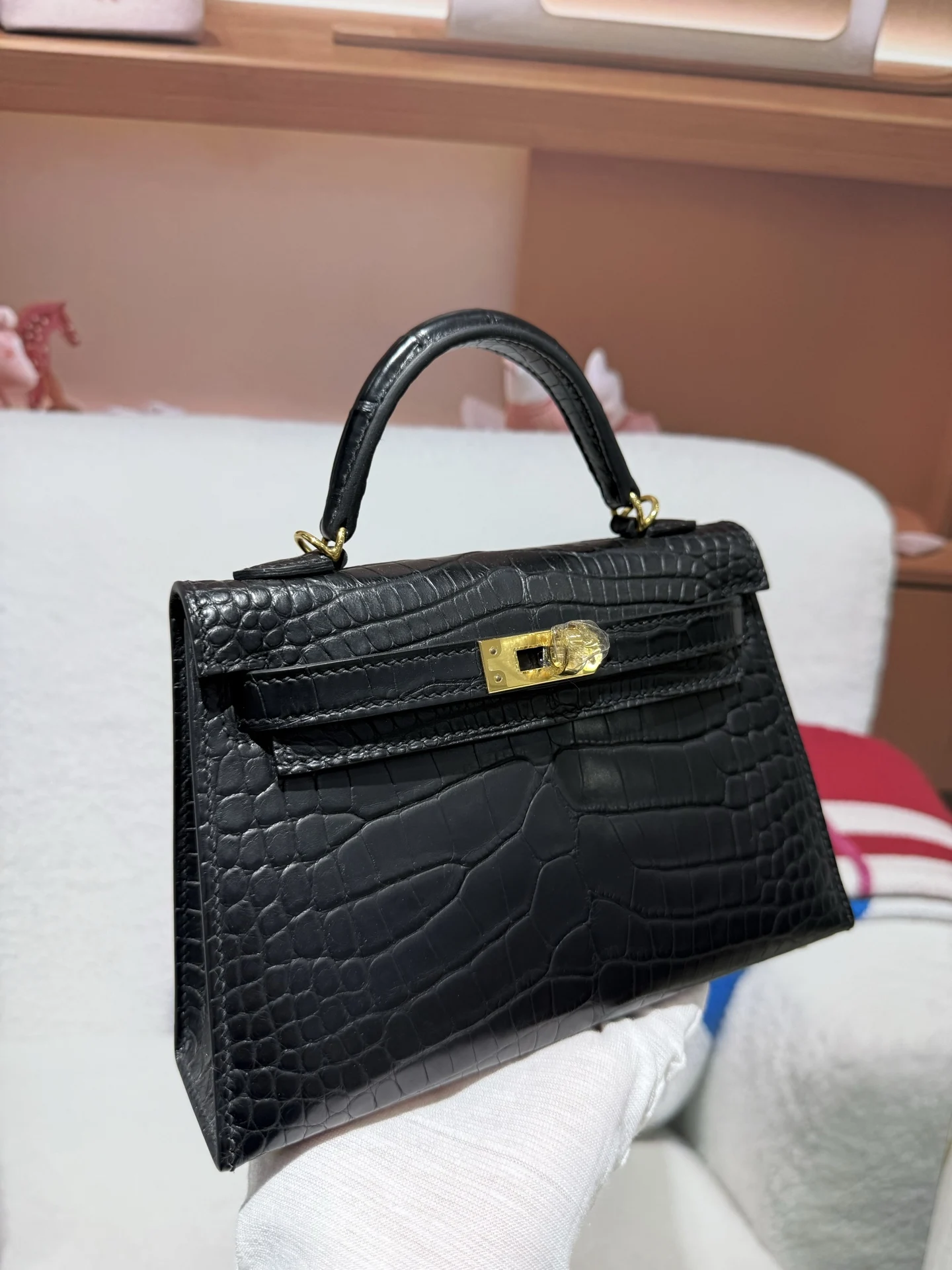 Kelly II 19cm Imported American Matte Alligator Leather Black Gold Hardware Hand-stitched Waxed Thread Actual Photography Accurate Reproduction of Boutique American Alligator