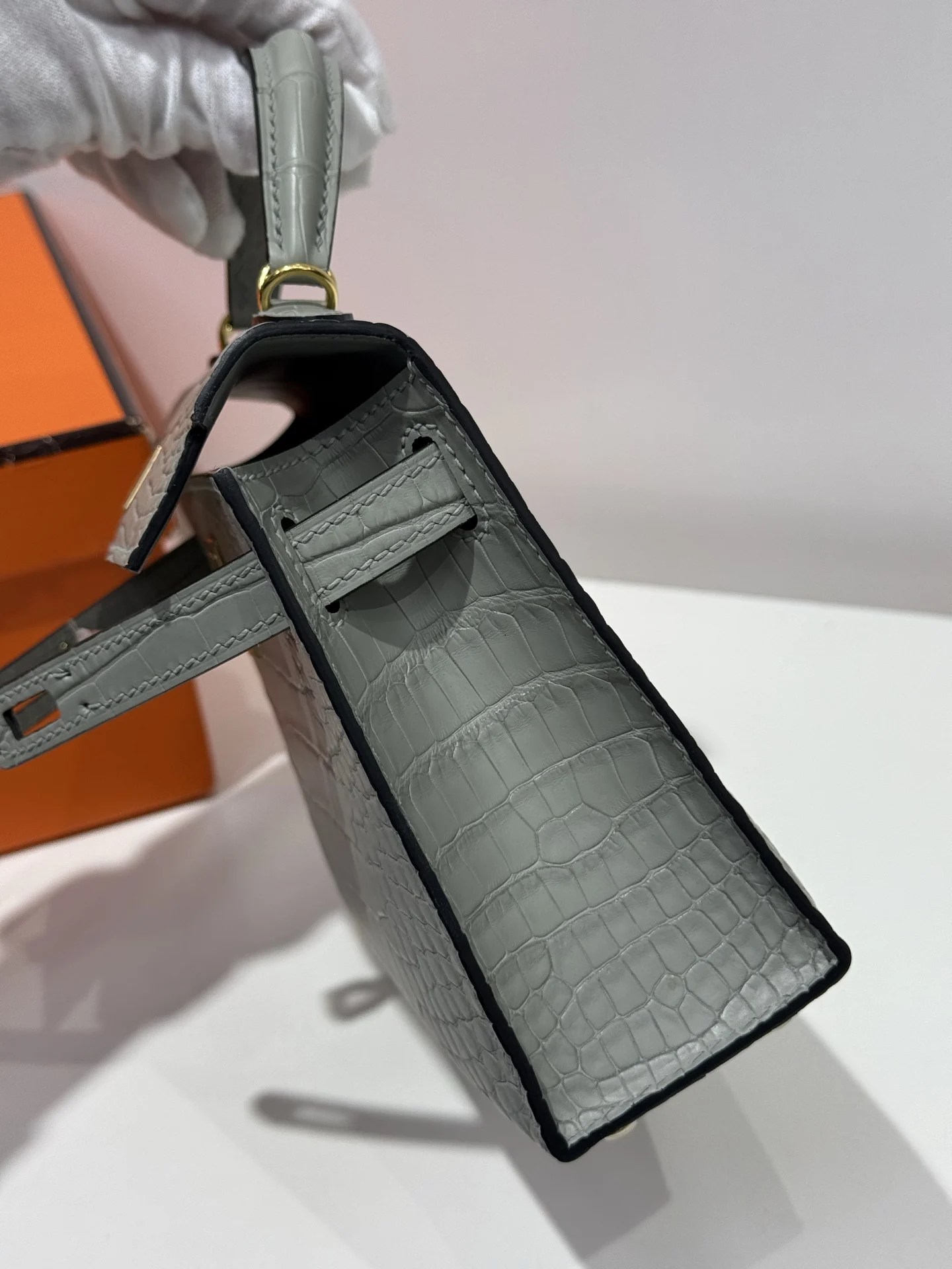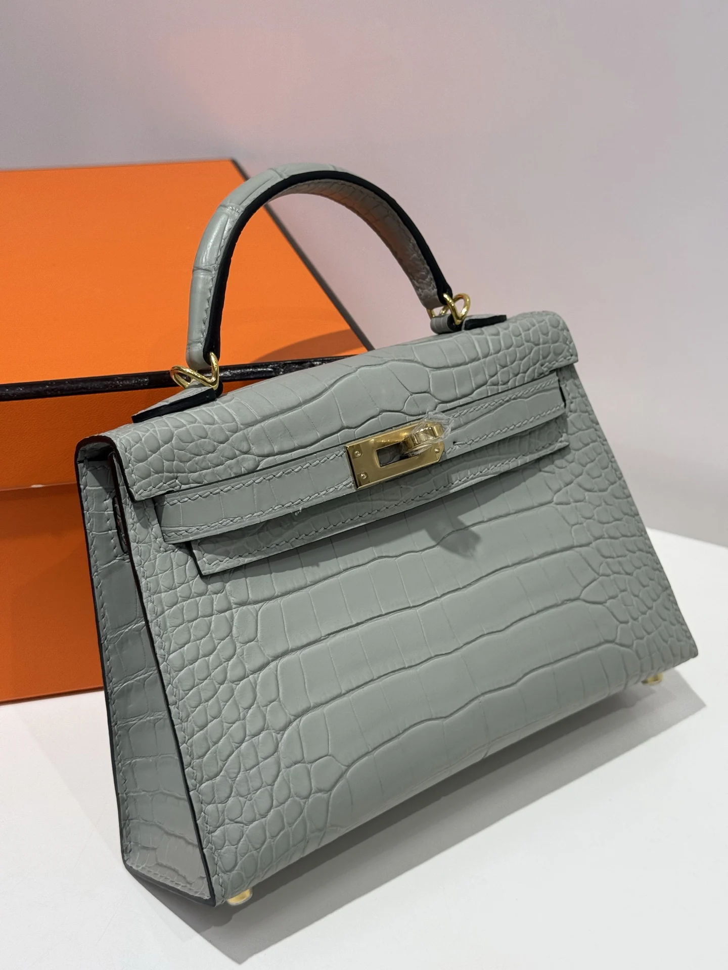 Kelly II 19cm, imported American alligator with matte finish, 80 pearl grey, hand-stitched with waxed thread, full set of hand-hammered hardware, actual product photos, accurate re..