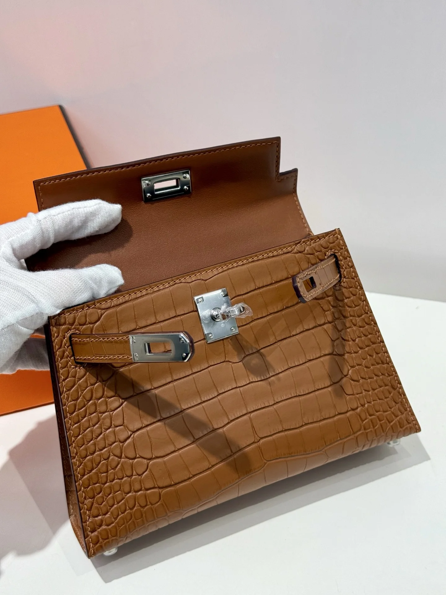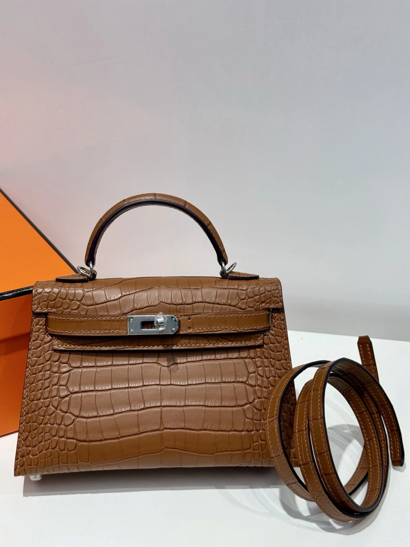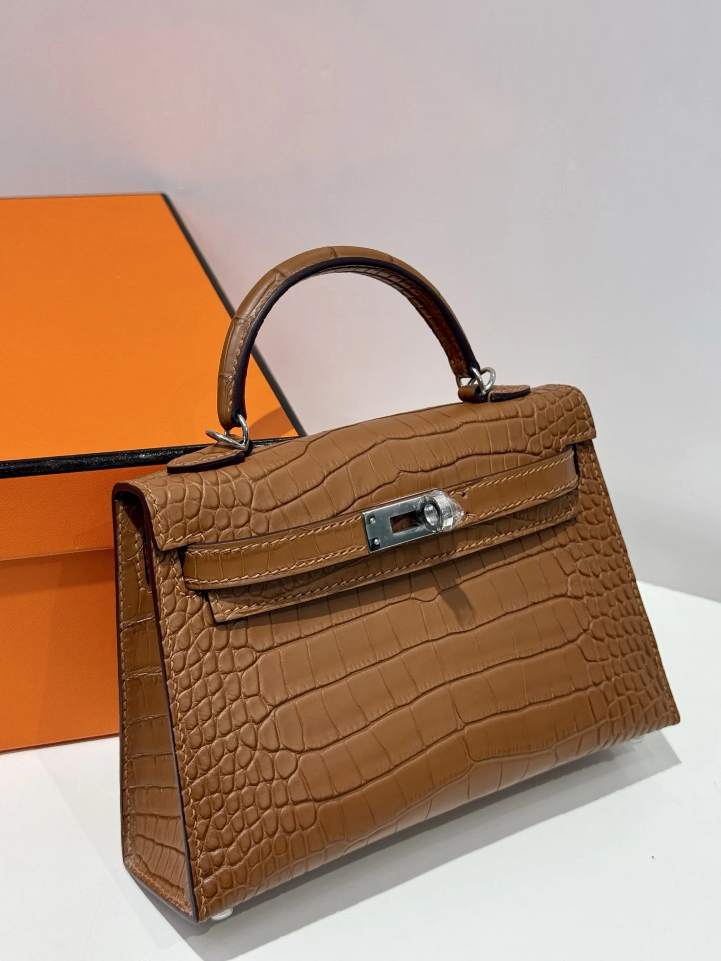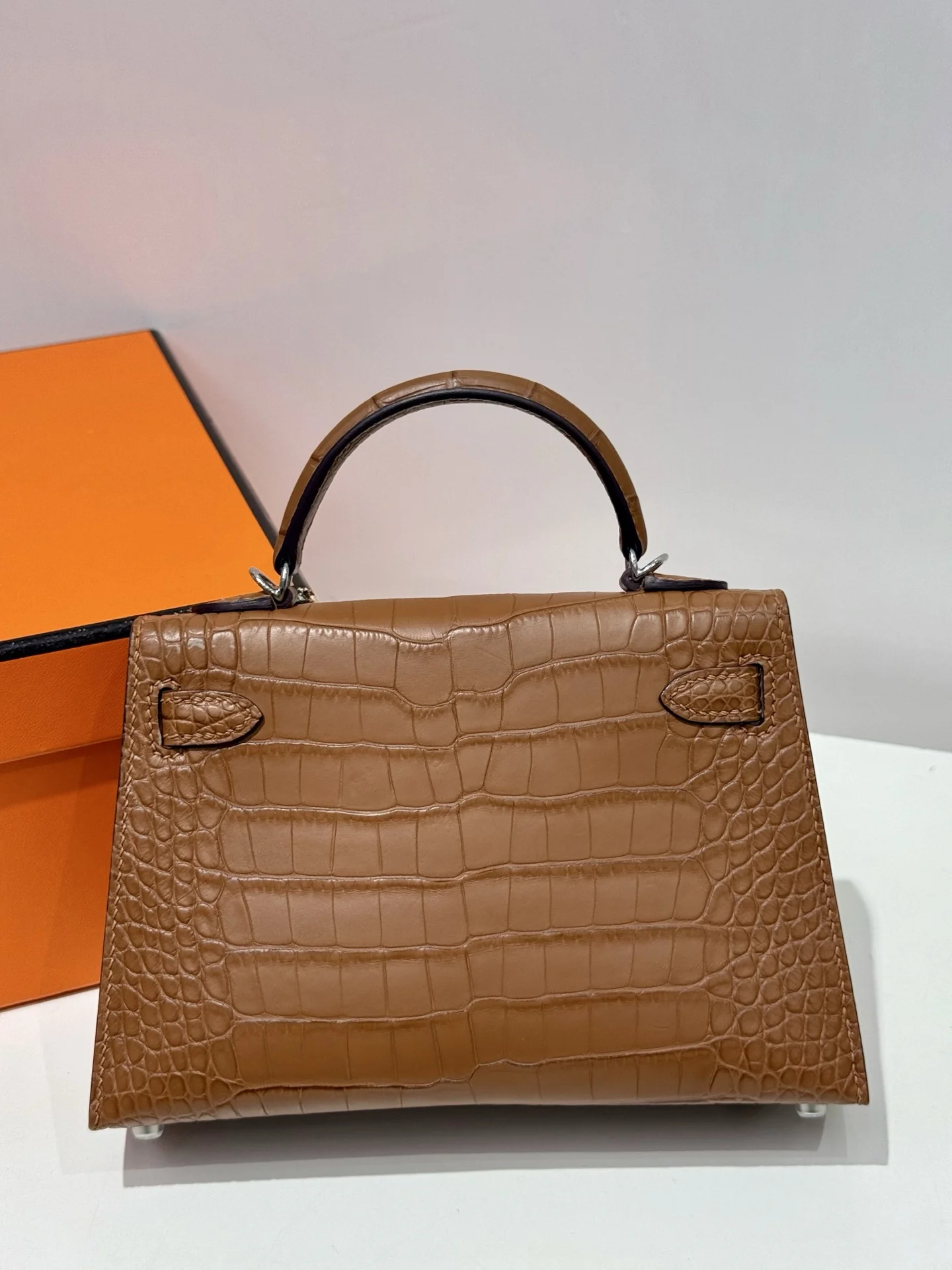 Kelly II 19cm, imported American matte alligator leather, gold brown, hand-stitched with waxed thread, full set of hand-hammered hardware, actual product photos, perfectly matches ..