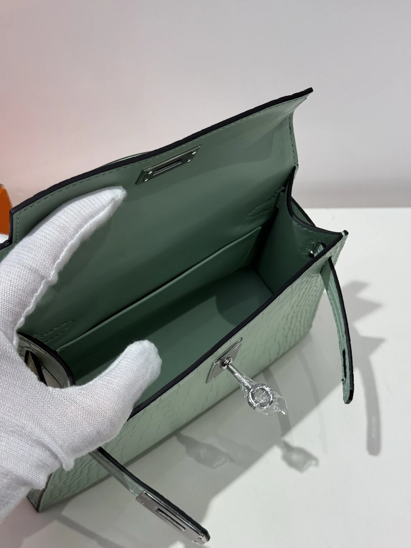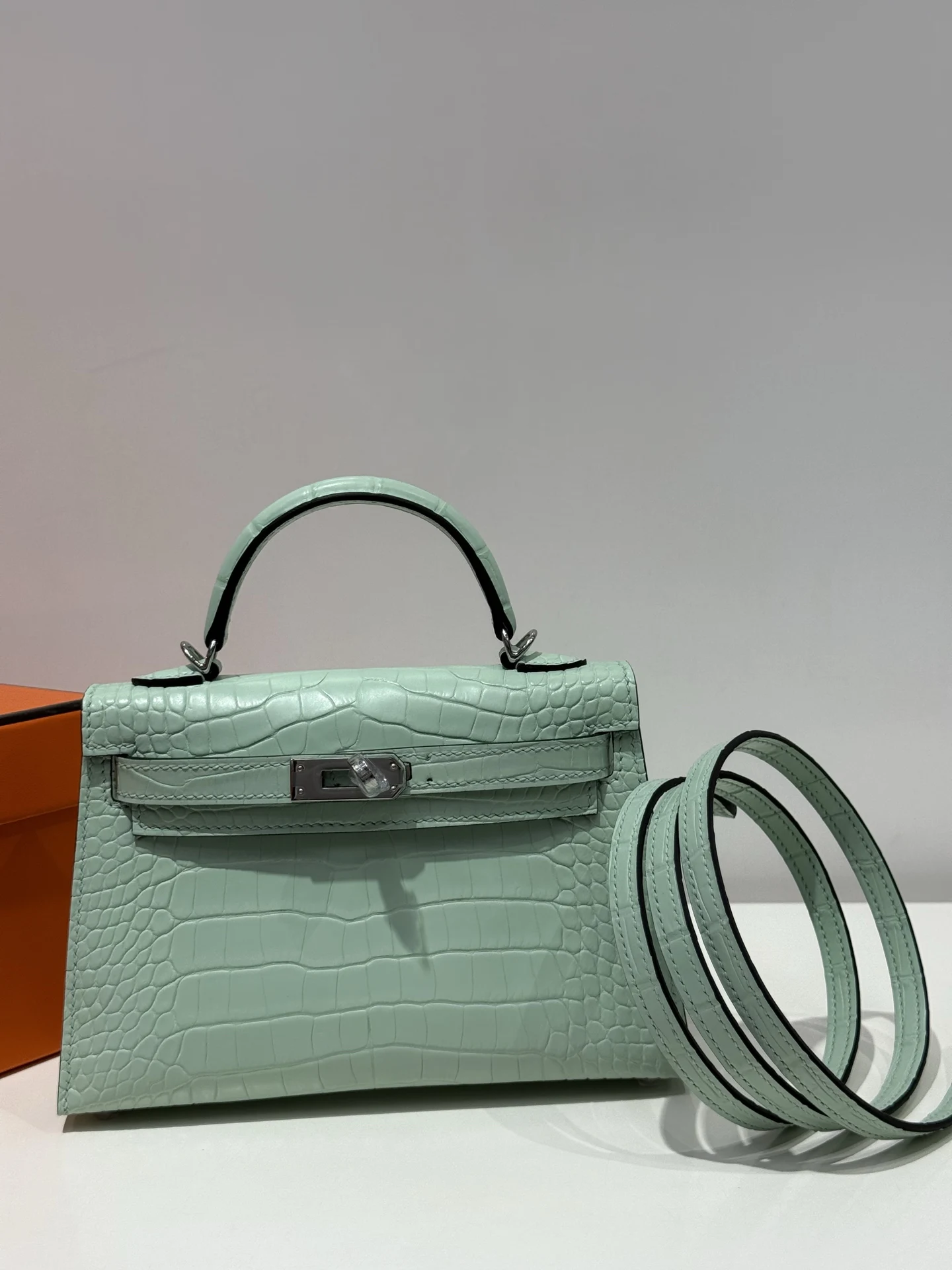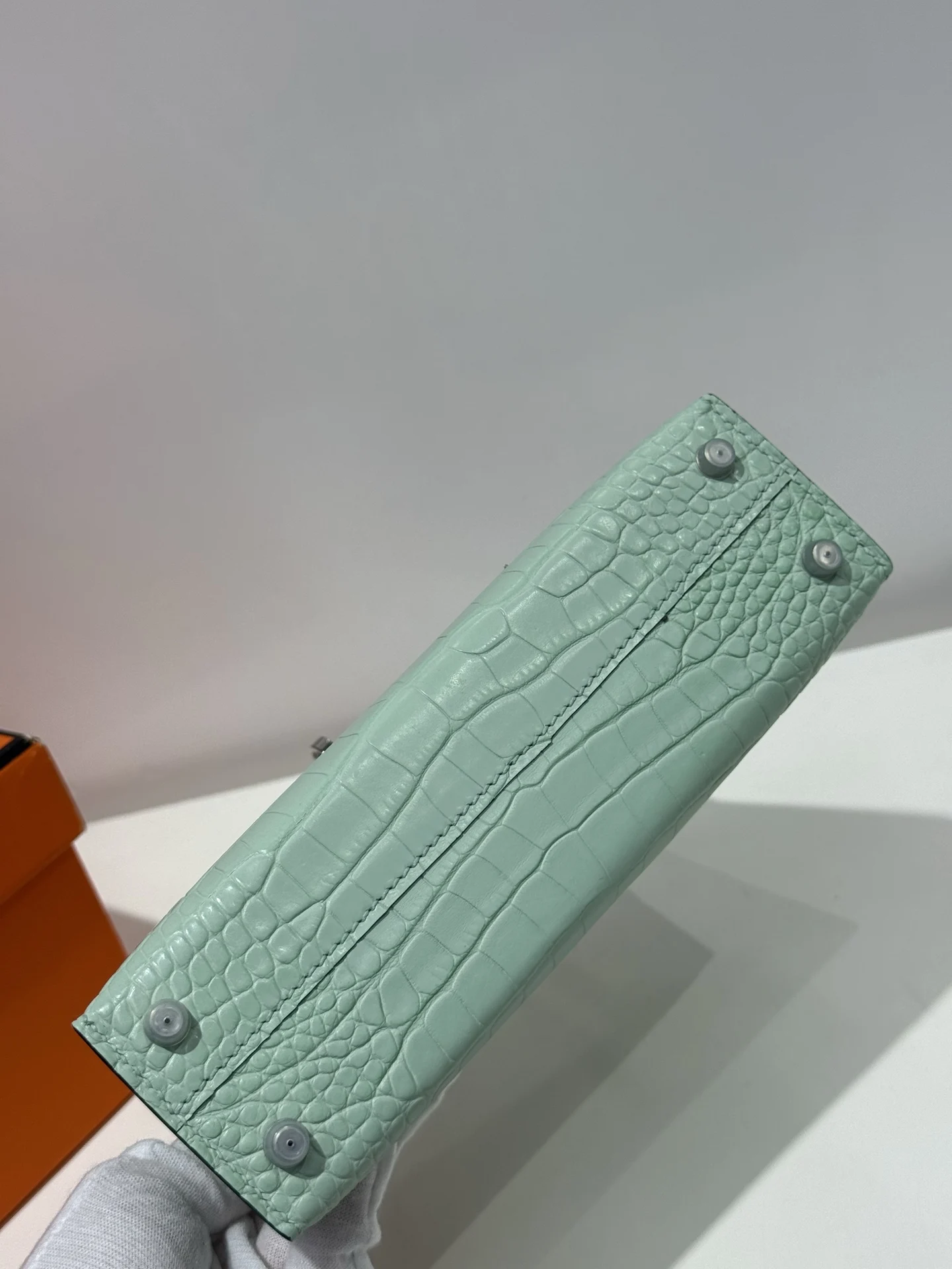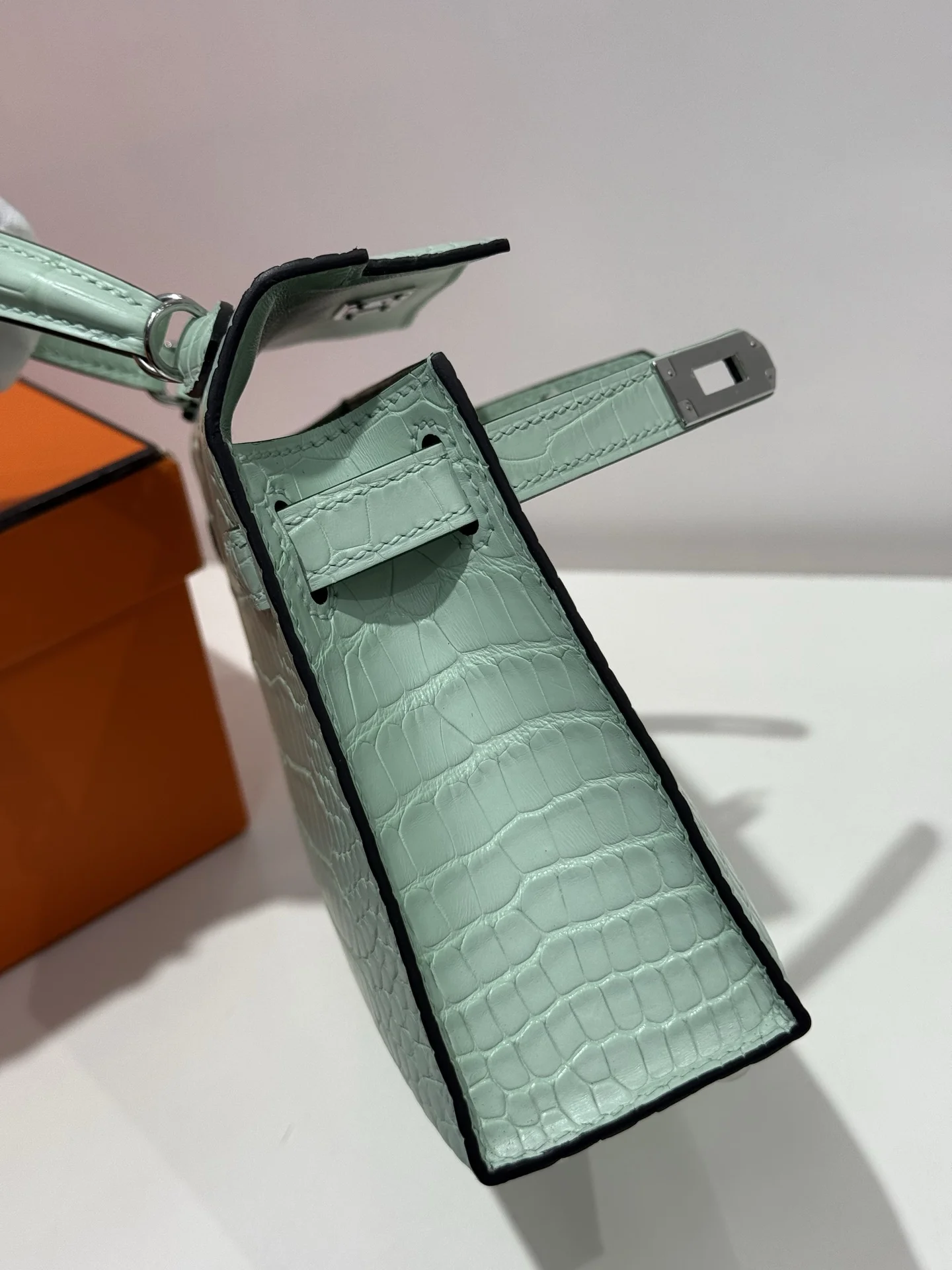 Kelly II 19cm, Imported American Matte Alligator Leather, 6U Mint Green with Silver Hardware, Hand-stitched with Wax Thread, Actual Photos Accurate Reproduction of Boutique American Alligator