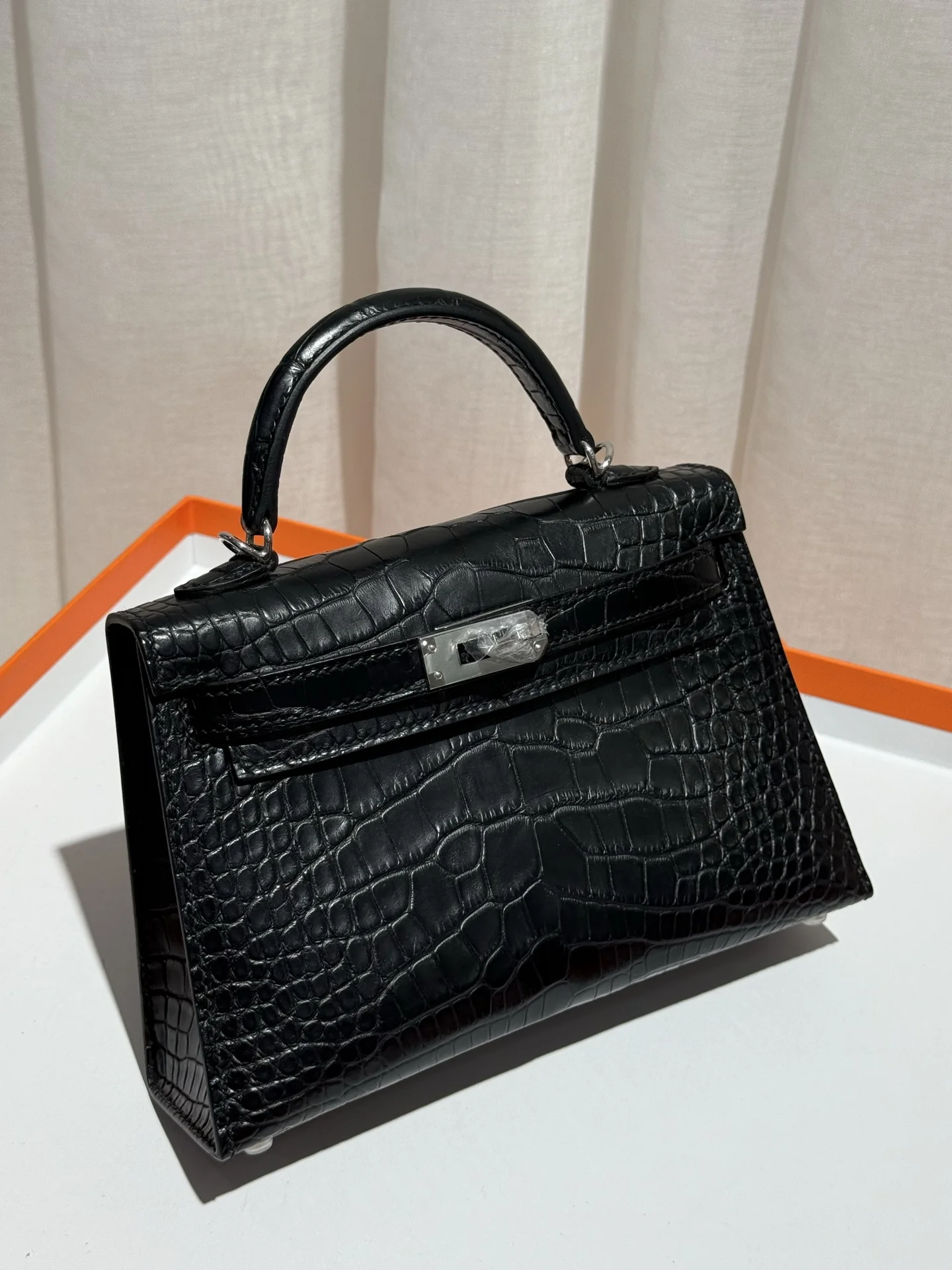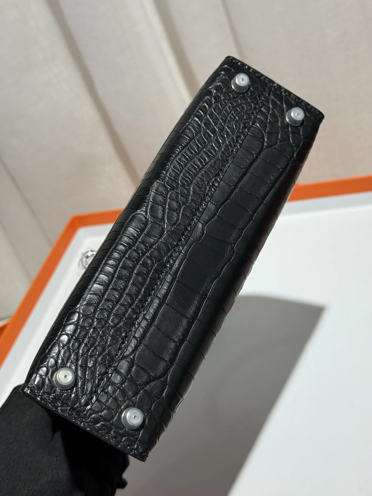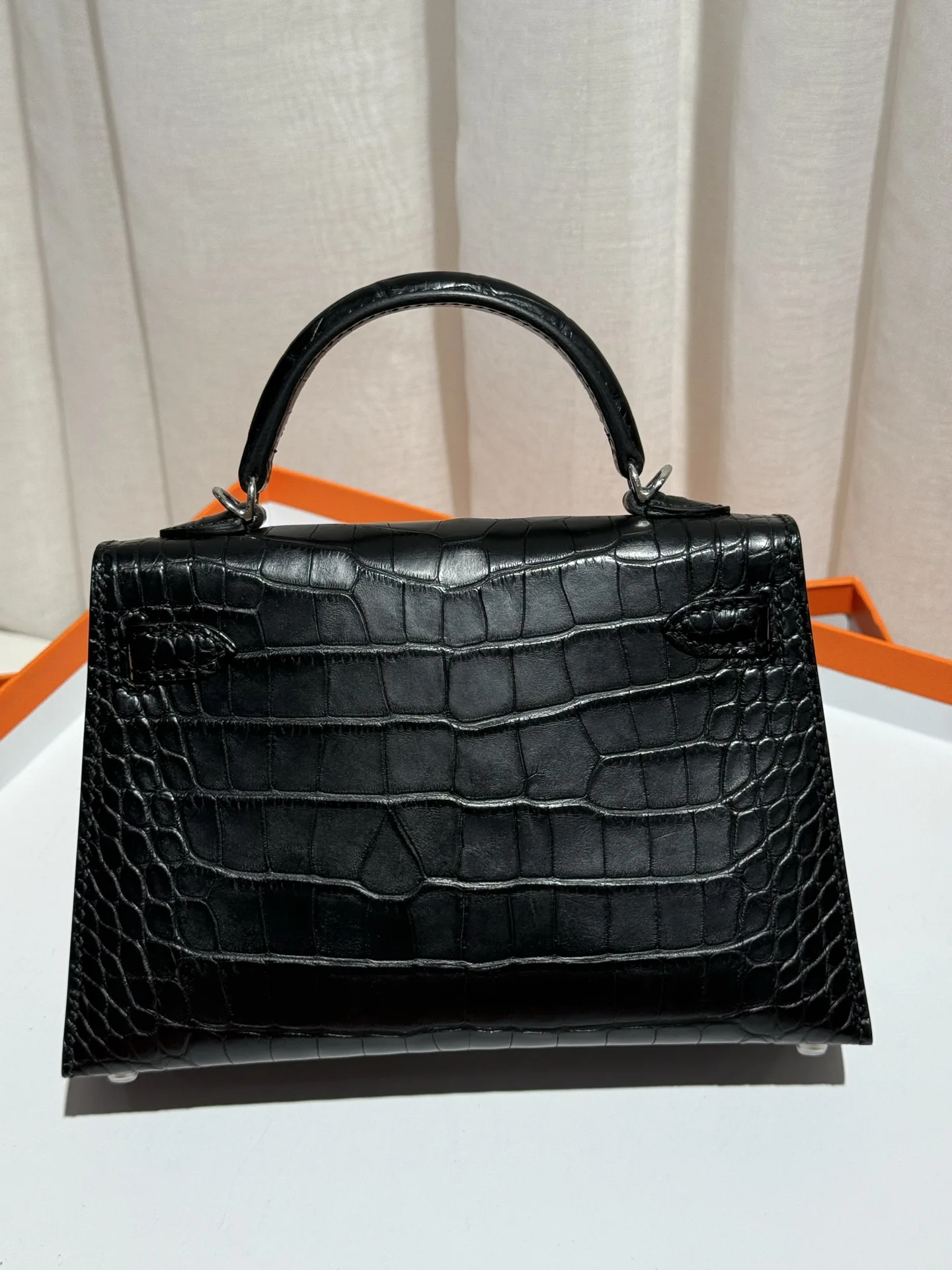 Kelly II 19cm Imported American Matte Alligator Leather, Black, Full Set of Hand-Hammered Hardware, Hand-Sewn Waxed Linen Thread, Actual Photo [Color] Matches Authentic American Alligator.