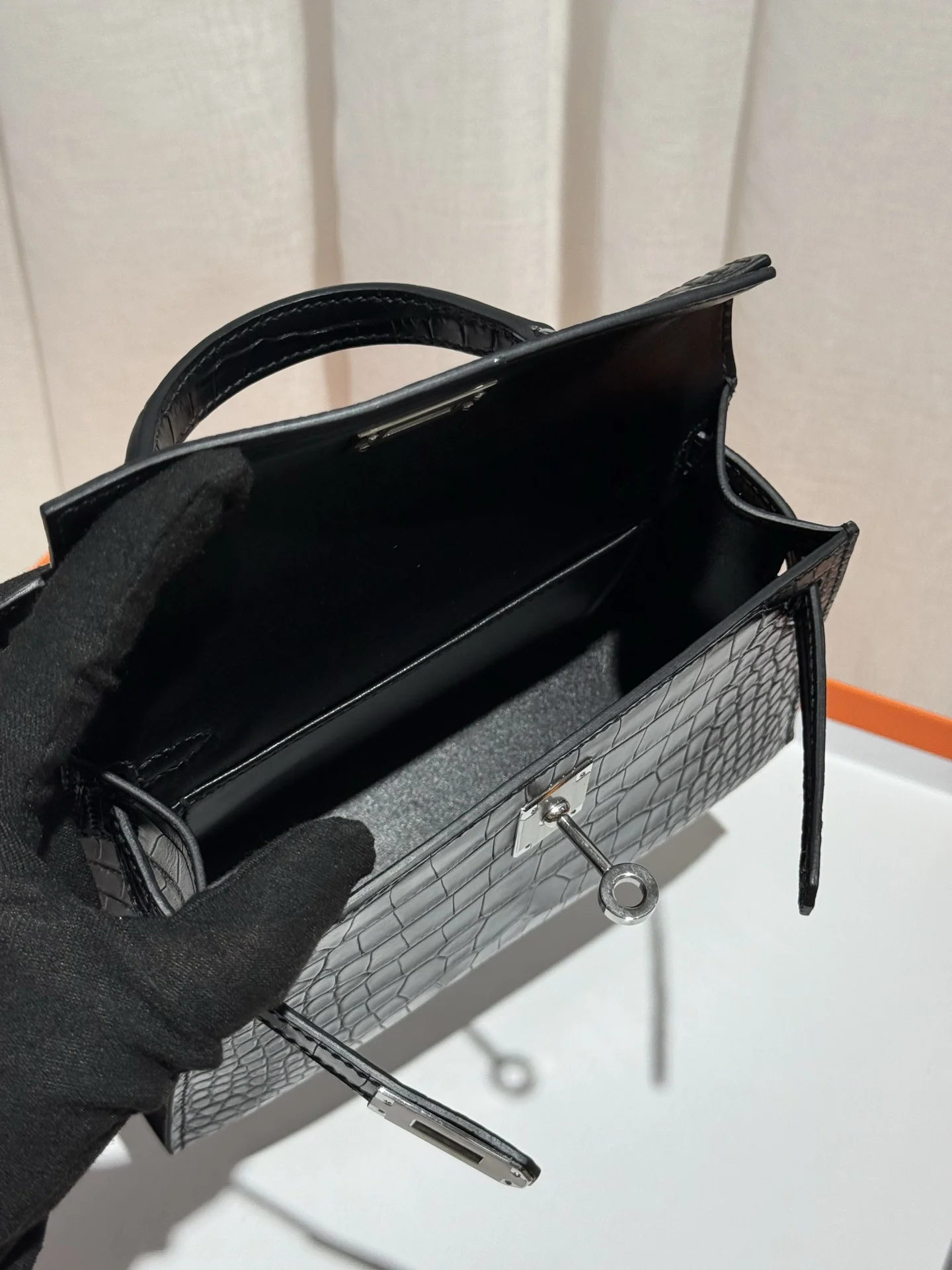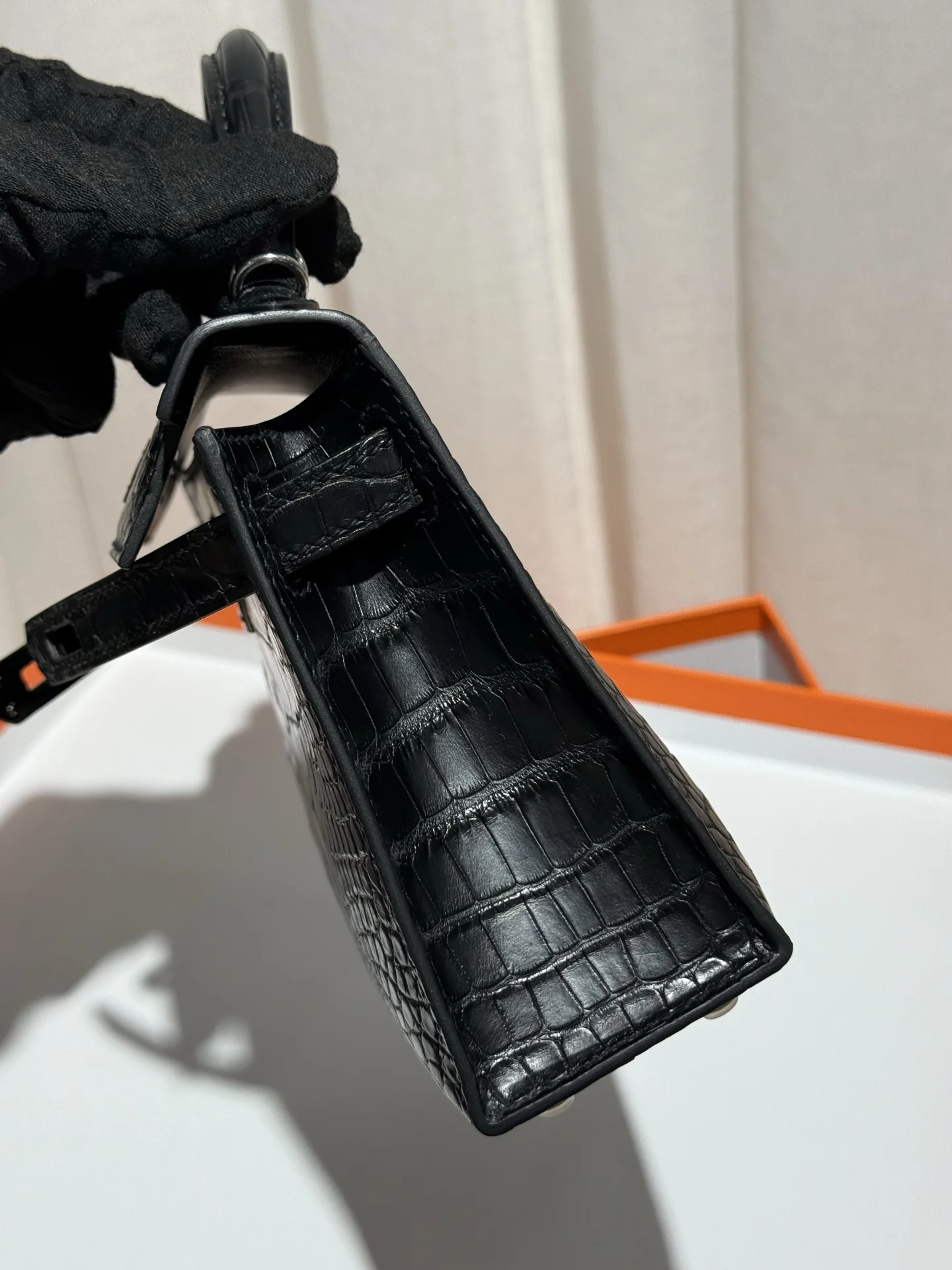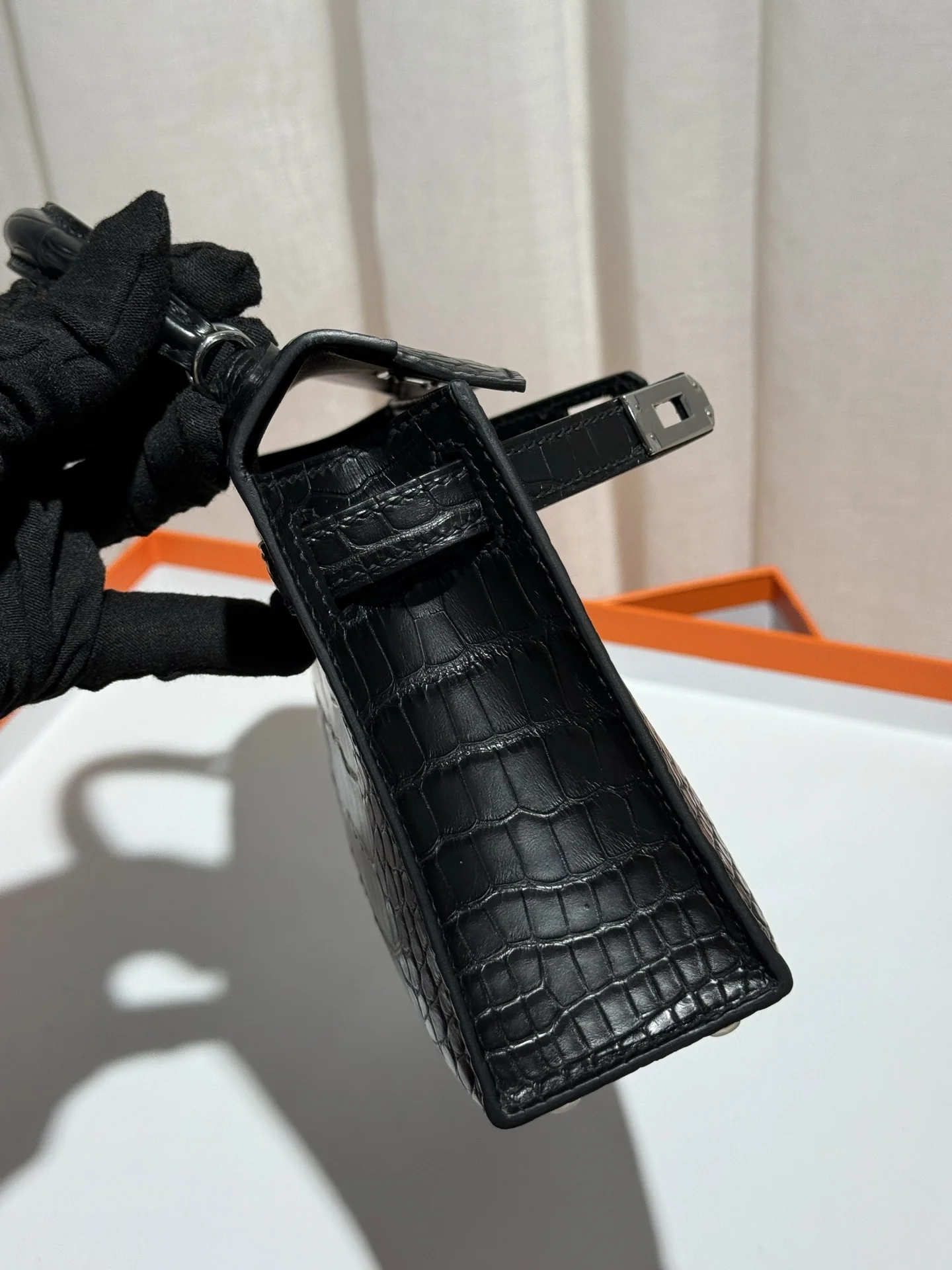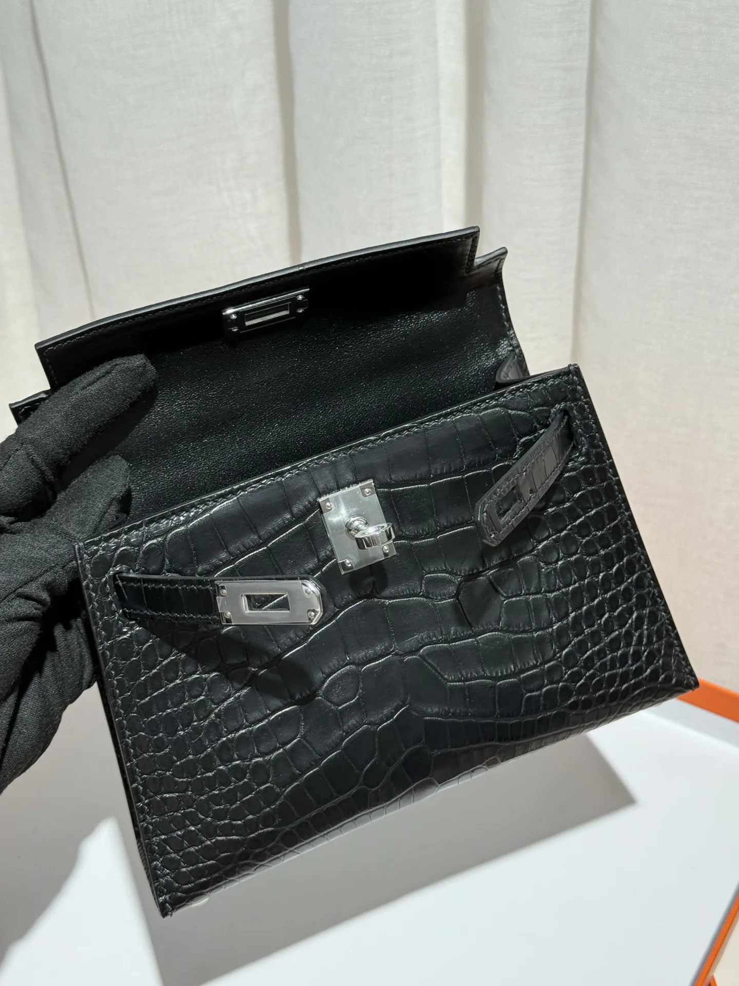 Kelly II 19cm Imported American Matte Alligator Leather, Black, Full Set of Hand-Hammered Hardware, Hand-Sewn Waxed Linen Thread, Actual Photo [Color] Matches Authentic American Alligator.