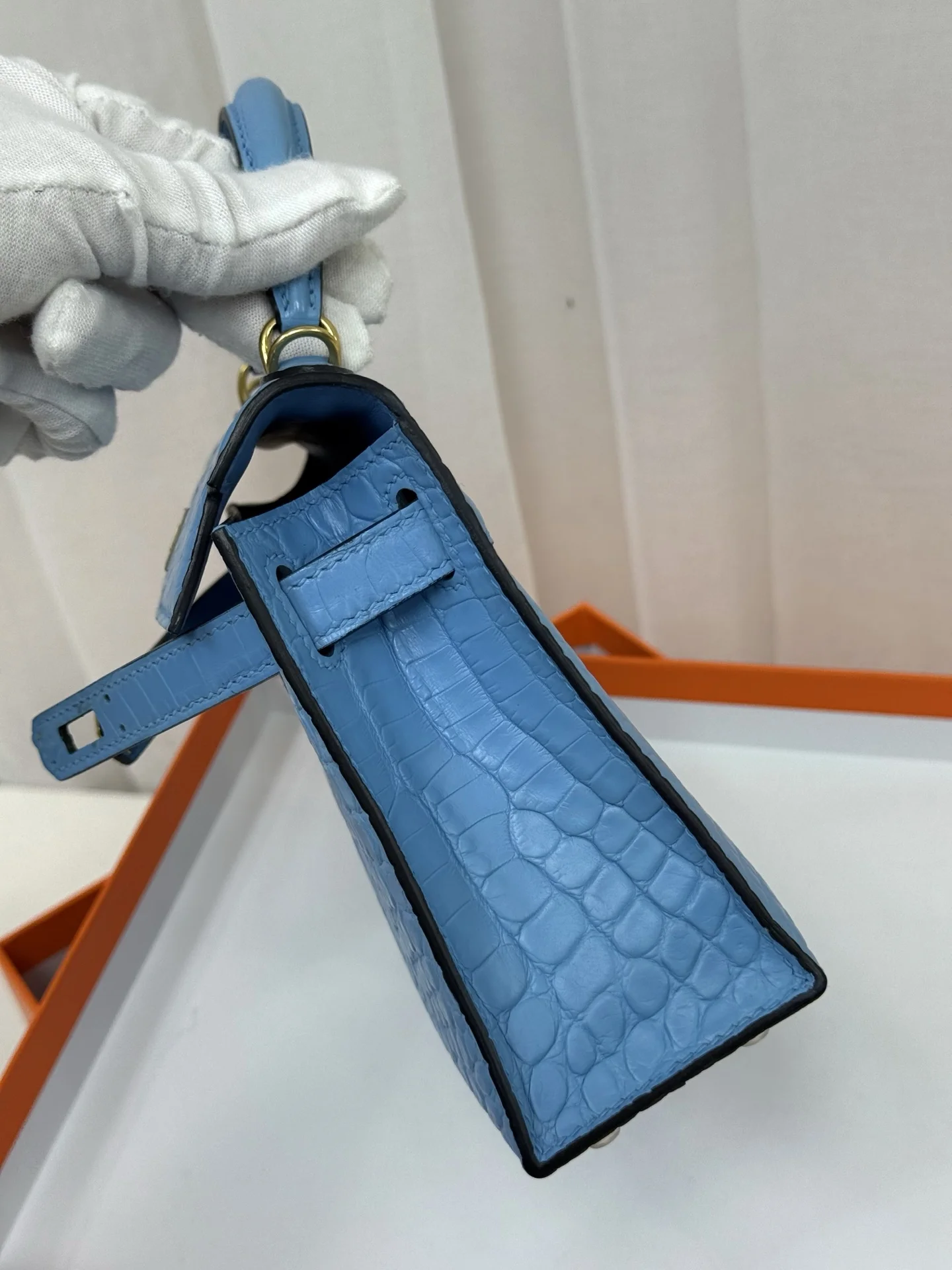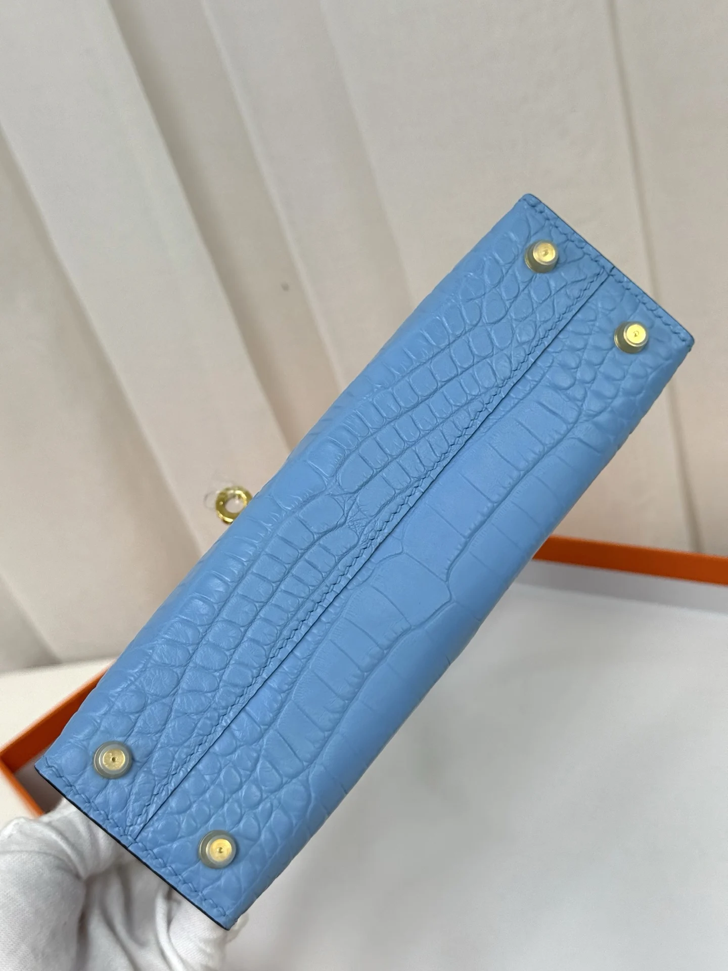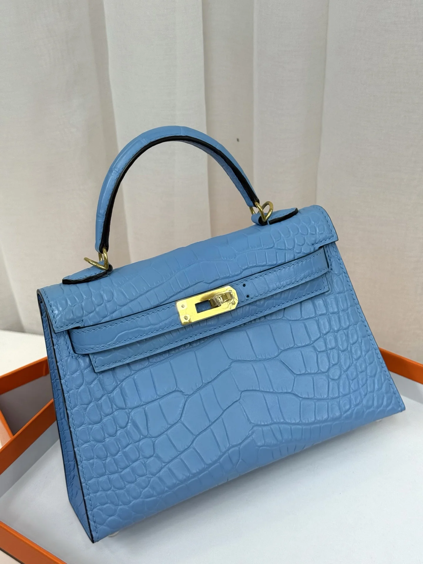 Kelly II 19 cm Imported American Matte Alligator Leather, Hand-stitched, Exact Replica of Boutique American Alligator