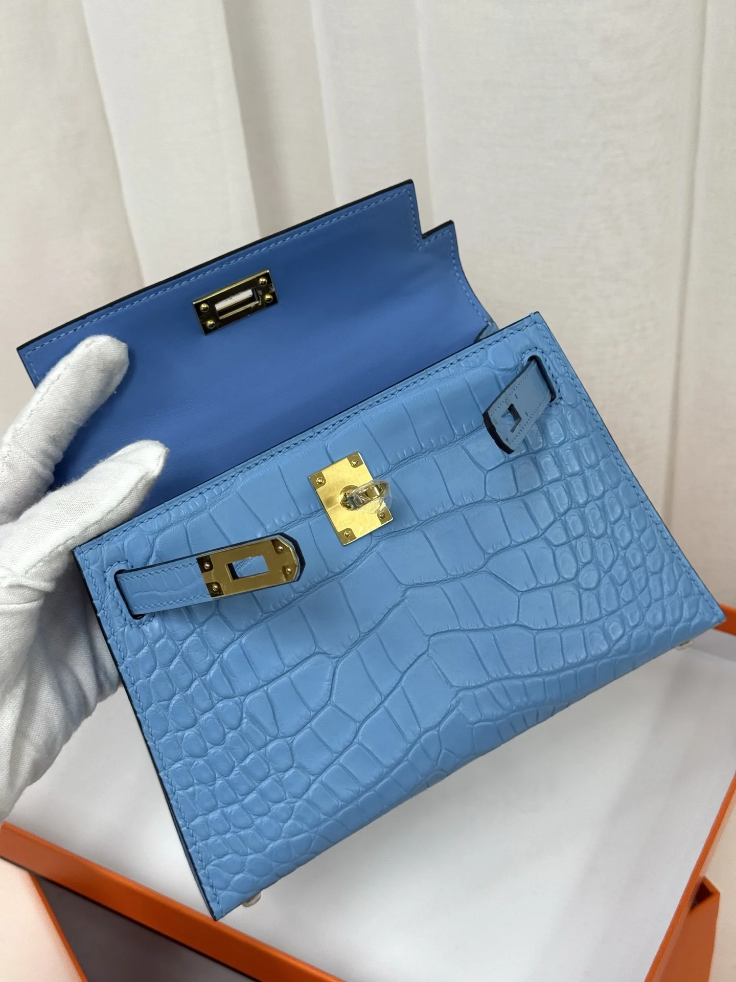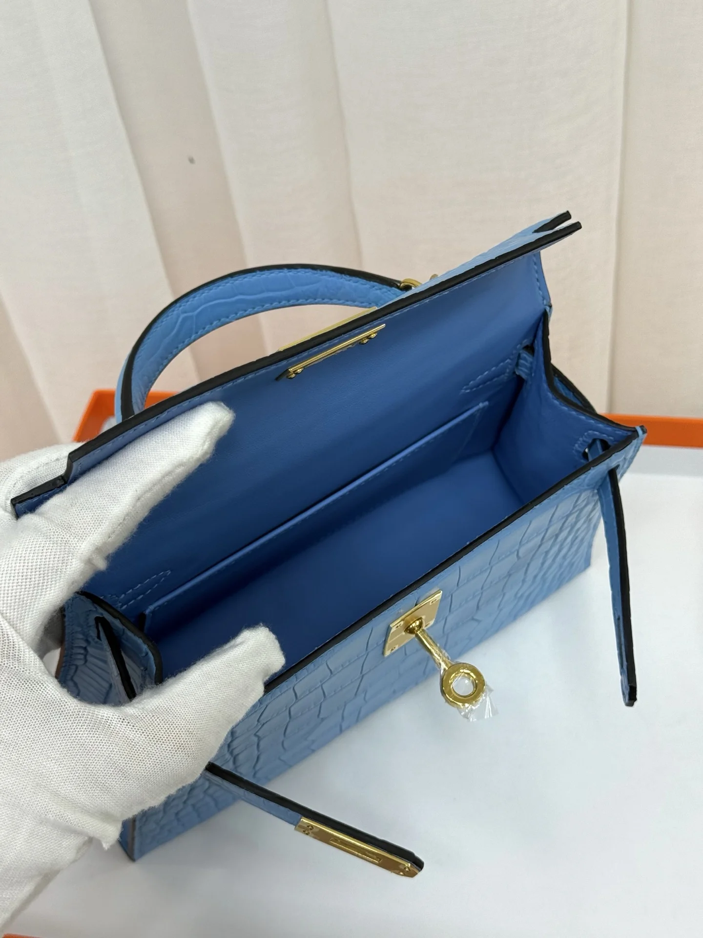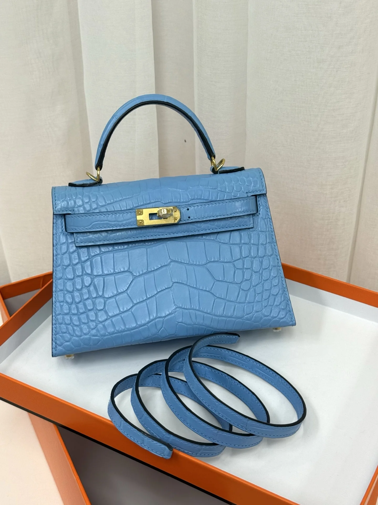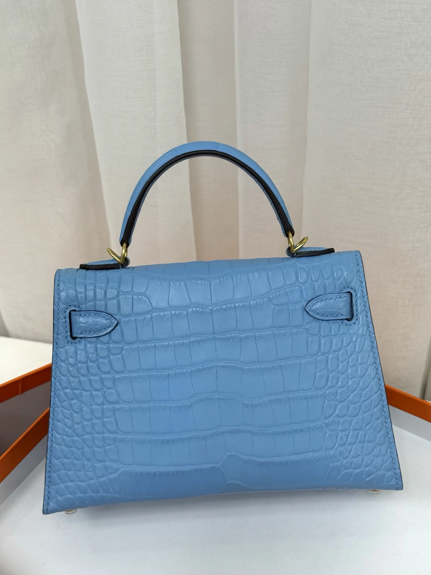 Kelly II 19 cm Imported American Matte Alligator Leather, Hand-stitched, Exact Replica of Boutique American Alligator