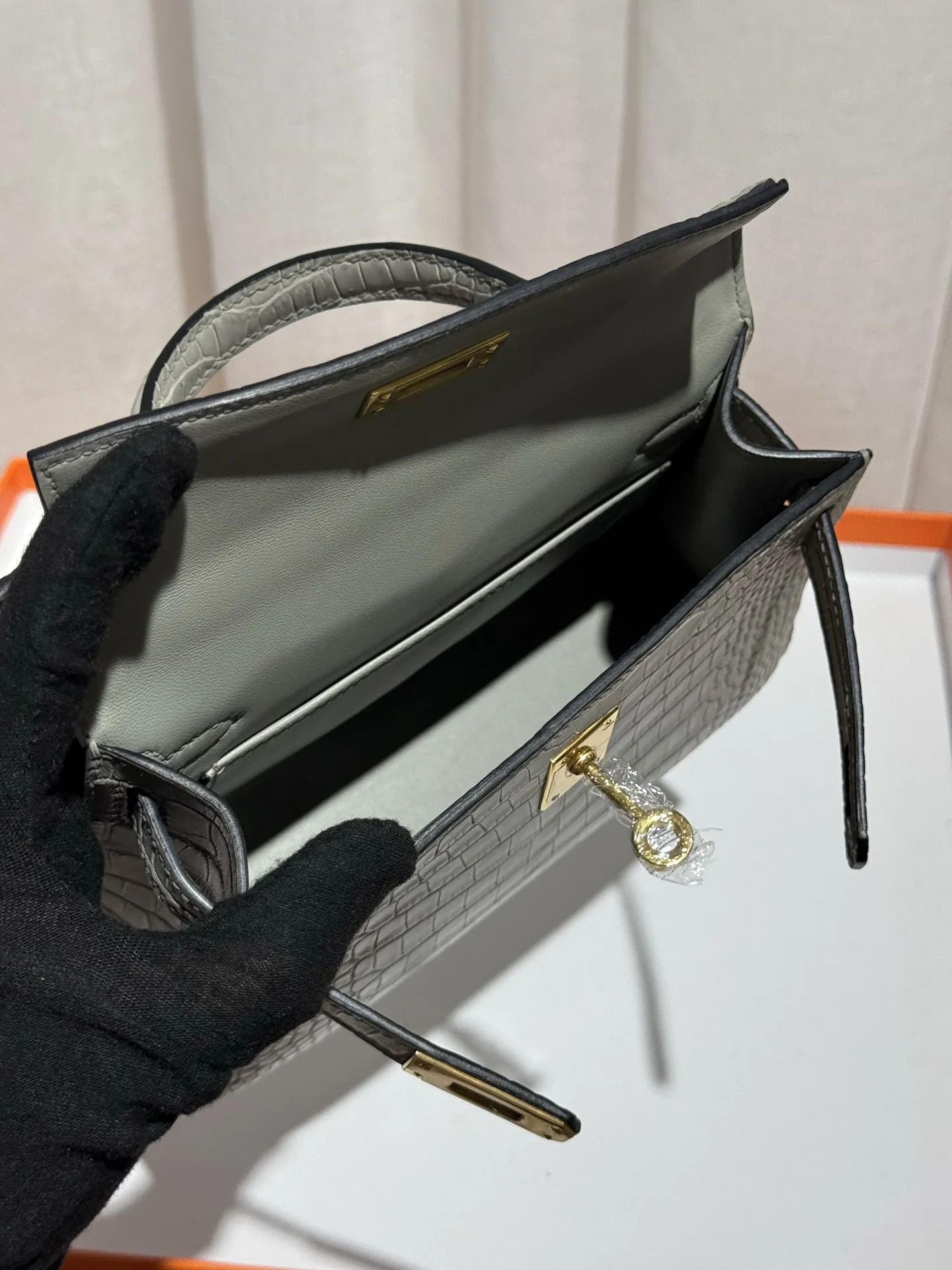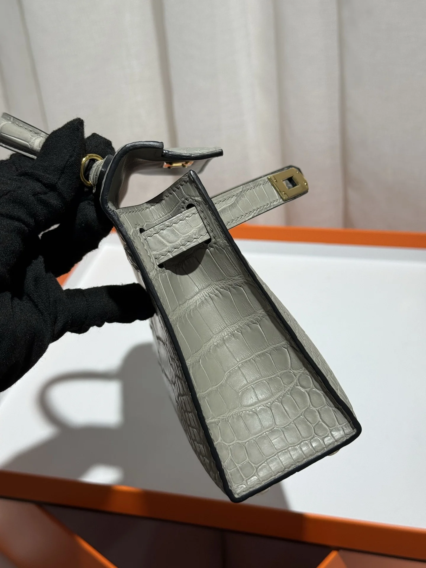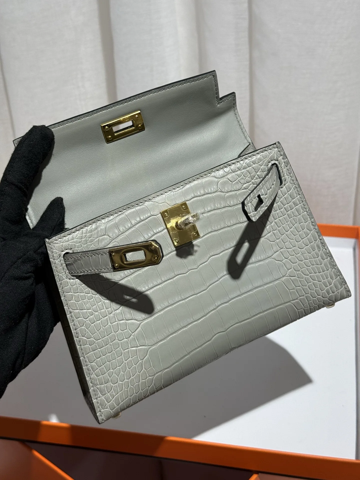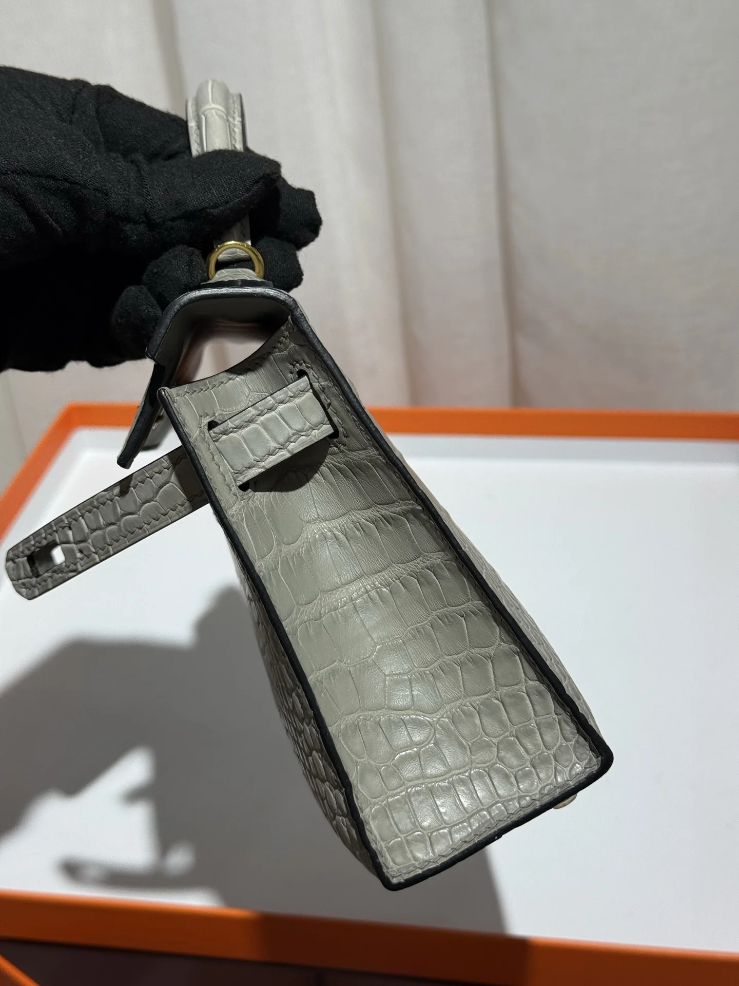 Kelly II 19cm Imported American Matte Alligator Leather, Pearl Grey, Full Set of Hand-Hammered Hardware, Hand-Sewn Waxed Linen Thread, Actual Photo [Color] Matches Authentic American Alligator.