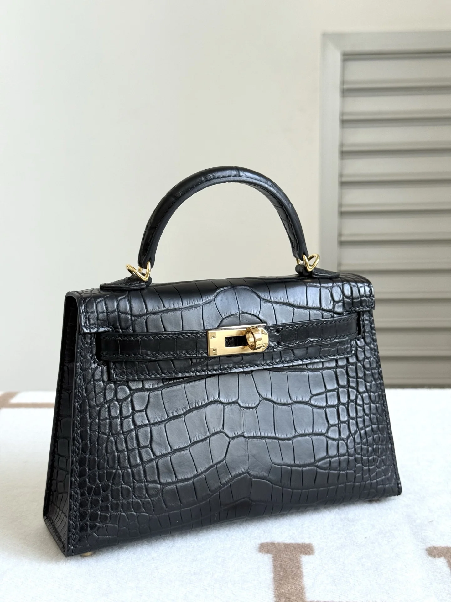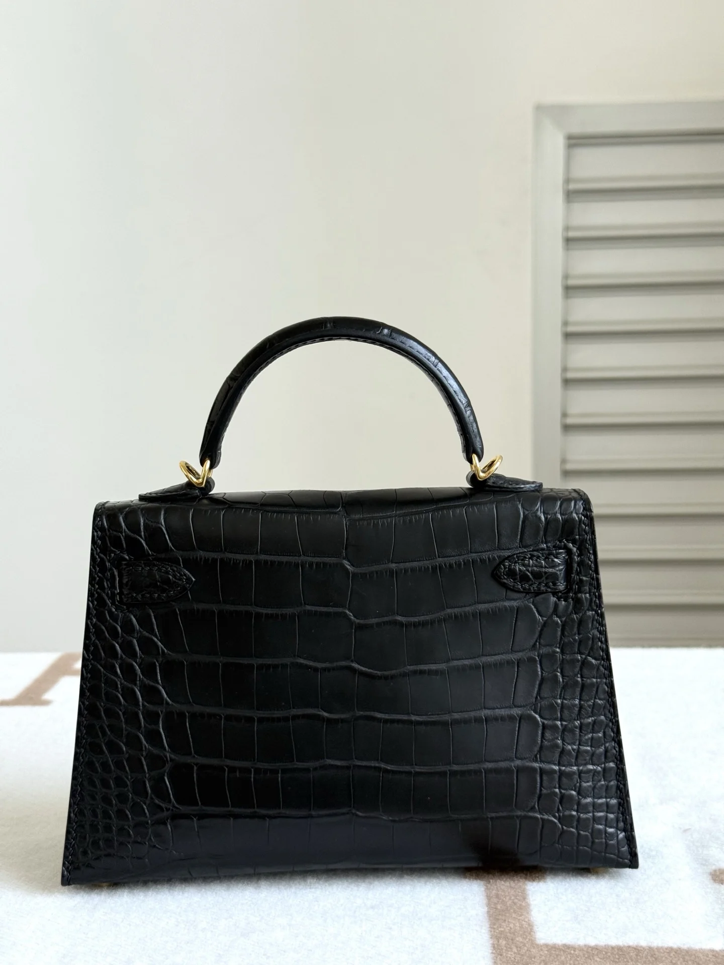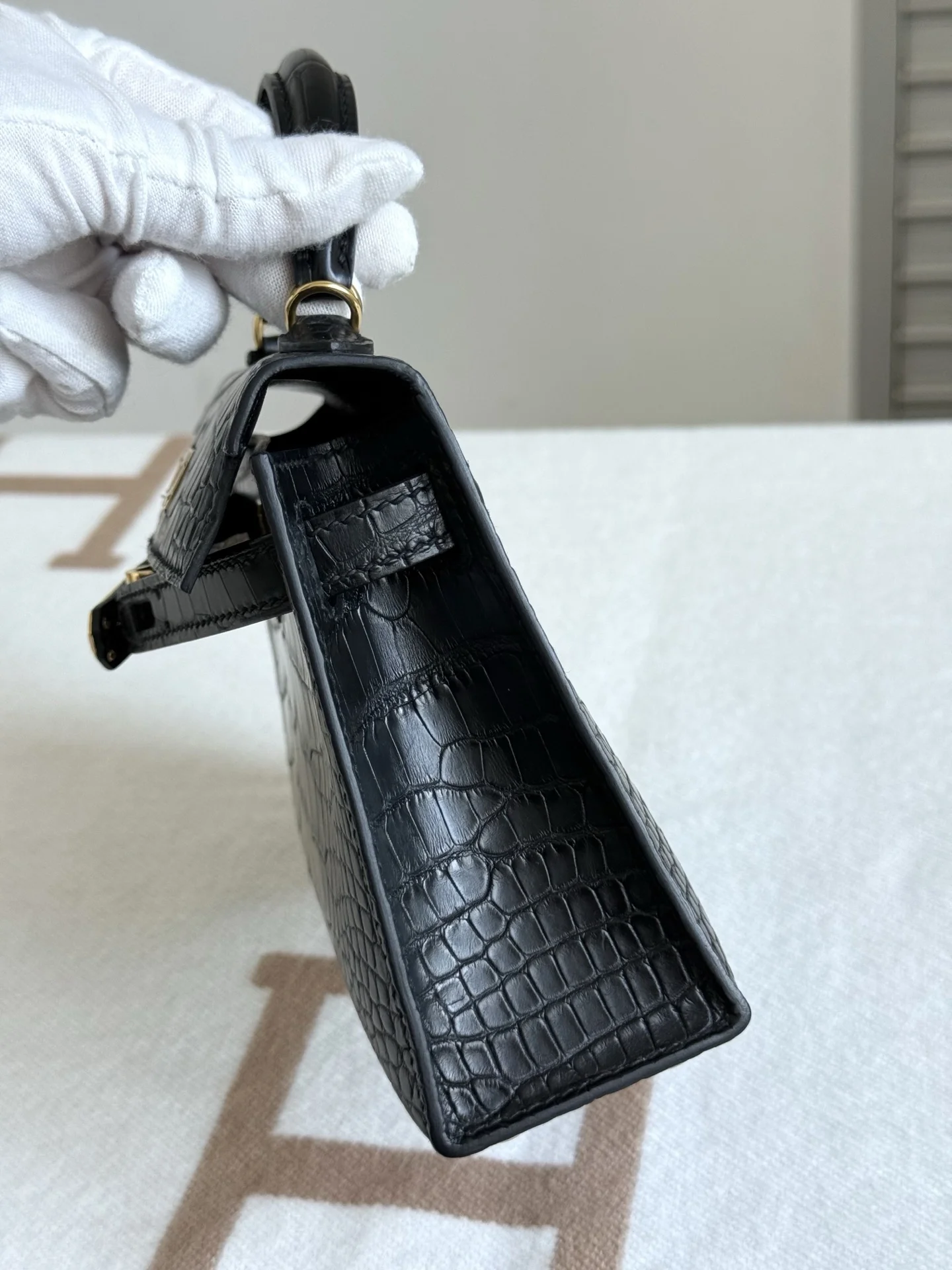 Kelly II 19cm Imported American Matte Alligator Leather, Black, Full Set of Hand-Hammered Hardware, Hand-Sewn Wax Thread, Actual Photo [Color] Accurate Reproduction of Boutique American Alligator