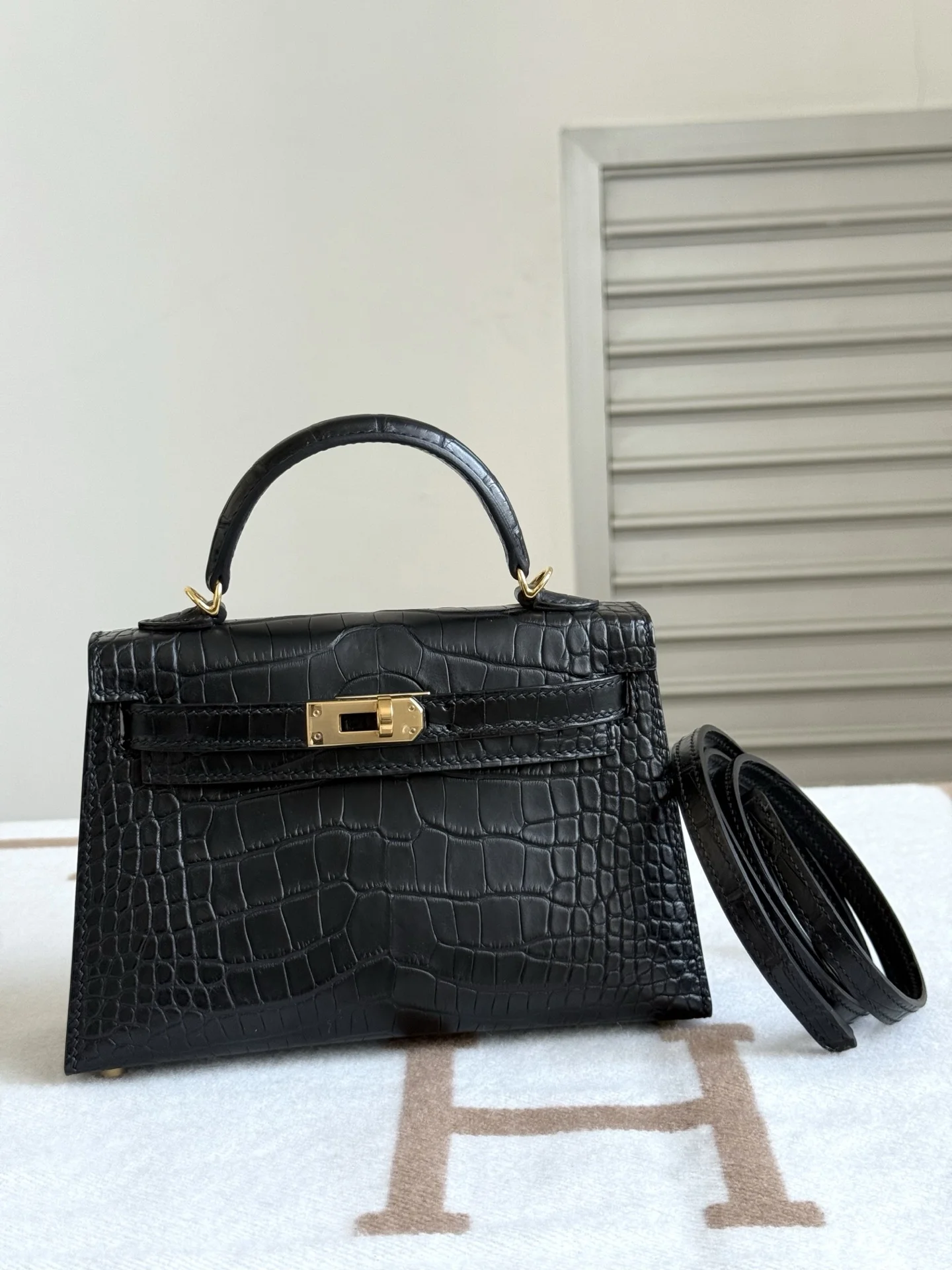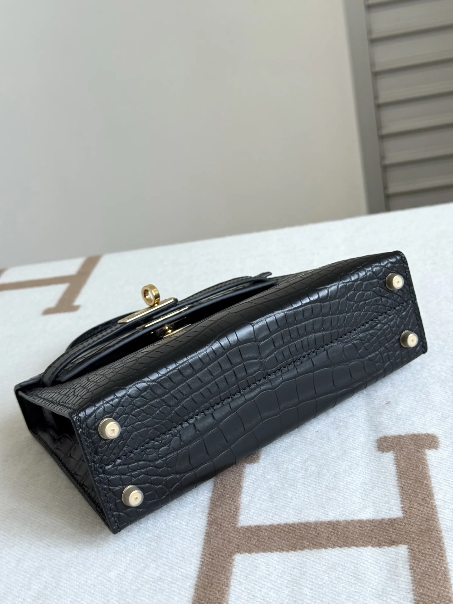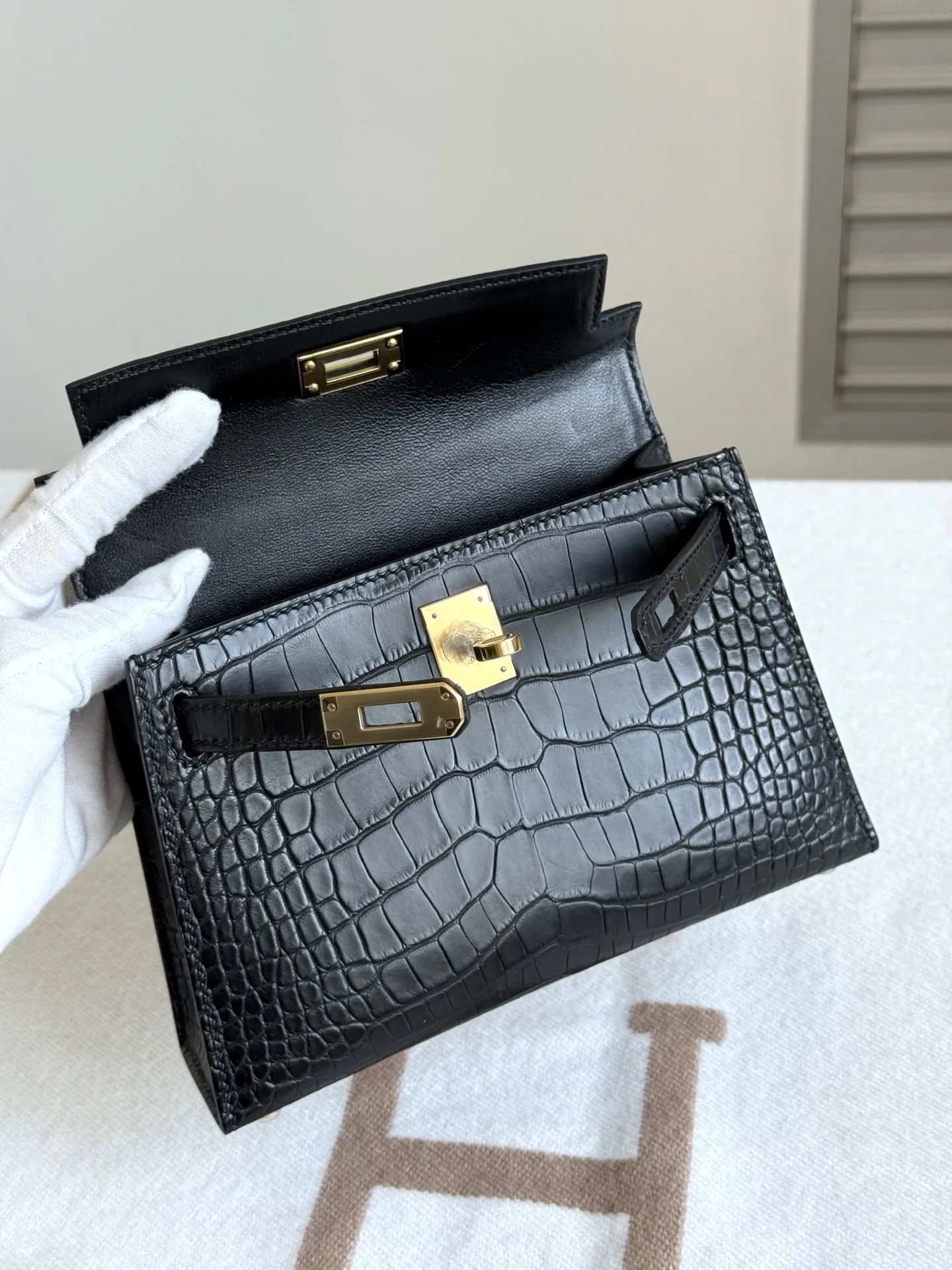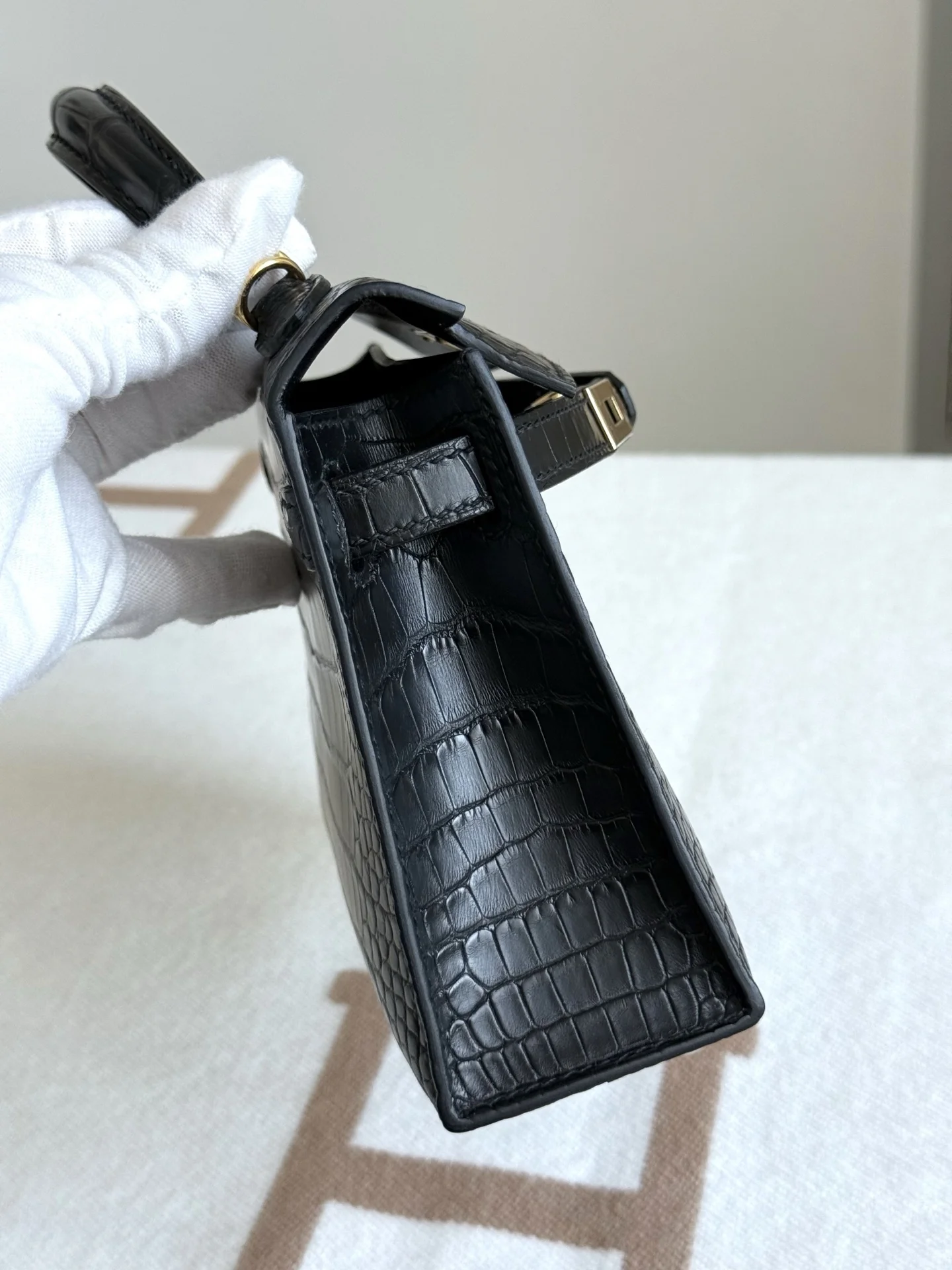 Kelly II 19cm Imported American Matte Alligator Leather, Black, Full Set of Hand-Hammered Hardware, Hand-Sewn Wax Thread, Actual Photo [Color] Accurate Reproduction of Boutique American Alligator
