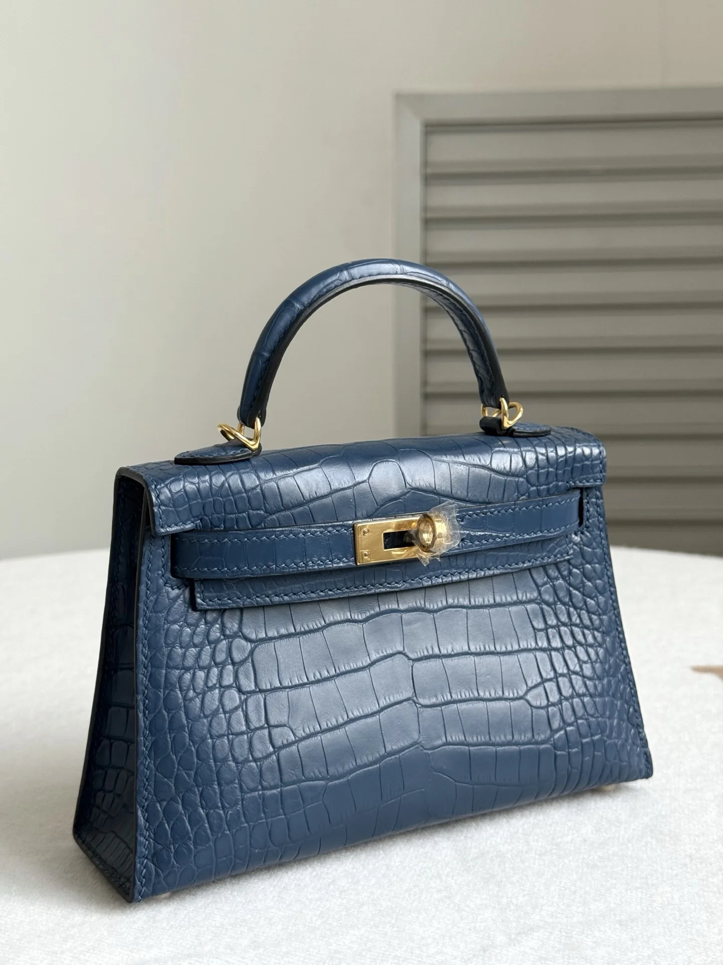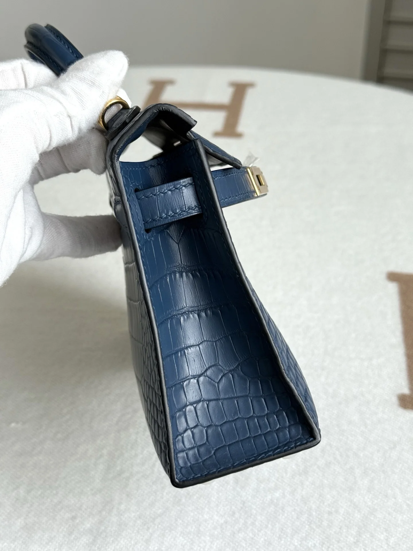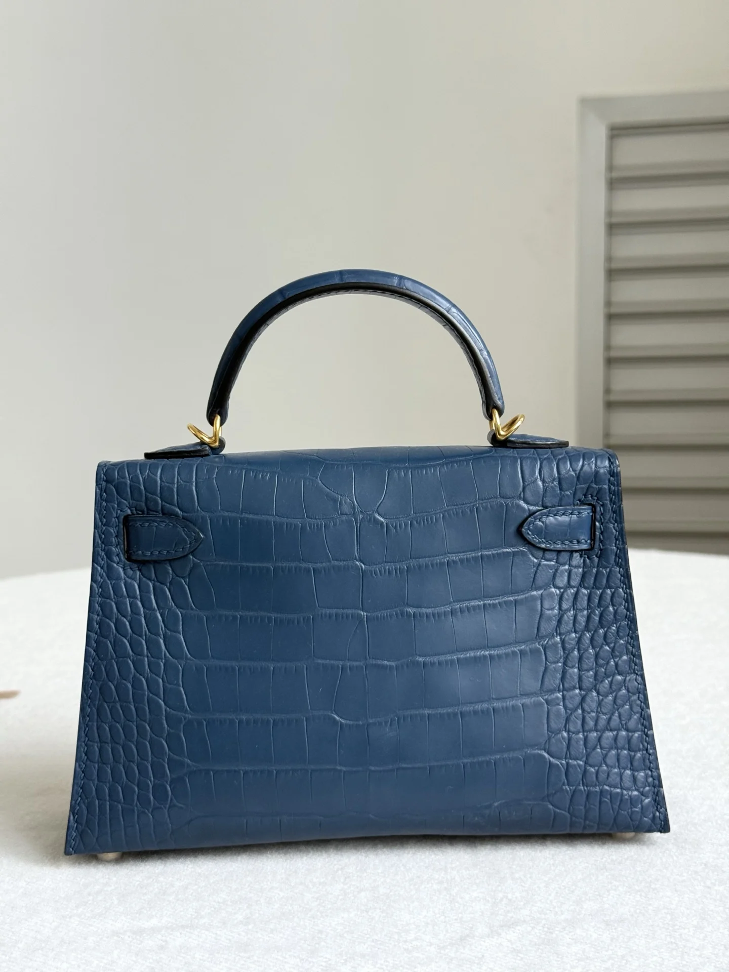 Kelly II 19cm Imported American Matte Alligator Leather, Blue Dye, Full Set of Hand-Hammered Hardware, Hand-Sewn Wax Thread, Actual Photo [Color] Matches Authentic American Alligator
