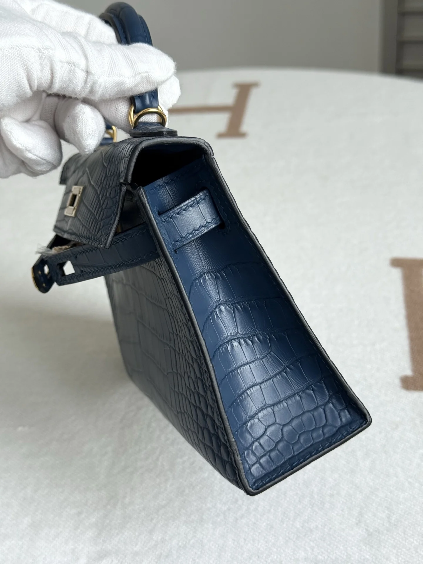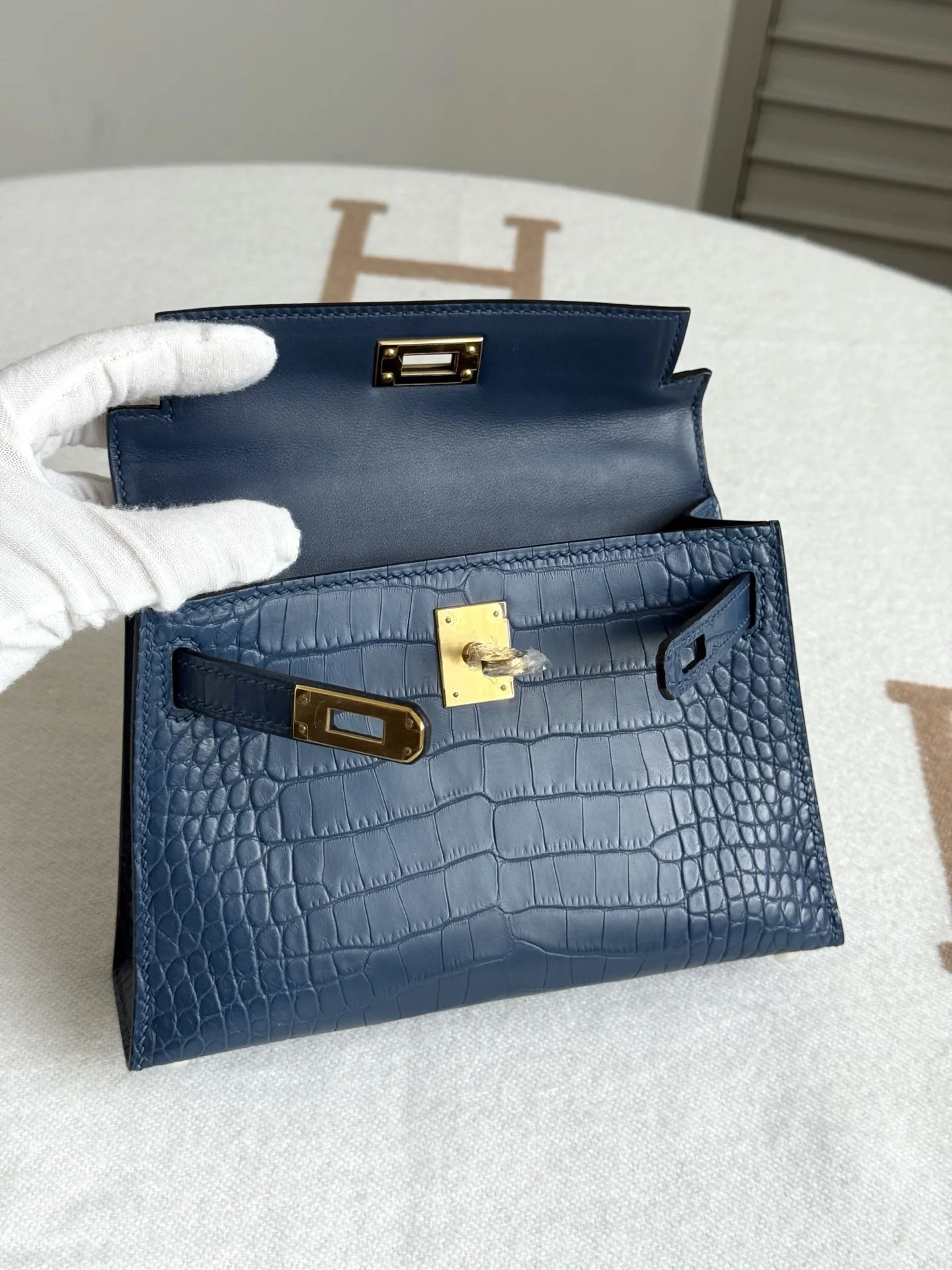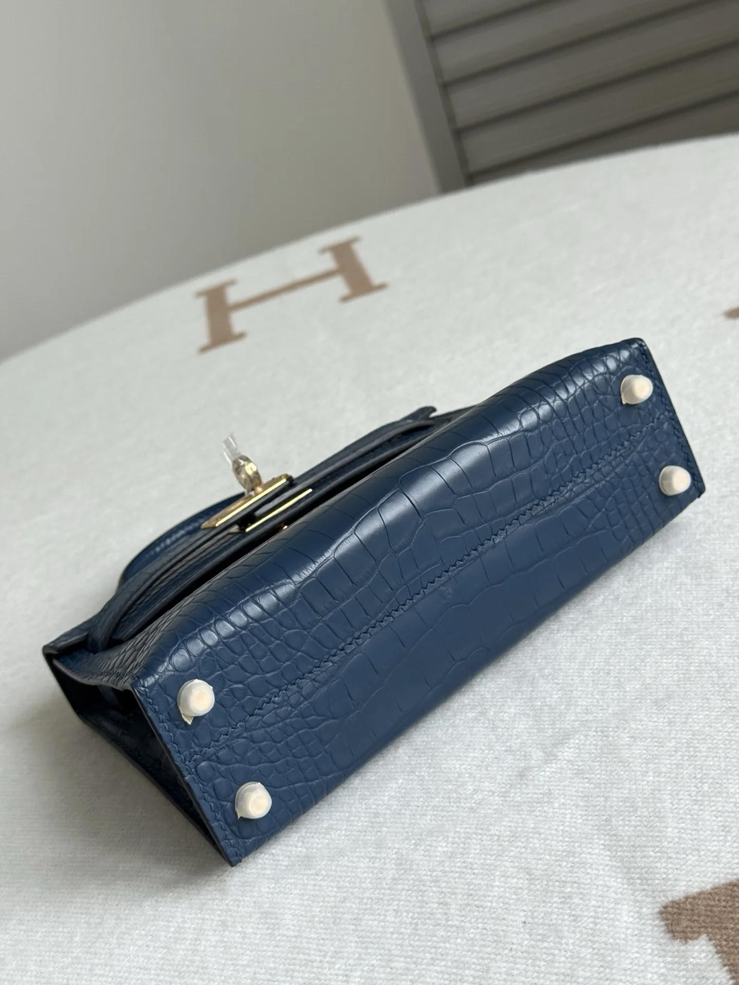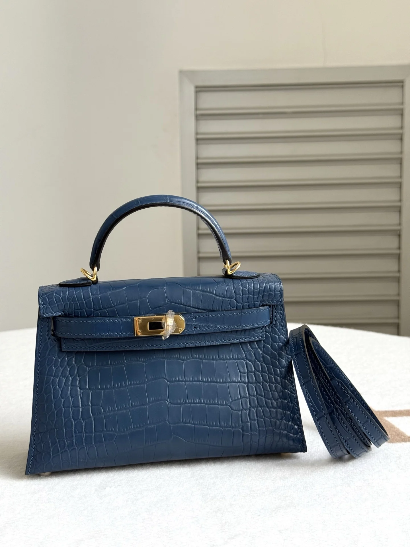 Kelly II 19cm Imported American Matte Alligator Leather, Blue Dye, Full Set of Hand-Hammered Hardware, Hand-Sewn Wax Thread, Actual Photo [Color] Matches Authentic American Alligator