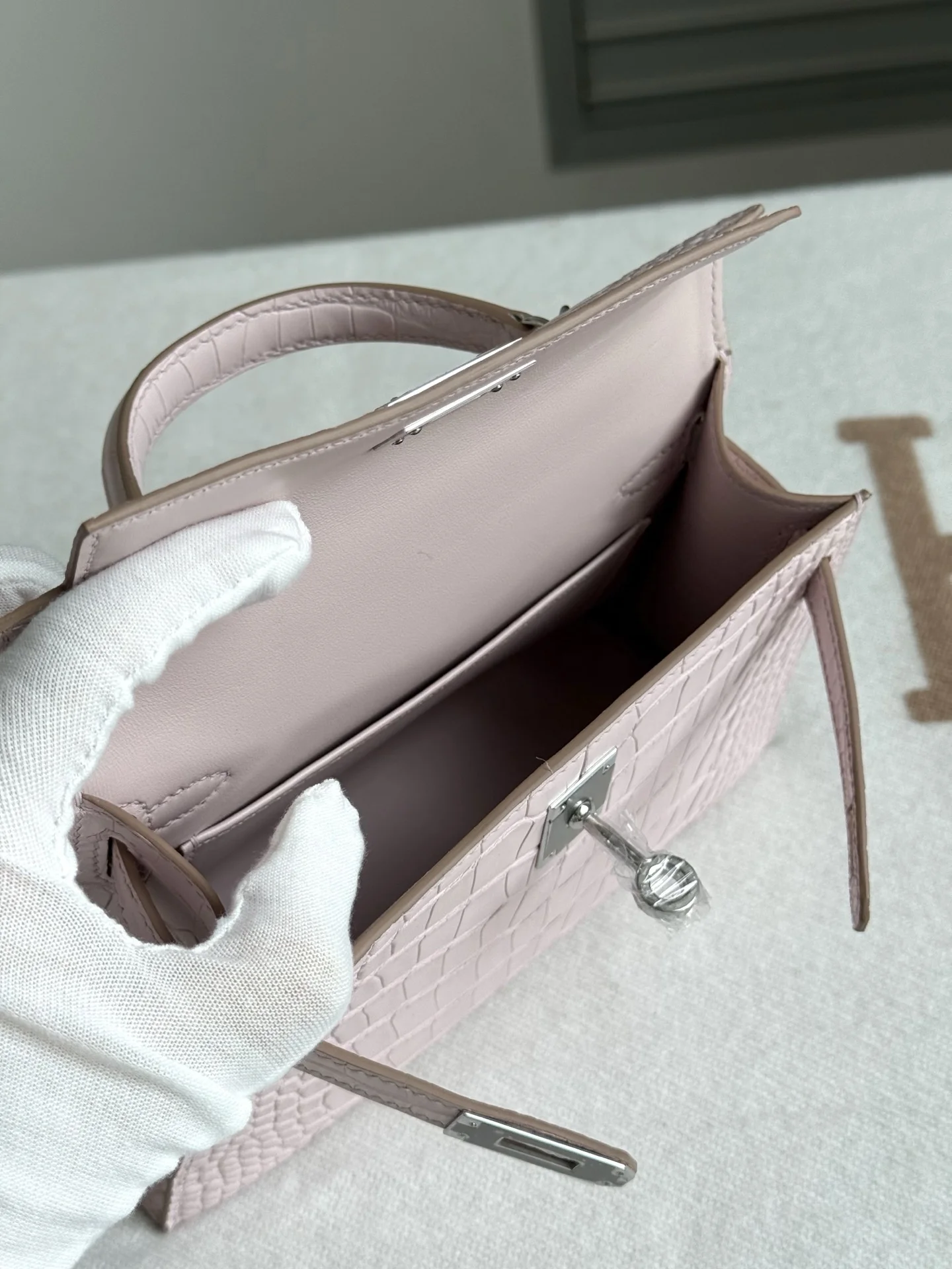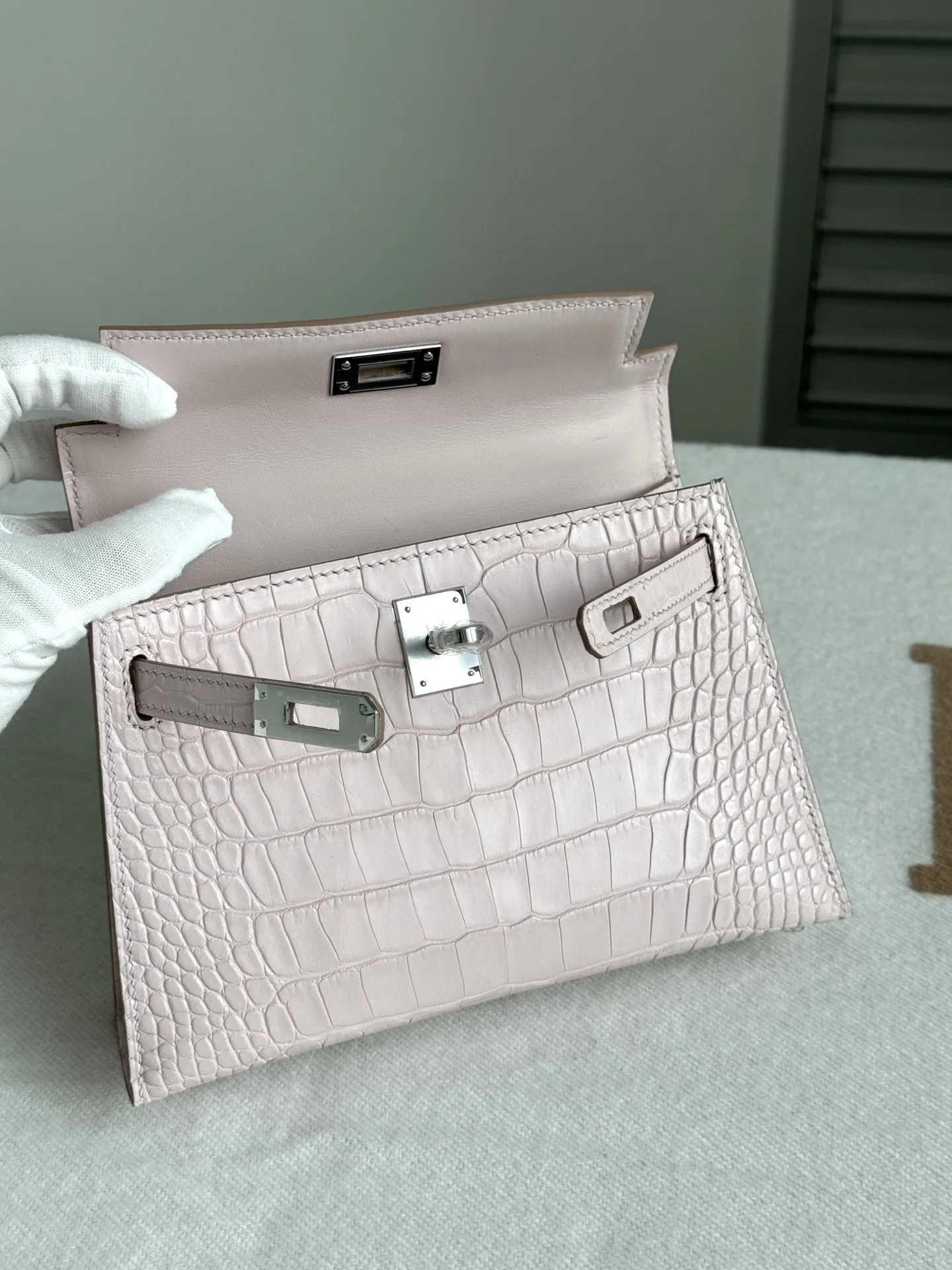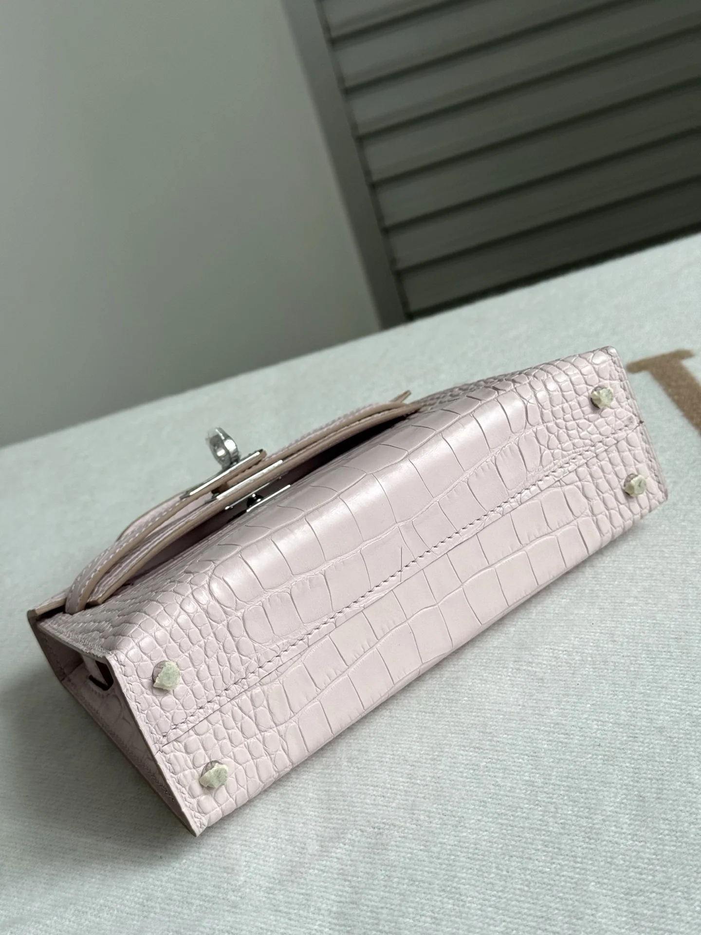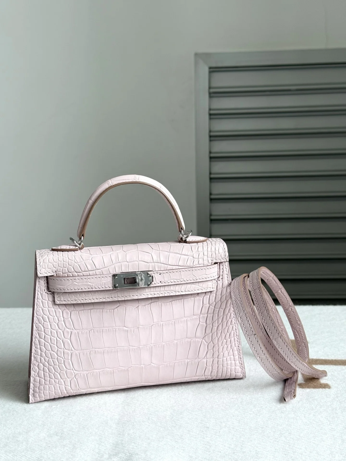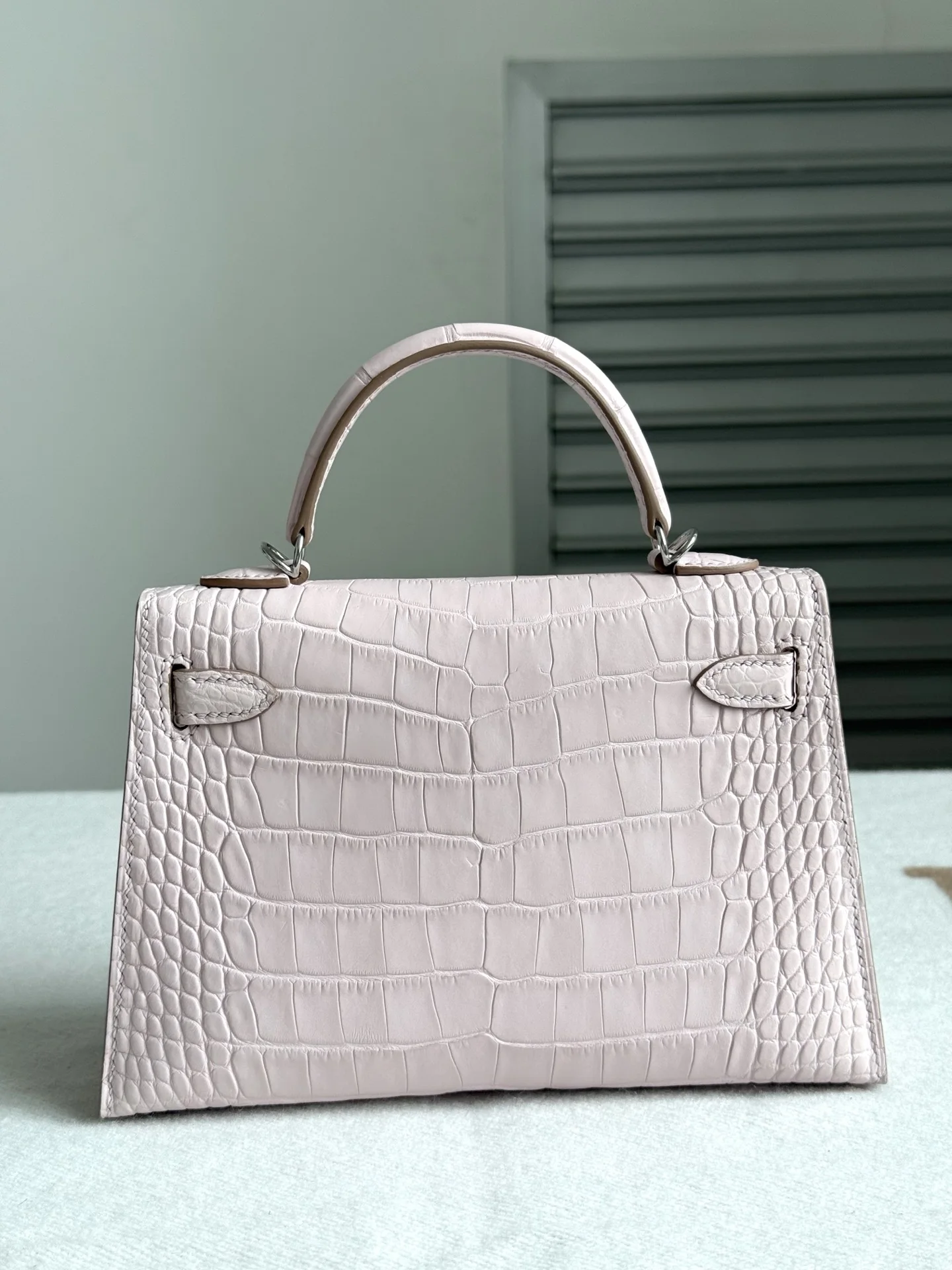 Kelly II 19cm Imported American Matte Alligator Leather, 09 Dreamy Pink-Purple, Full Set of Hand-Hammered Hardware, Hand-Sewn Wax Thread, Actual Photo [Color] Exact Replica of Bout..