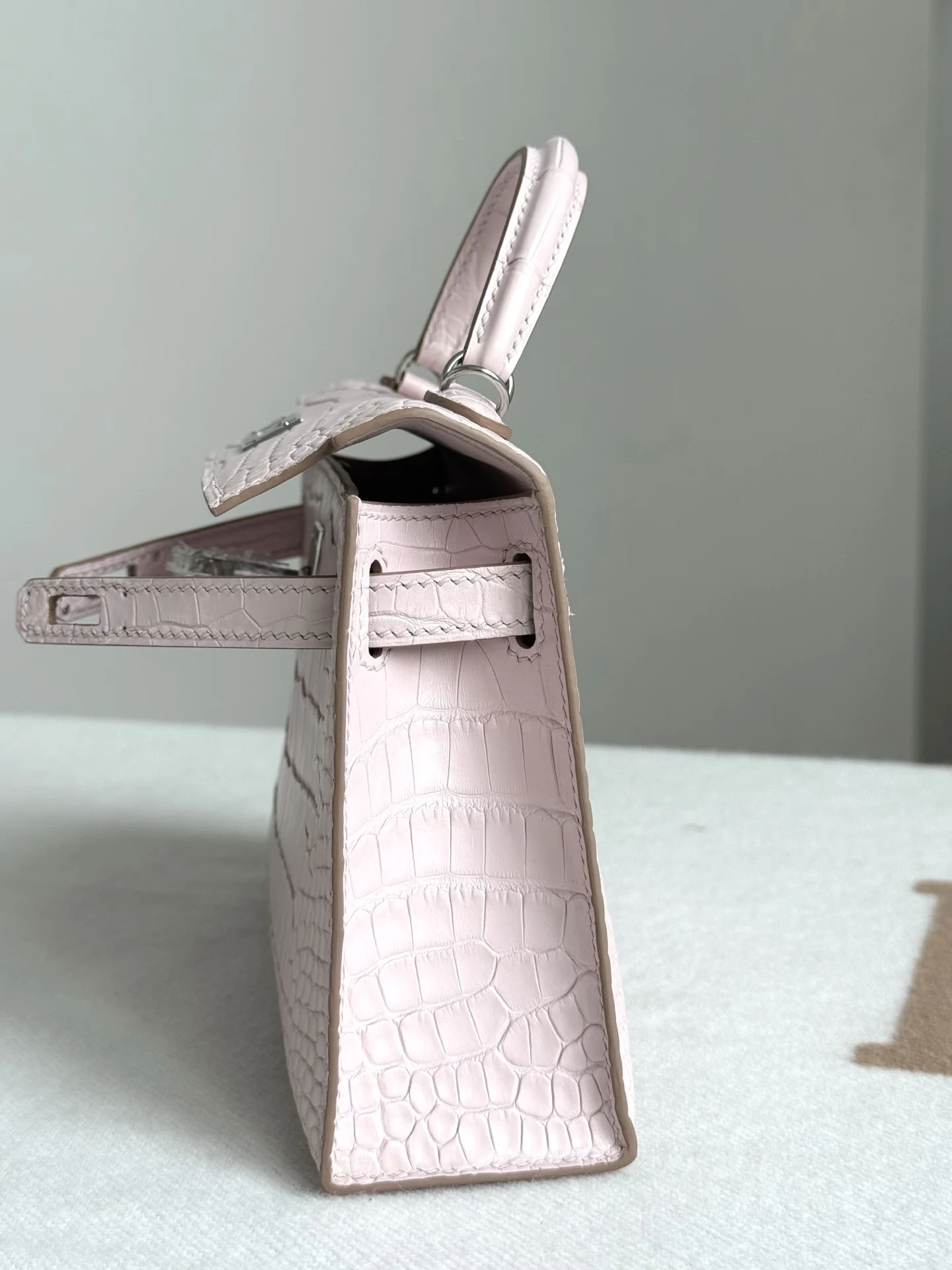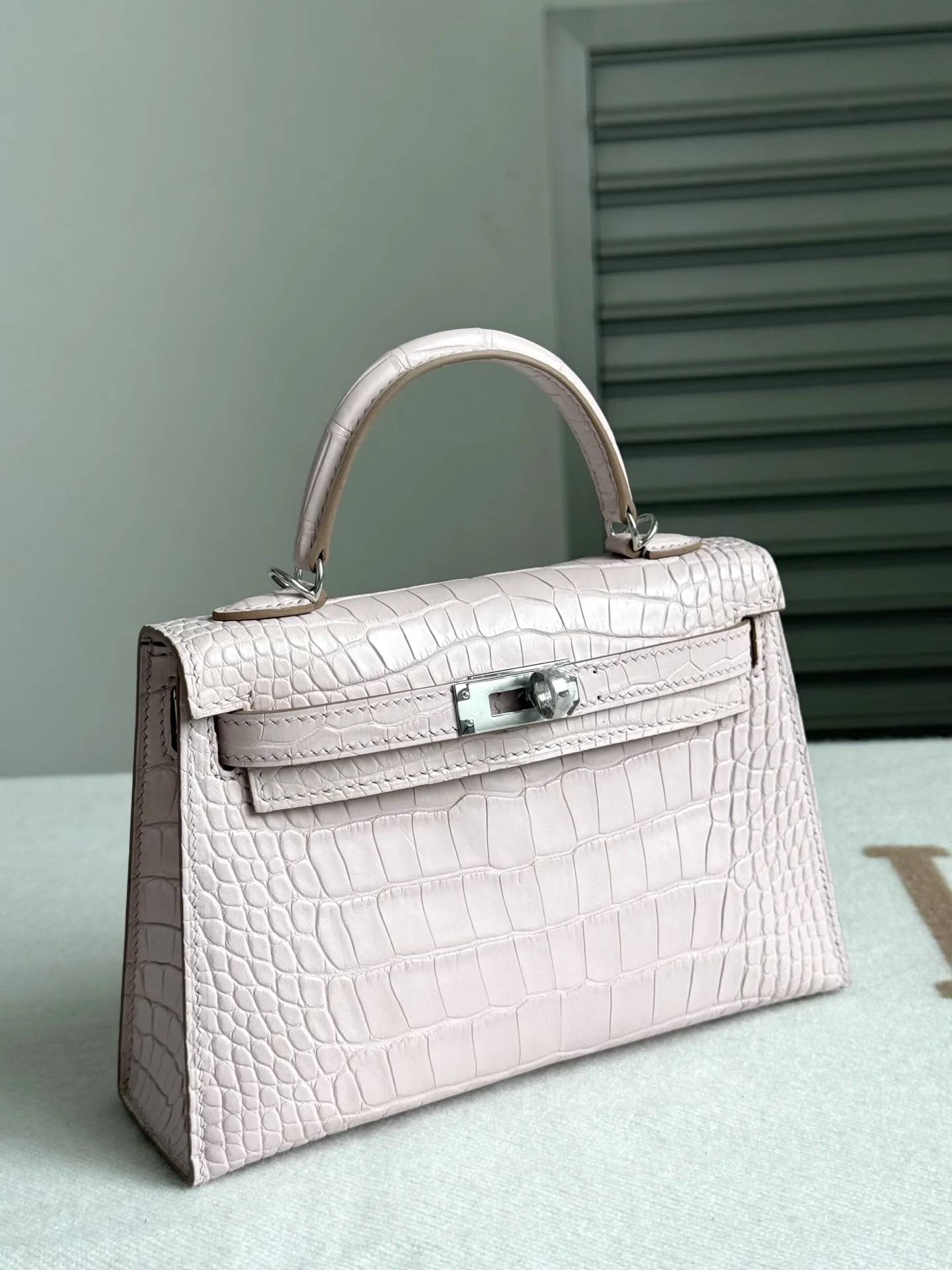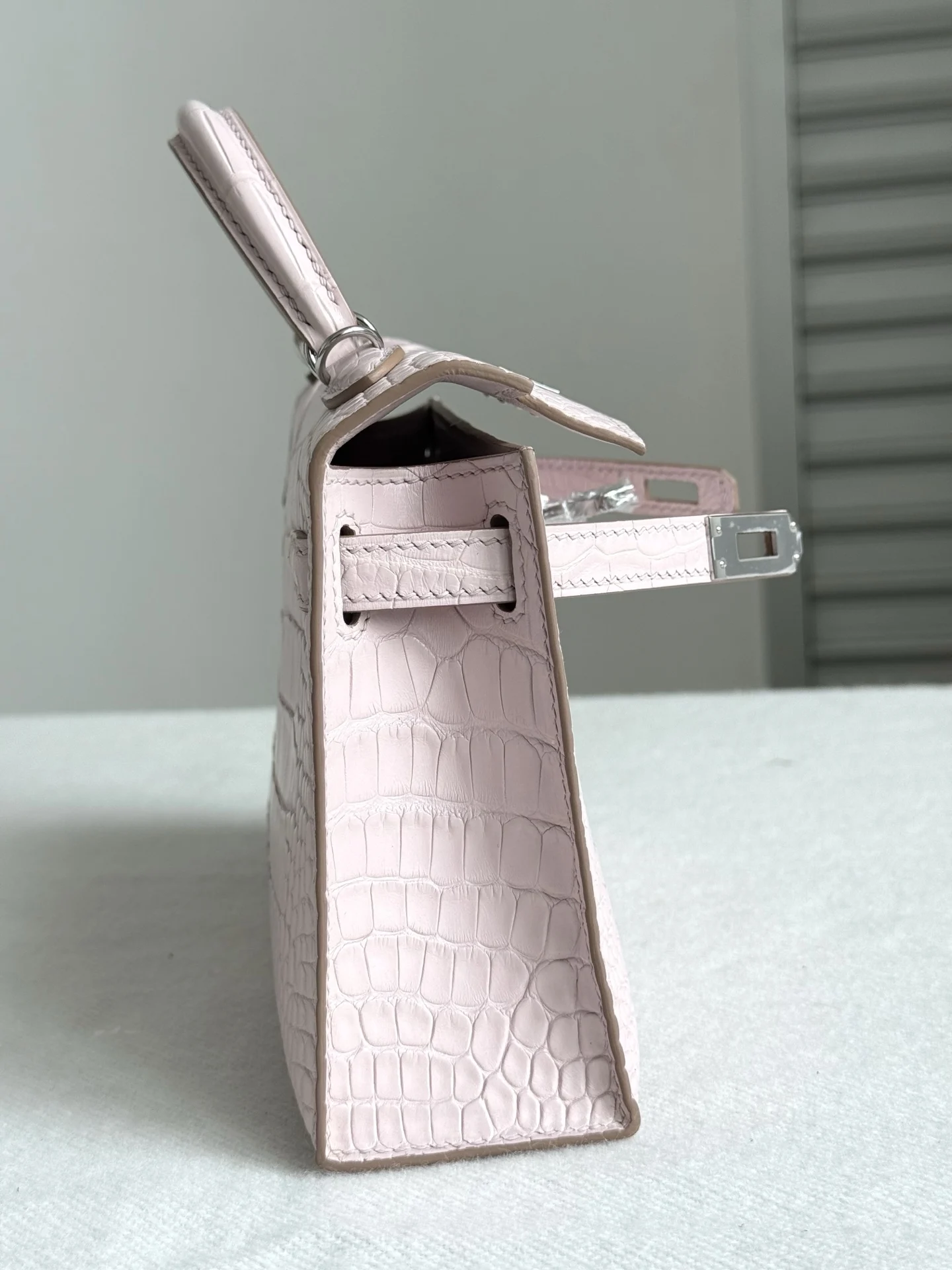 Kelly II 19cm Imported American Matte Alligator Leather, 09 Dreamy Pink-Purple, Full Set of Hand-Hammered Hardware, Hand-Sewn Wax Thread, Actual Photo [Color] Exact Replica of Boutique American Alligator