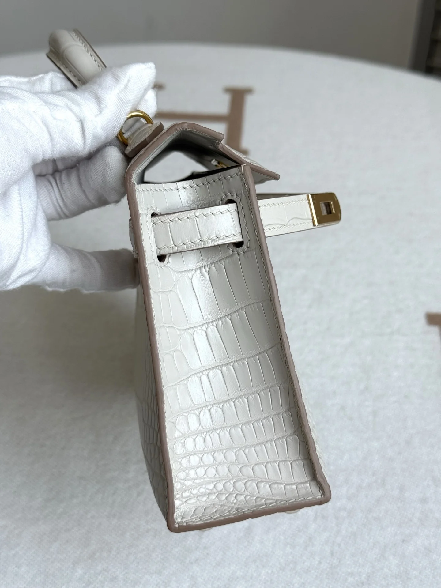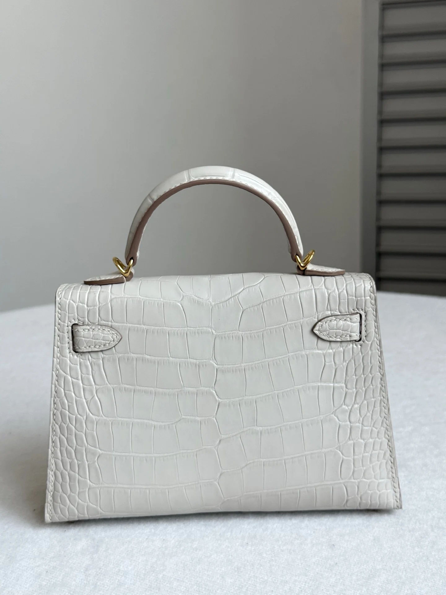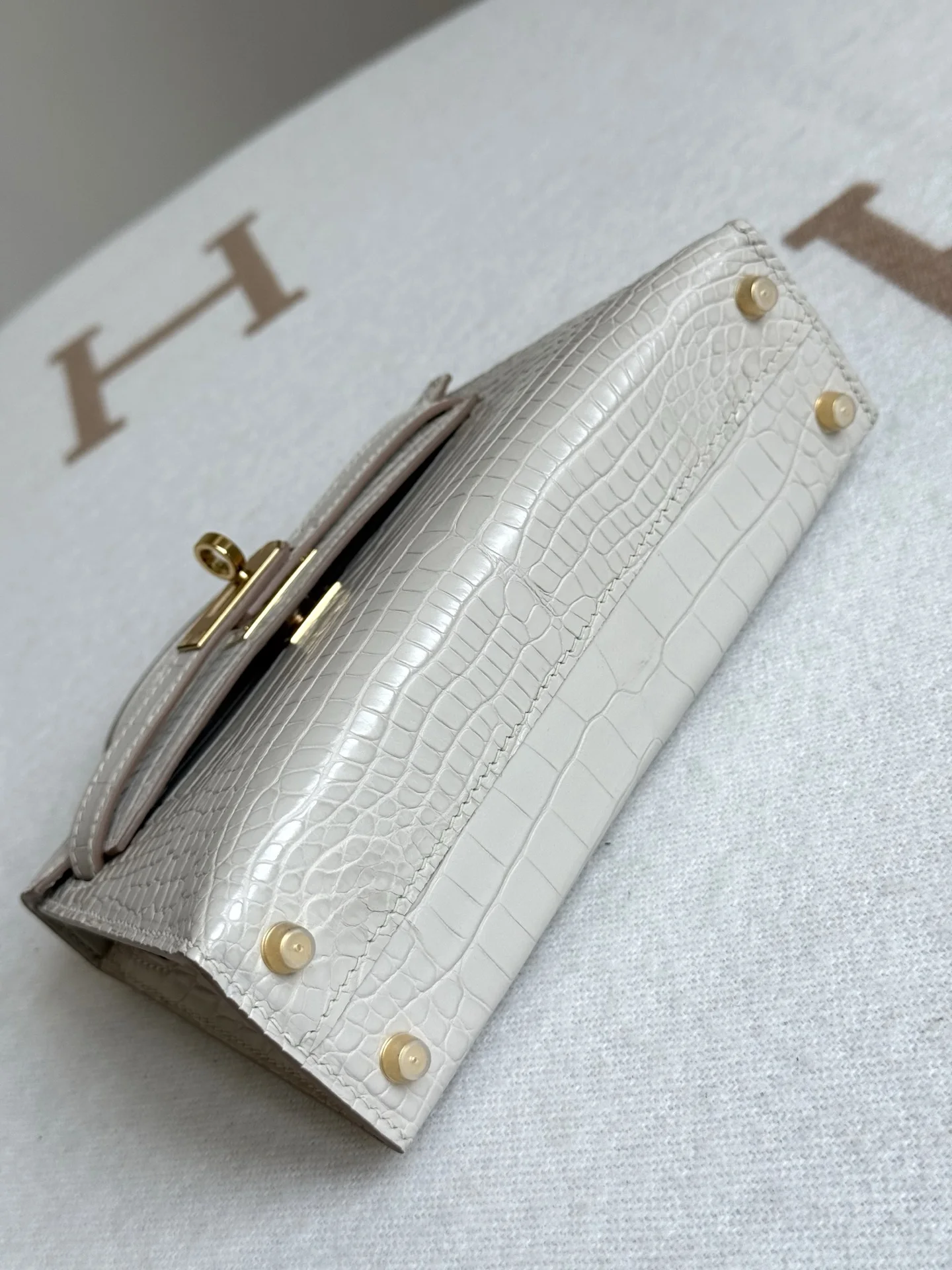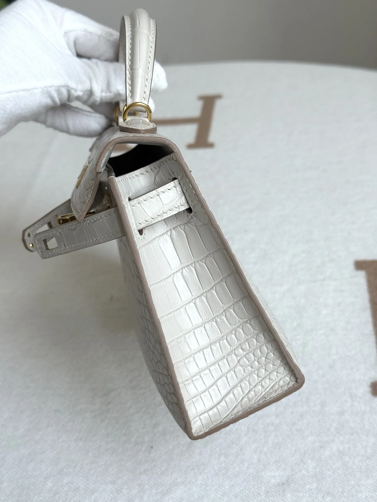 Kelly II 19cm Imported American Matte Alligator Leather, Glacier White, Full Set of Hand-Hammered Hardware, Hand-Sewn Waxed Linen Thread, Actual Photo [Color] Matches Authentic American Alligator