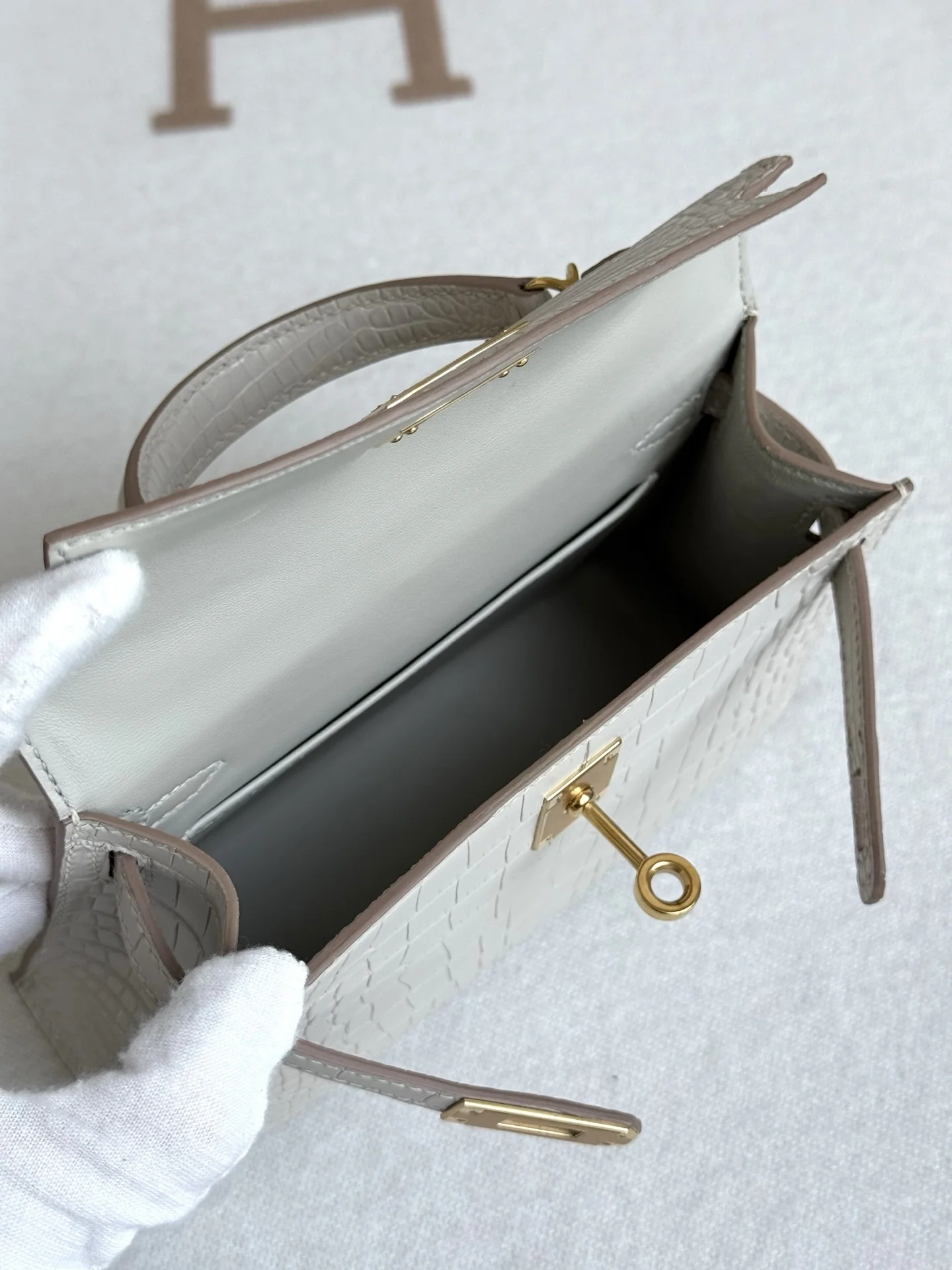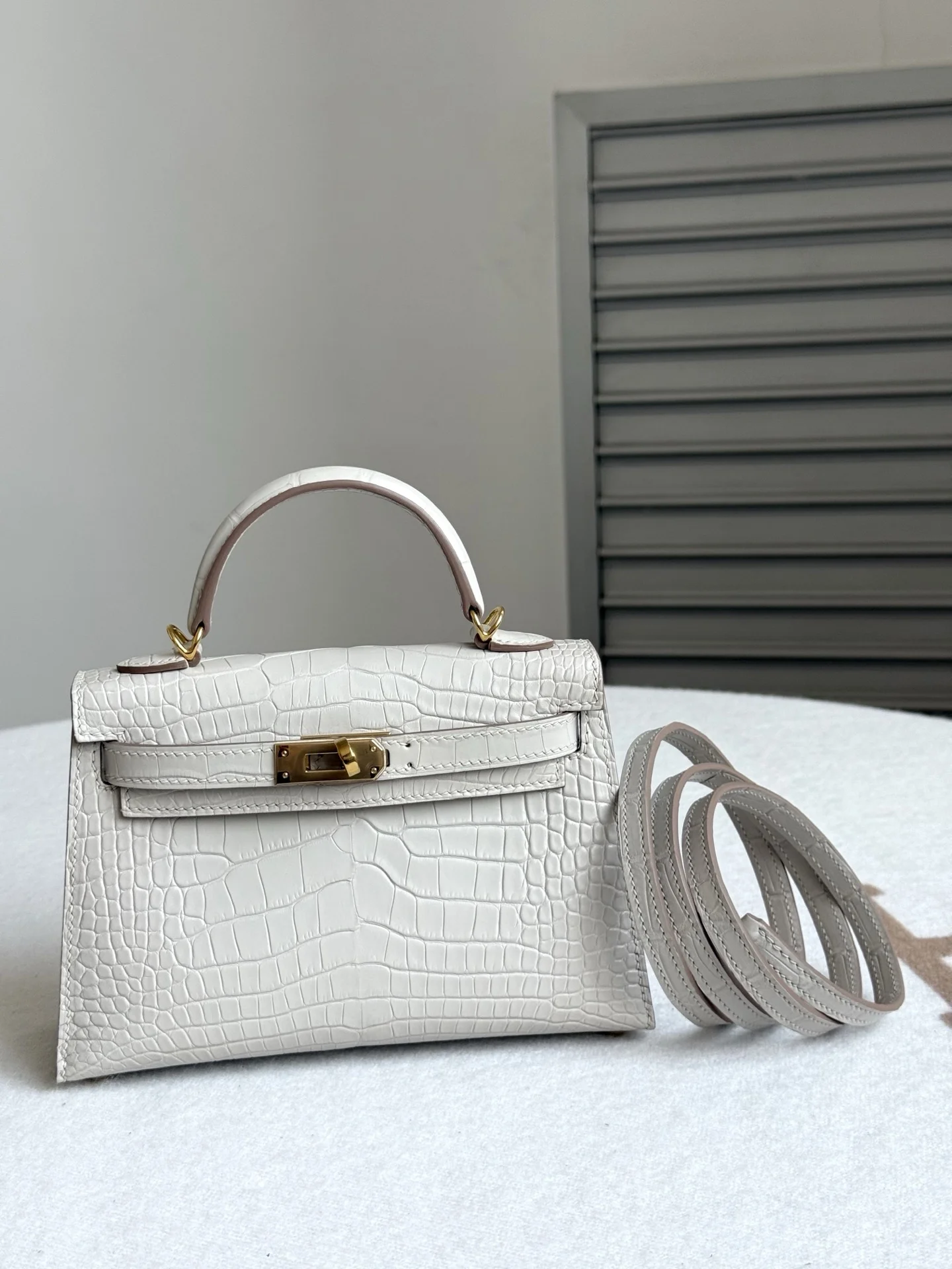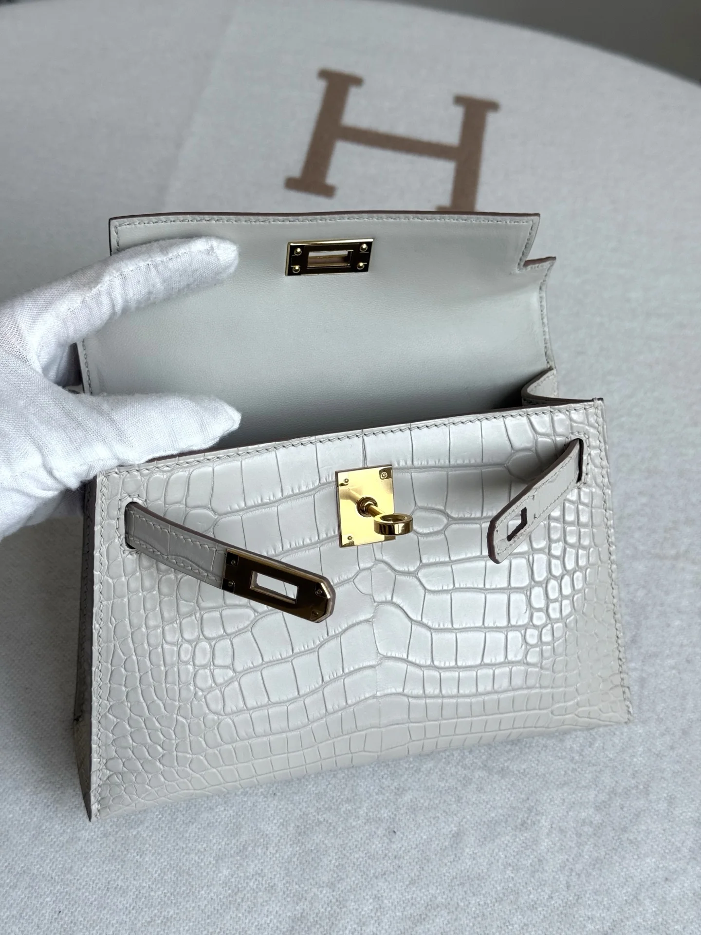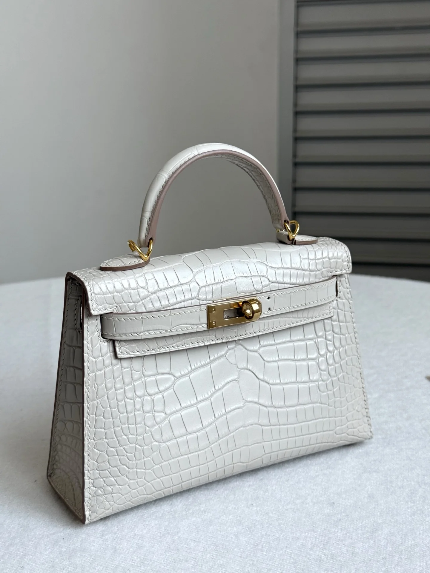 Kelly II 19cm Imported American Matte Alligator Leather, Glacier White, Full Set of Hand-Hammered Hardware, Hand-Sewn Waxed Linen Thread, Actual Photo [Color] Matches Authentic American Alligator