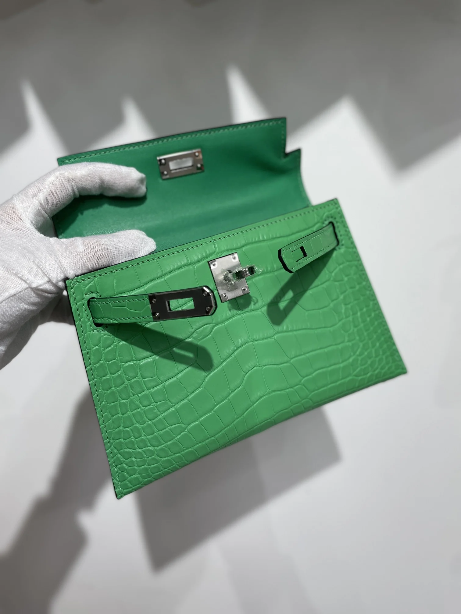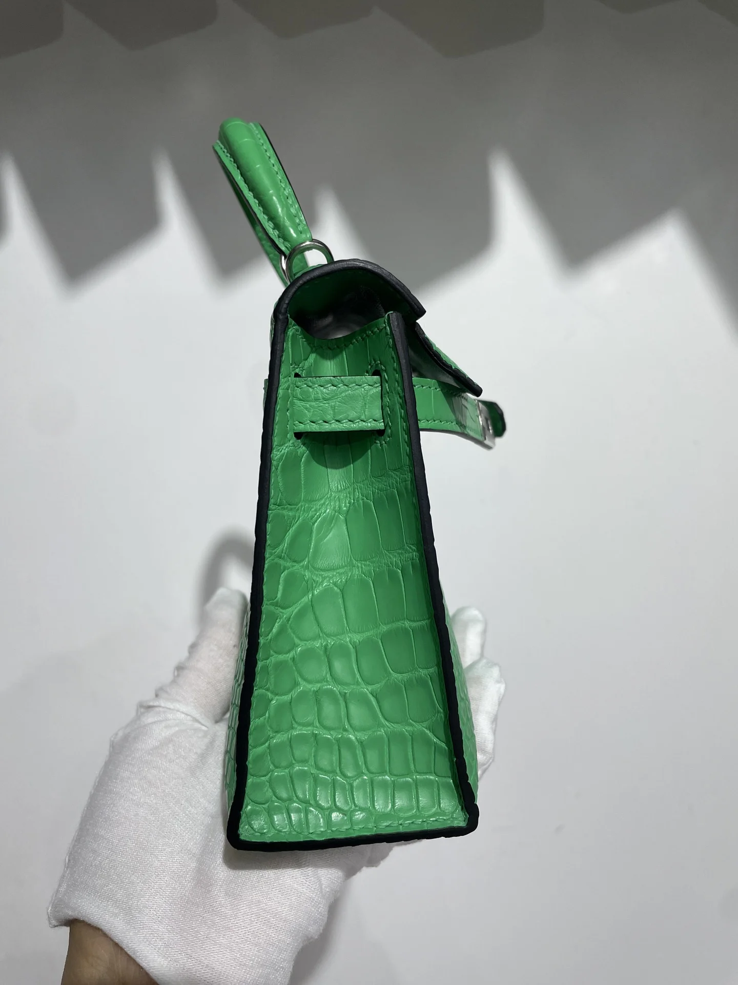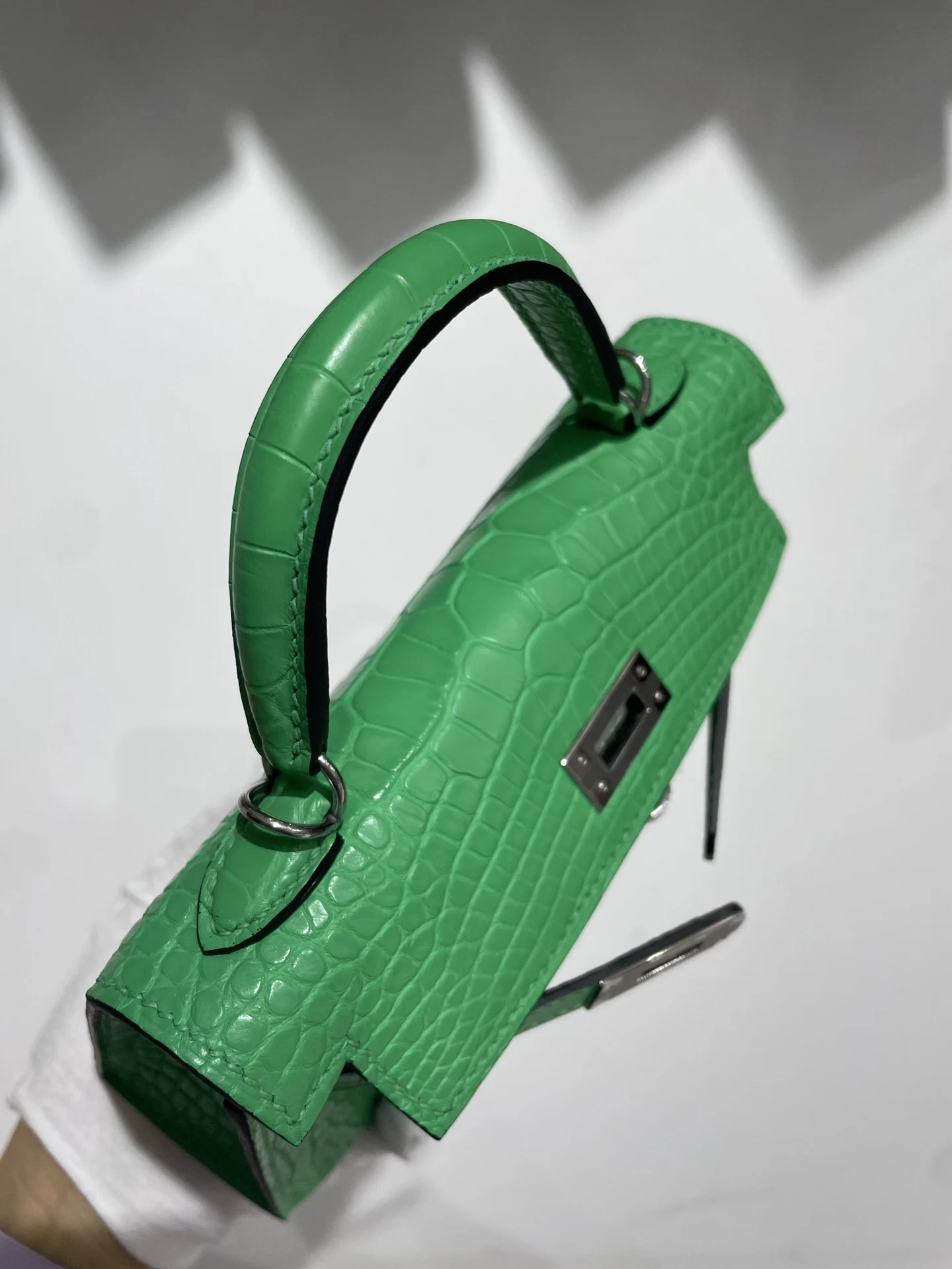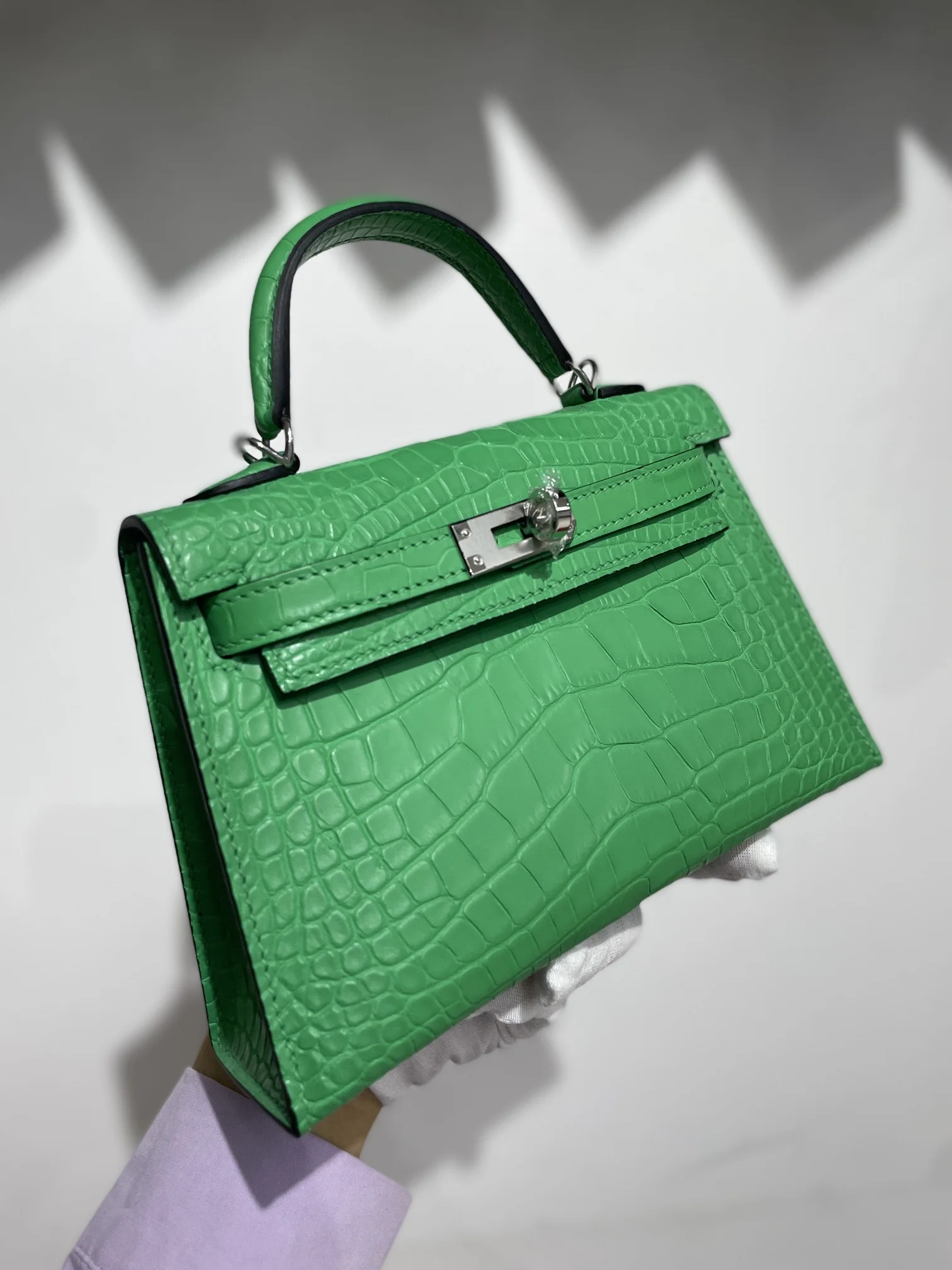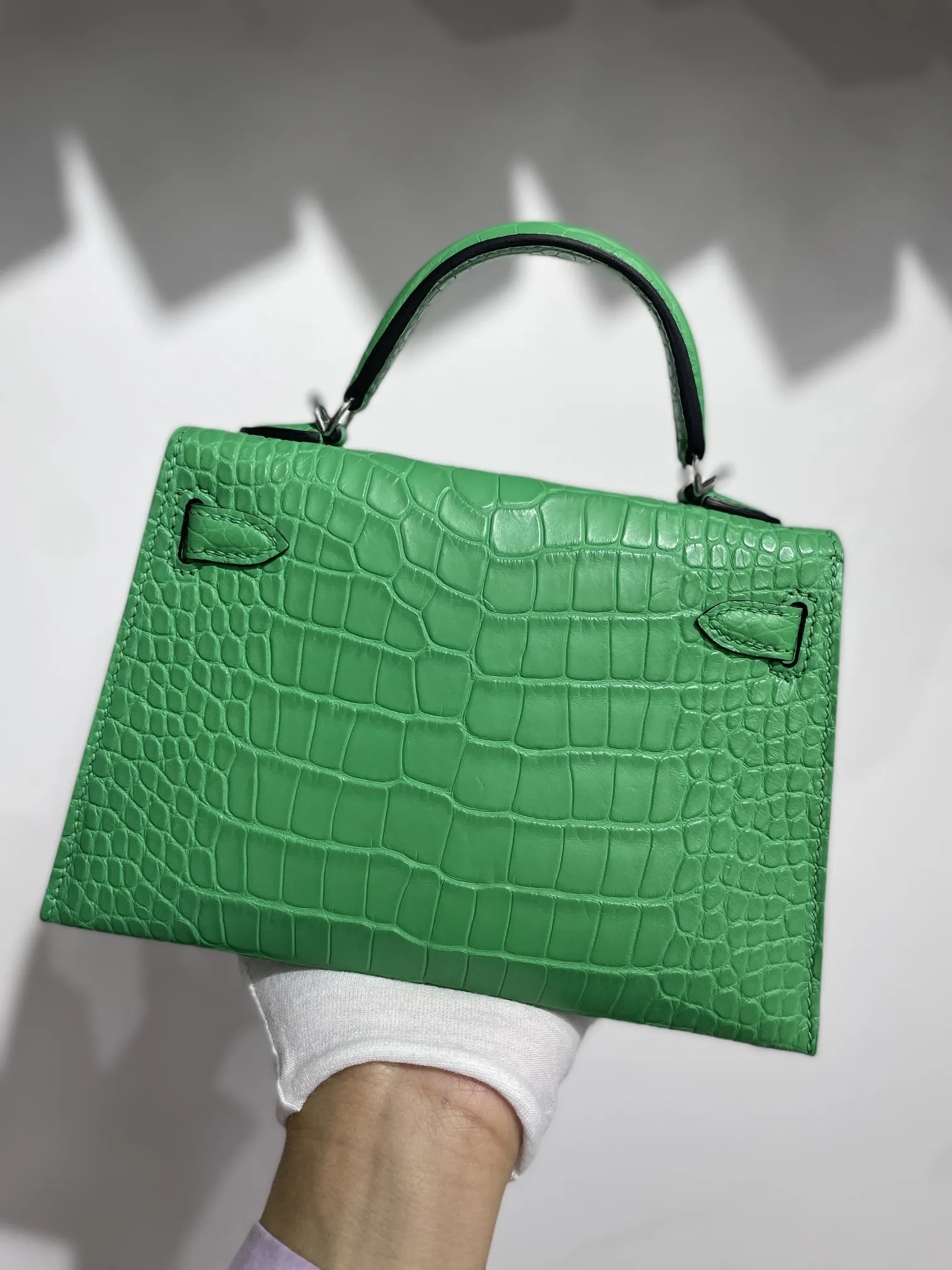 Kelly II 19cm Imported American Matte Alligator Leather with Silver Hardware, Hand-stitched Matches the Authentic American Alligator Leather