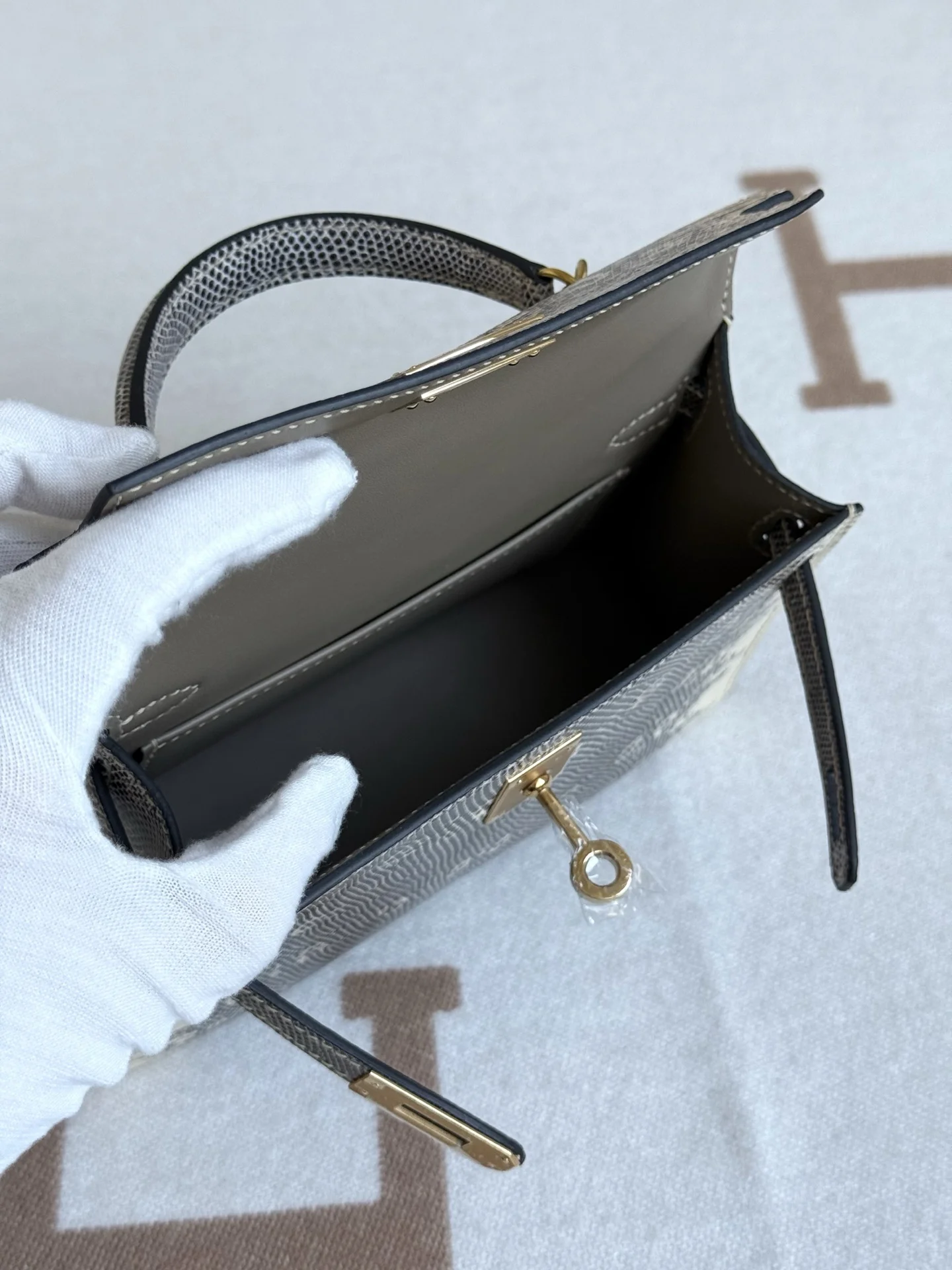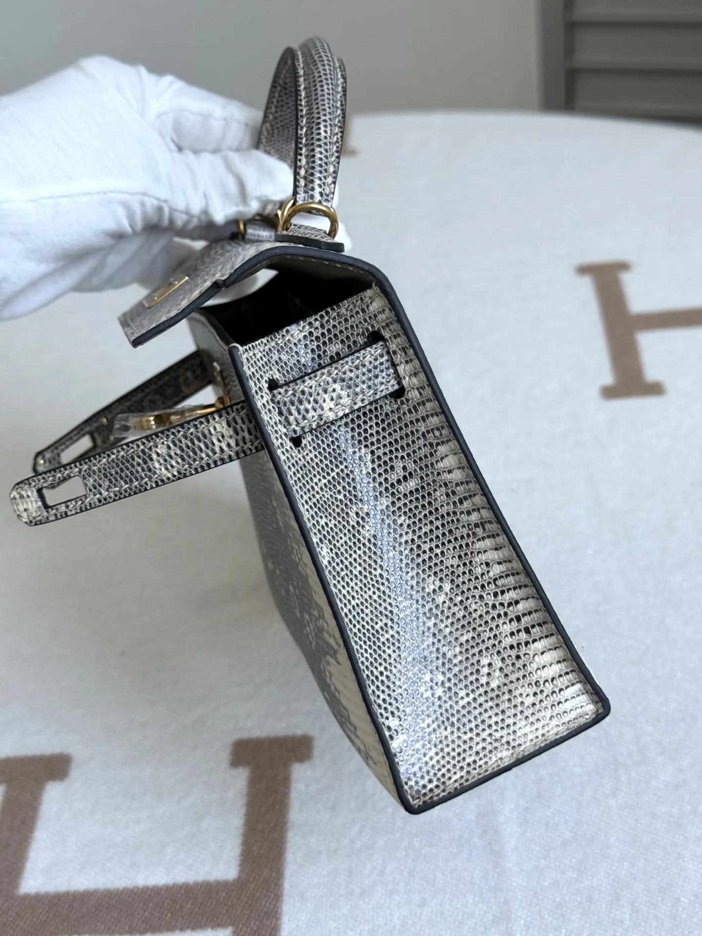 Kelly II 19cm Imported Original Lizard Skin: Desert, Full Set of Hand-Hammered Hardware, Hand-Sewn Wax Thread, Actual Photo [Color]