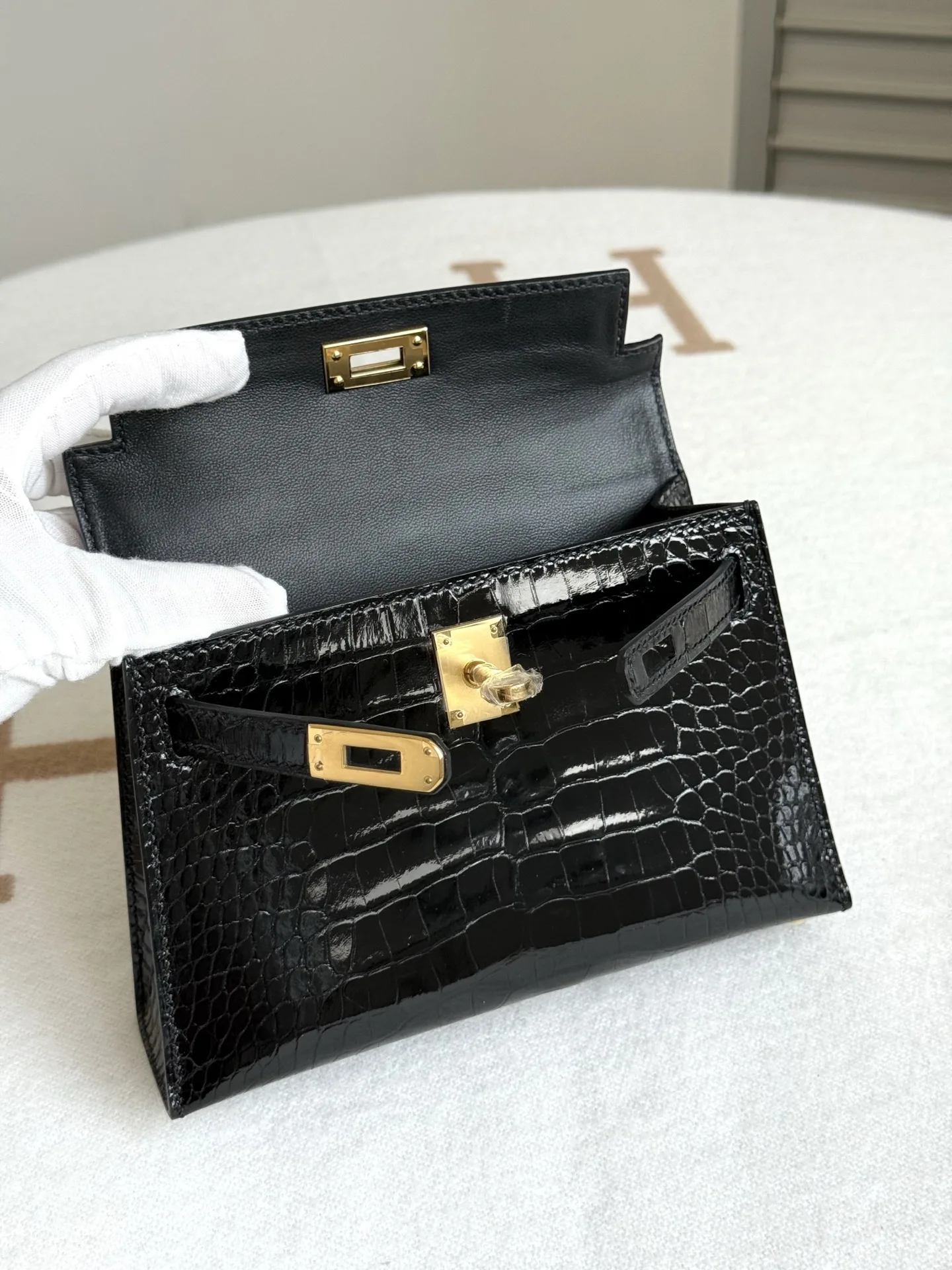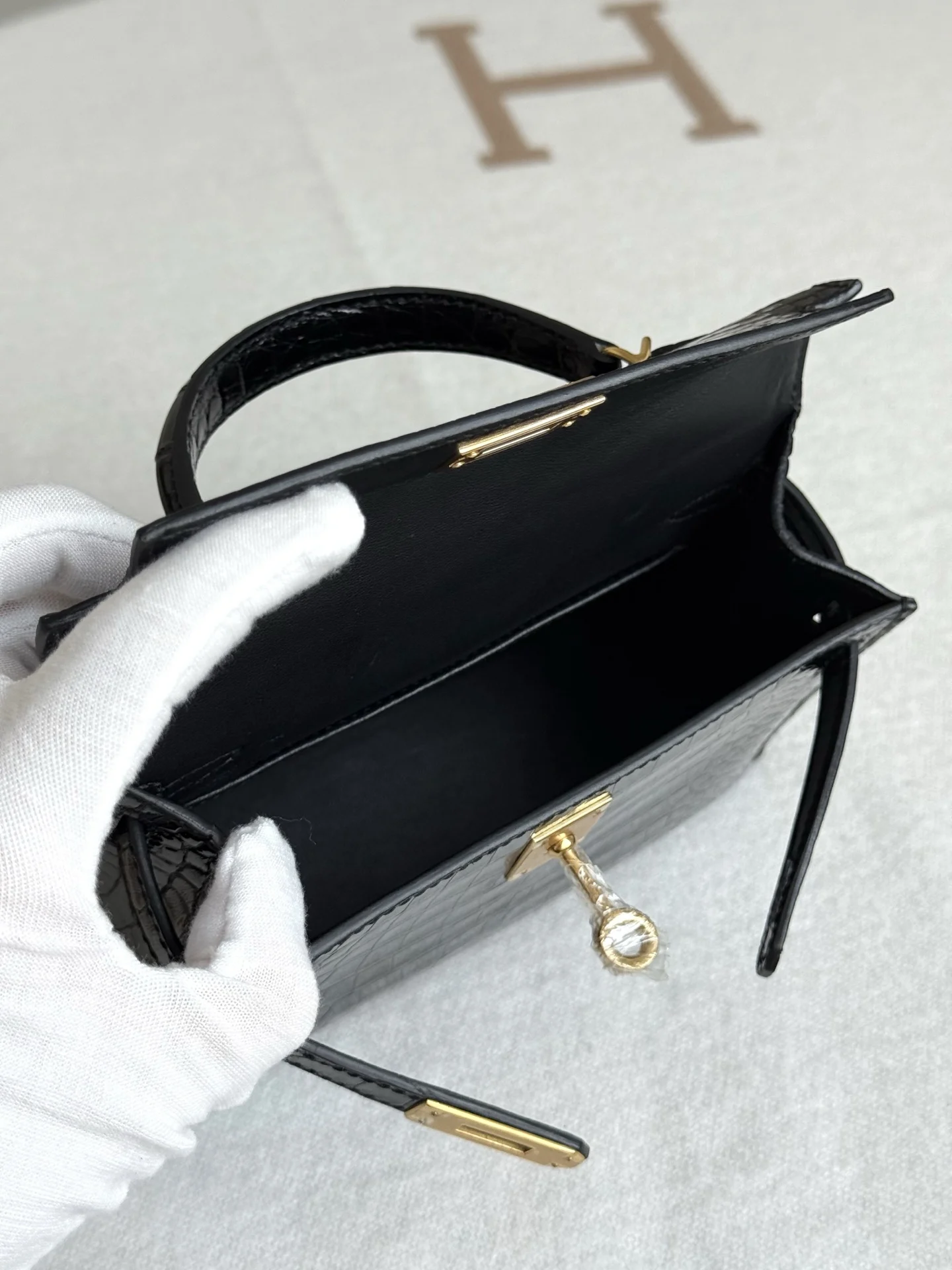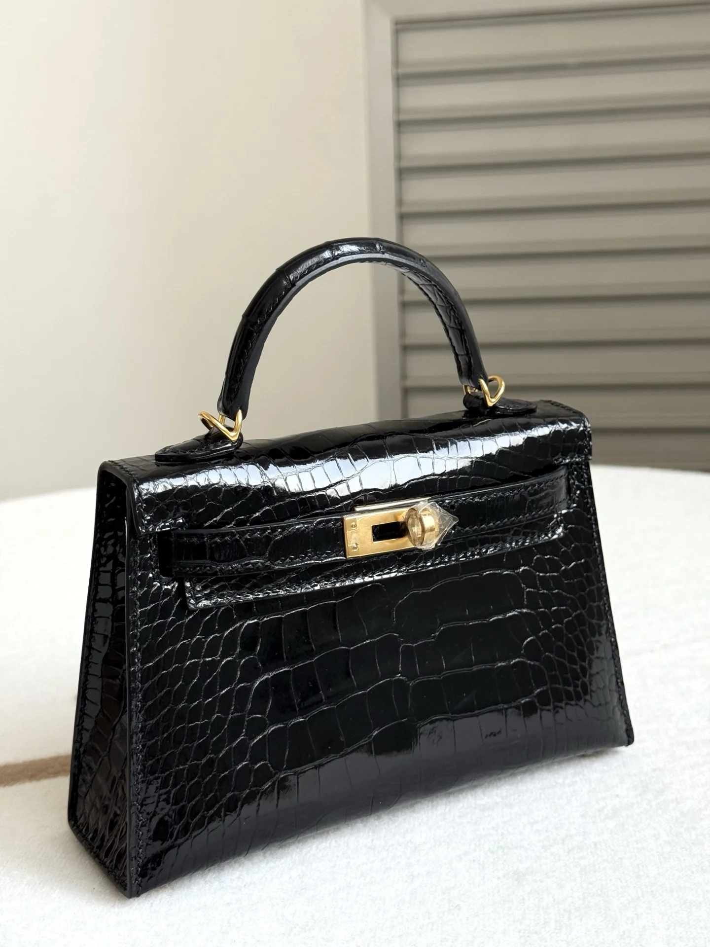 Authentic replica of the boutique s American alligator Kelly II 19cm bag, crafted from imported glossy square-scale American alligator leather, hand-hammered hardware, black color,..