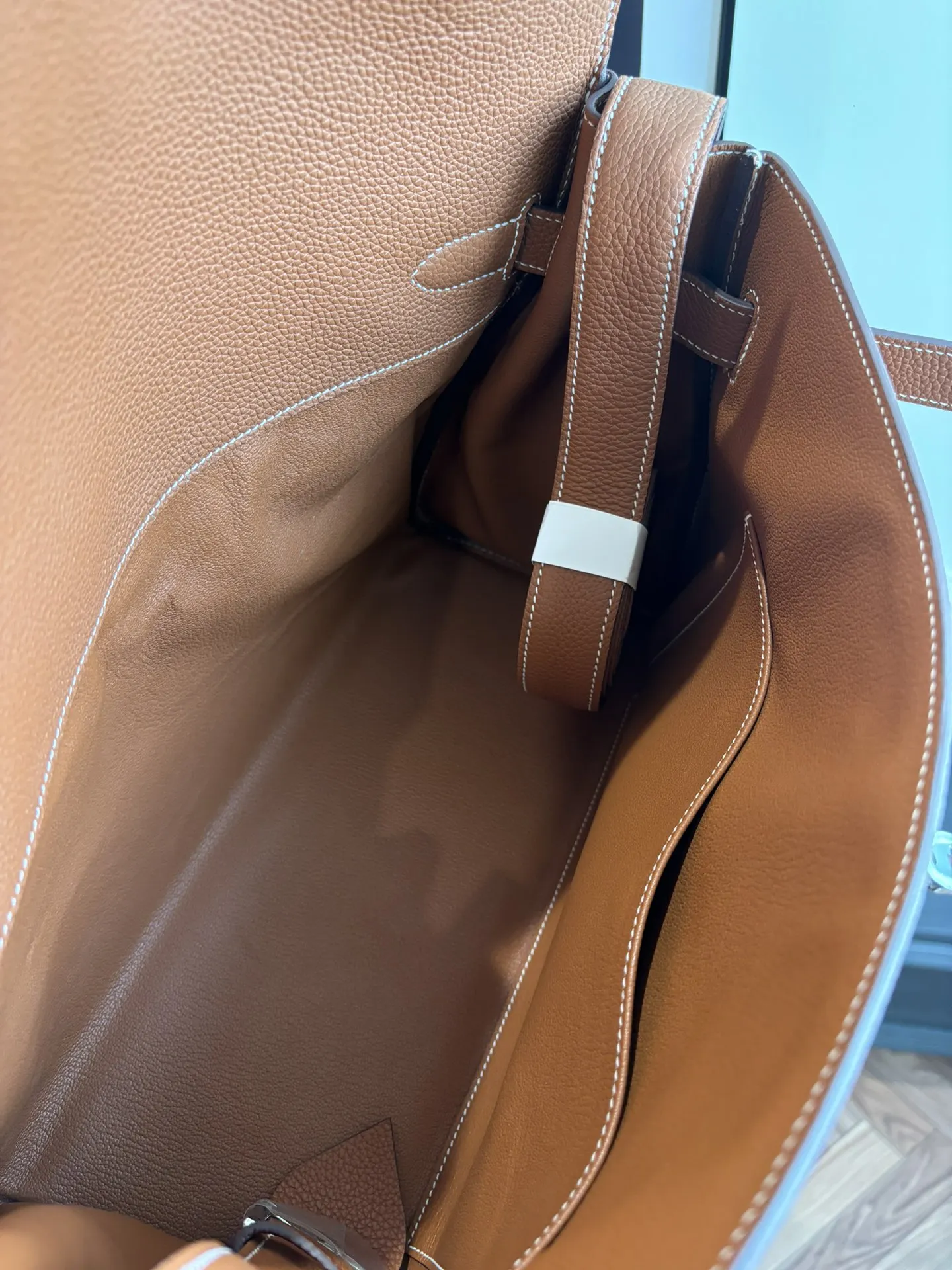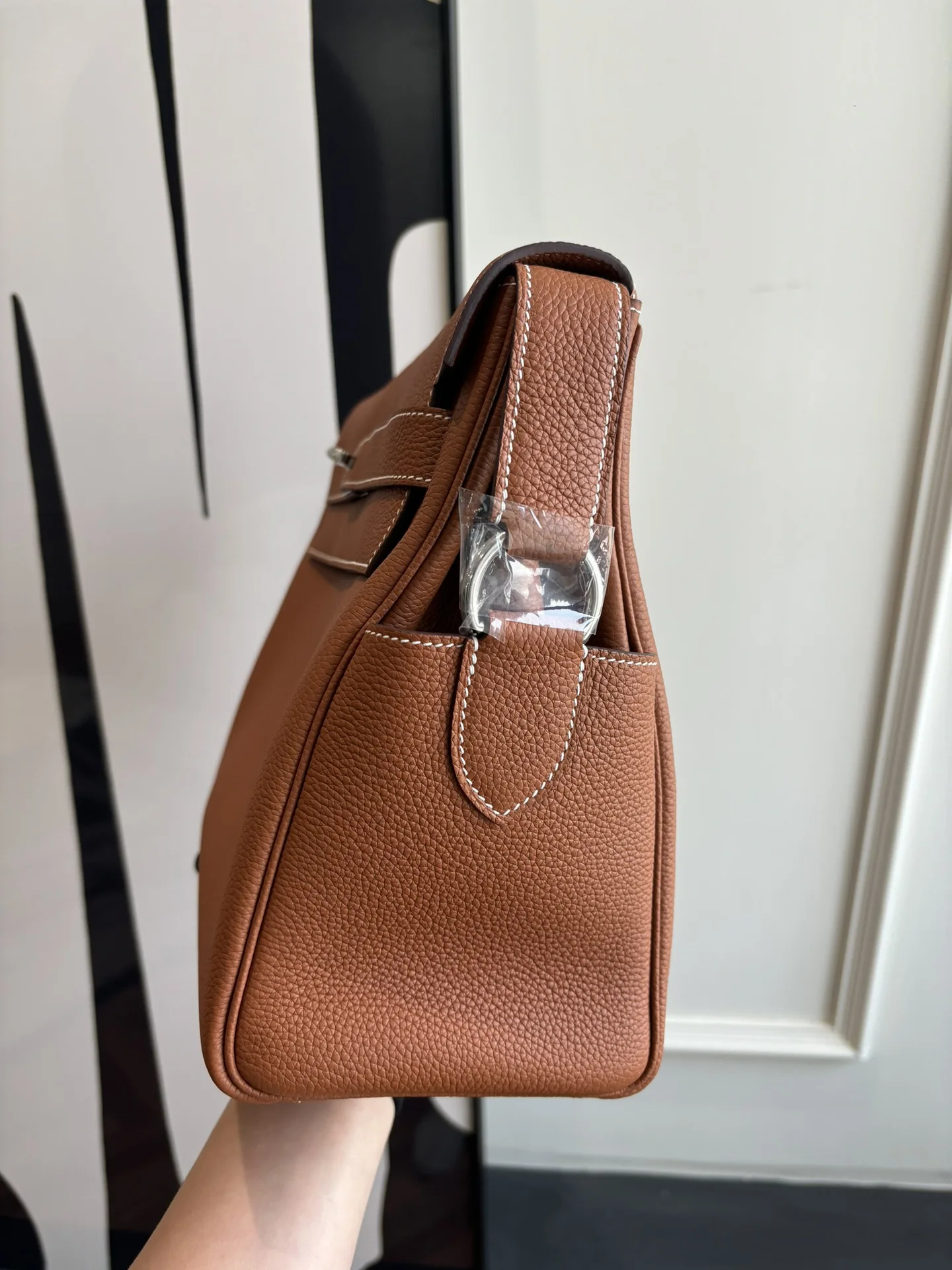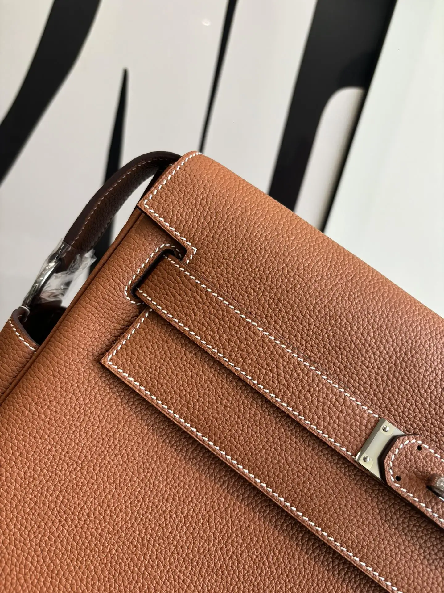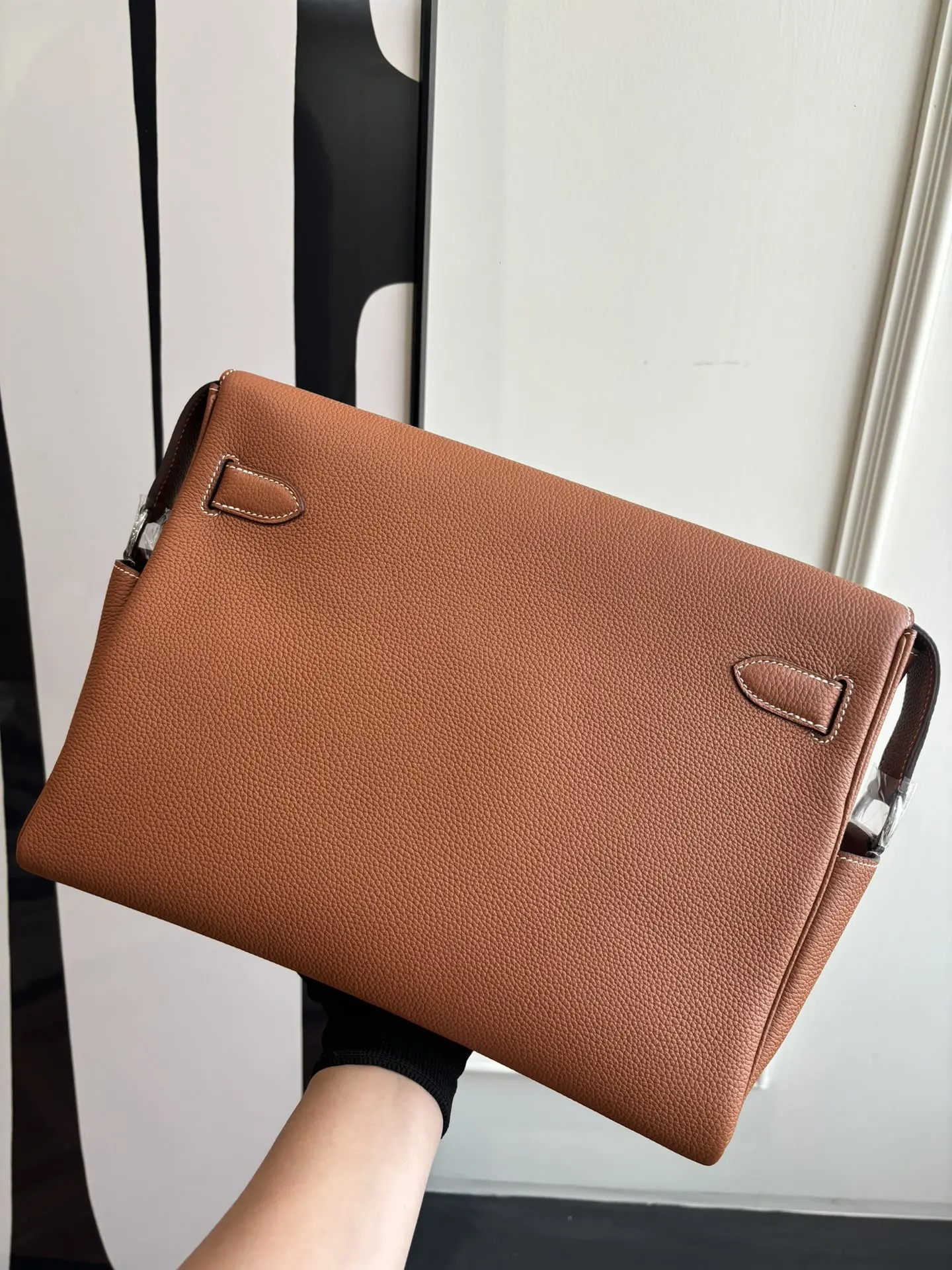 Kelly Messenger 32cm Large Model is finally released! Gold Brown with Silver Hardware, Semi-Hand Stitched Waxed Thread. A unisex item that looks great on both men and women. The co..