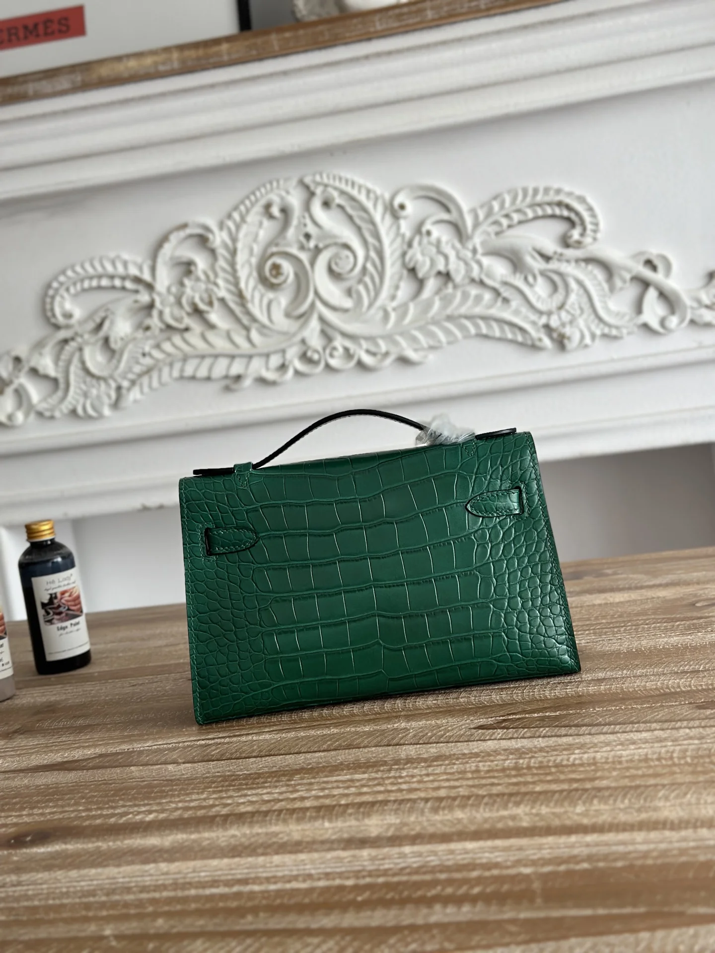 Ready Stock Semi-handmade, Commonly Known as Kelly Mini 1 Handbag Hermes Kelly Mini Crocodile-Embossed Cowhide Semi-handmade, Waxed Thread Stitching Color: Dark Green, Silver Hardware Size: 22cm