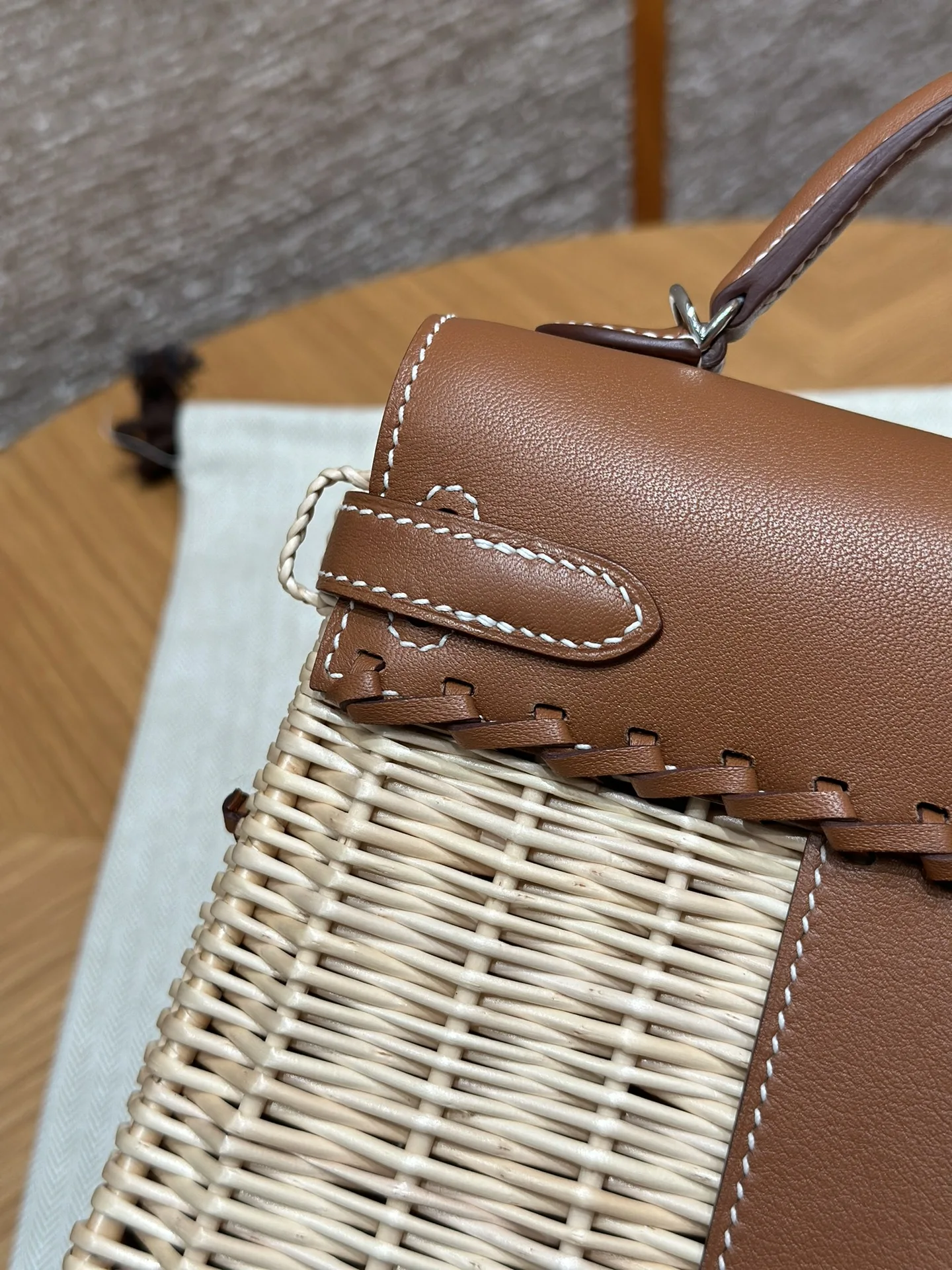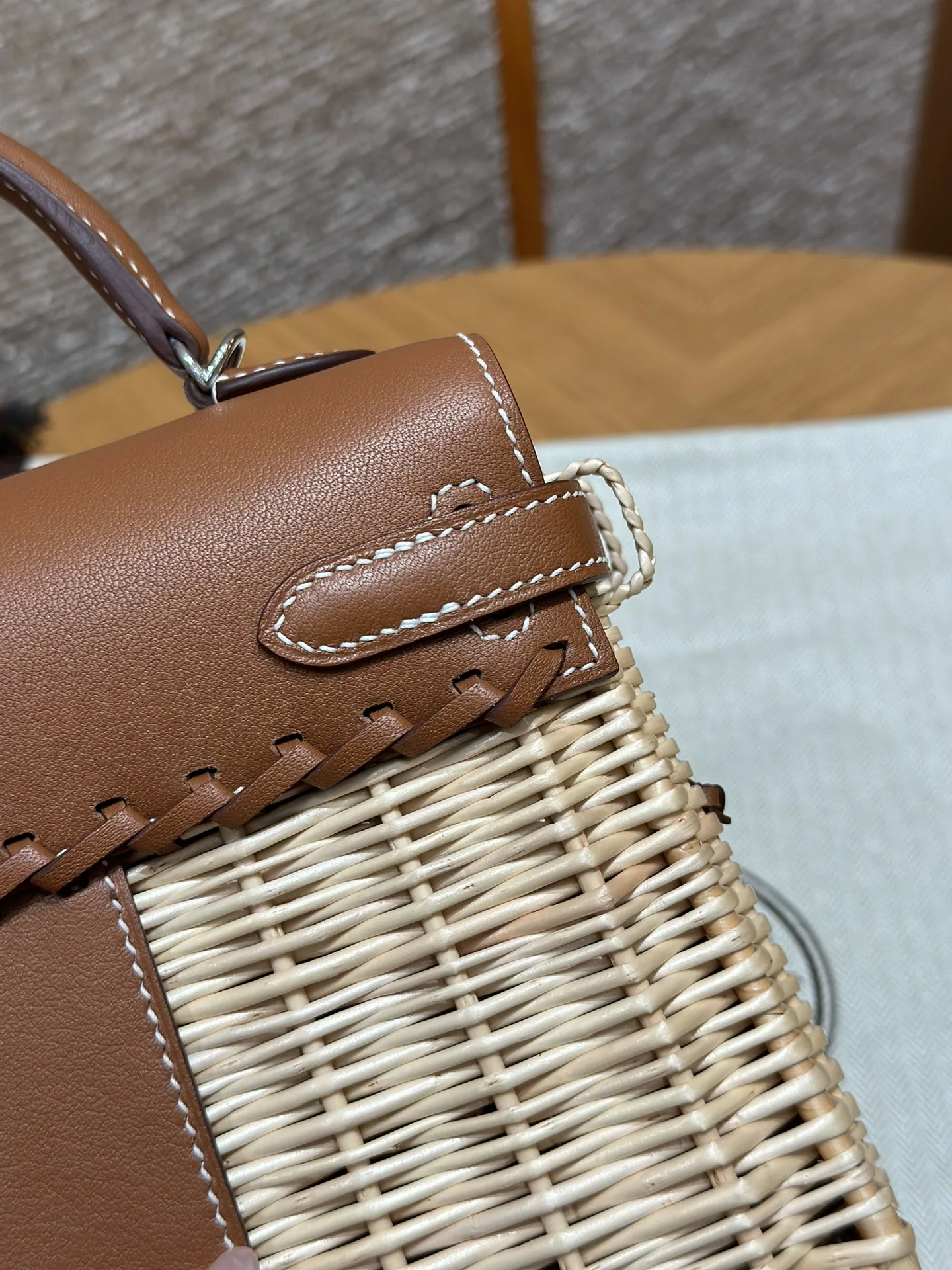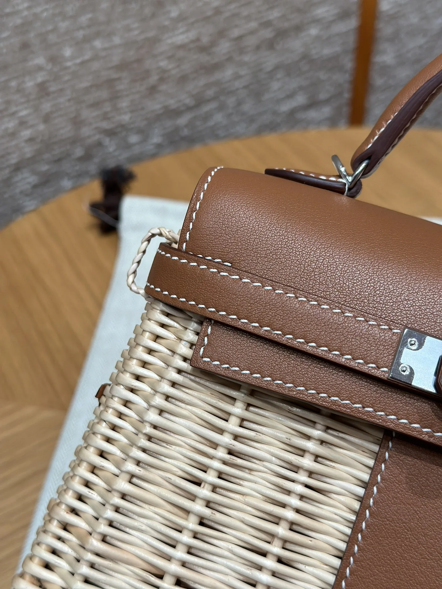 Kelly Picnic 20cm Picnic Bag, Imported Original Swift Leather with Woven Wicker, Gold Brown, Silver Hardware, Limited Edition, In-Store Synchronization, Wax Thread Stitching, Pure ..