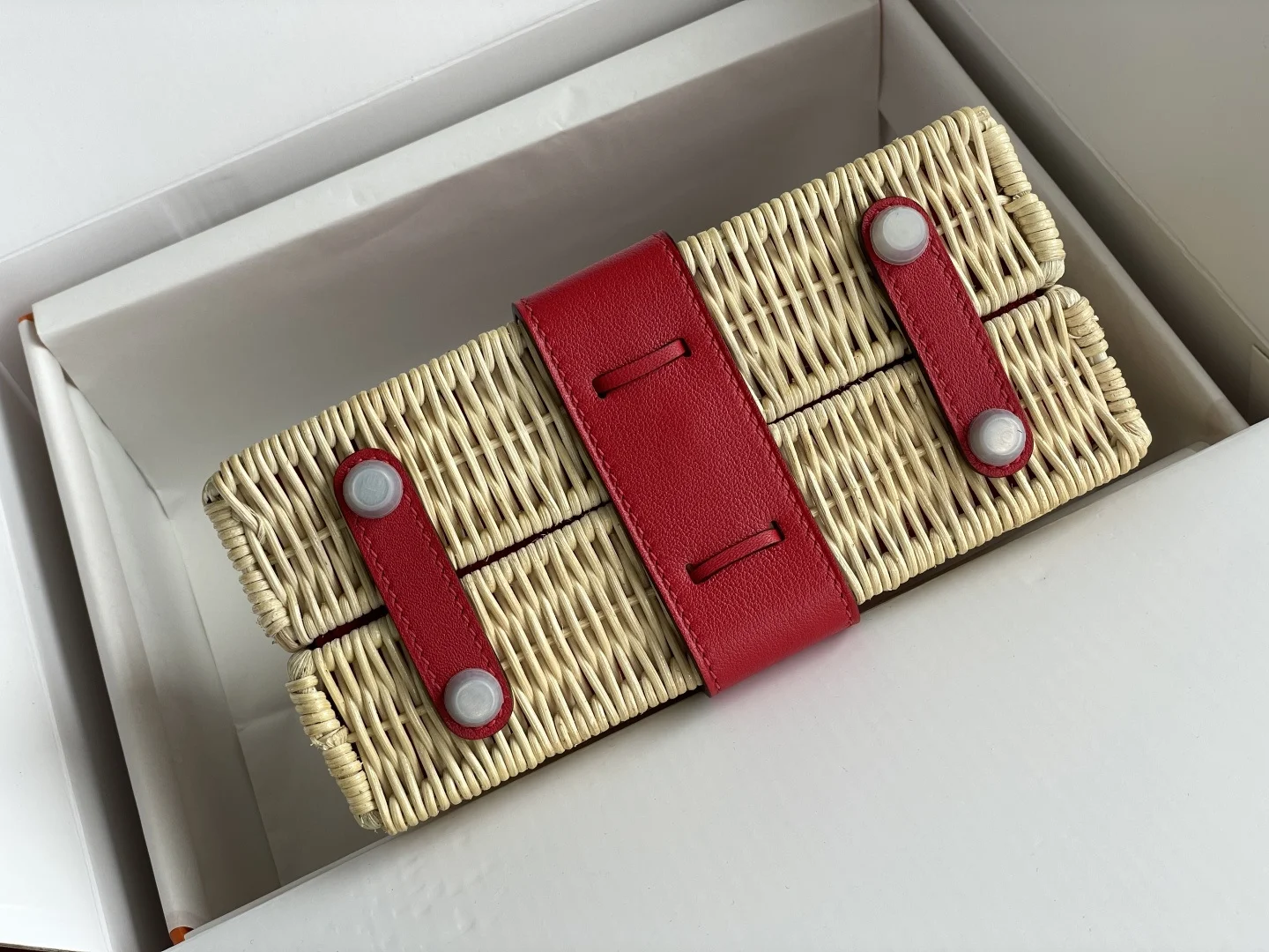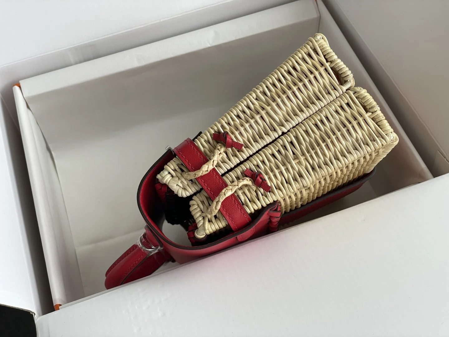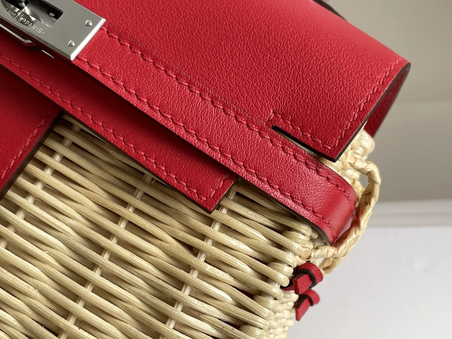 New Kelly Picnic Bag 20cm, Original Imported Swift Leather with Hand-Woven Wicker, [Bright Red] with Silver Hardware, Limited Edition, Synchronized with Boutique, Wax Thread Sewin..