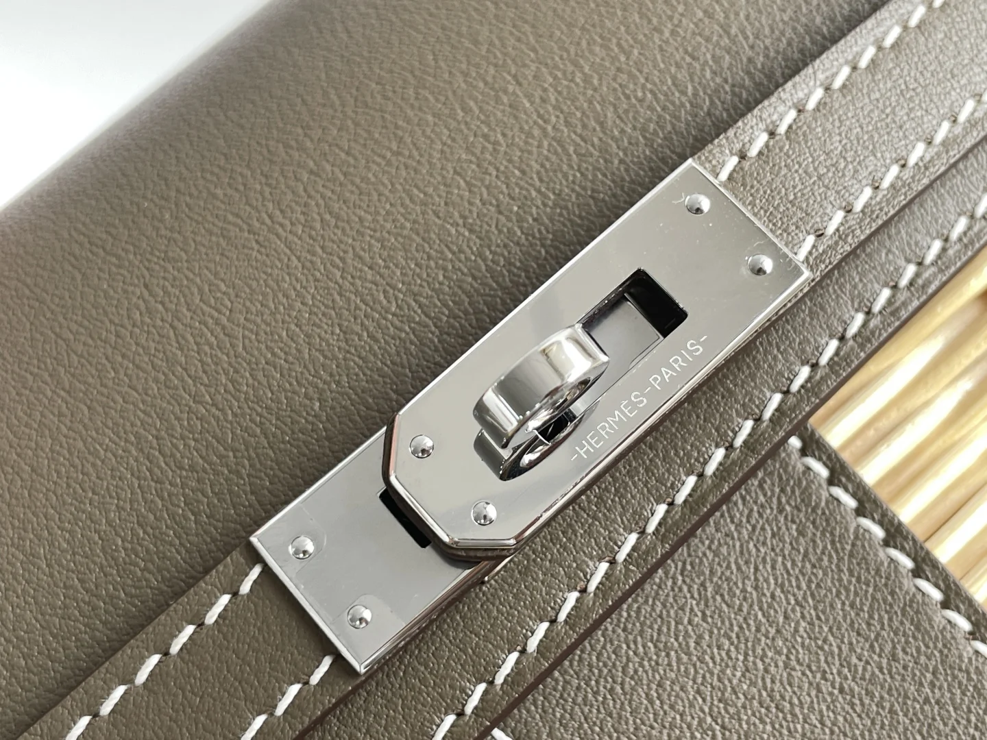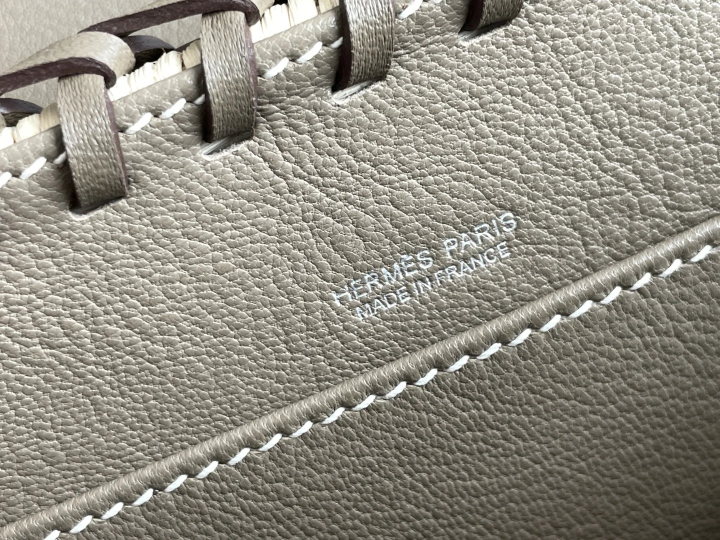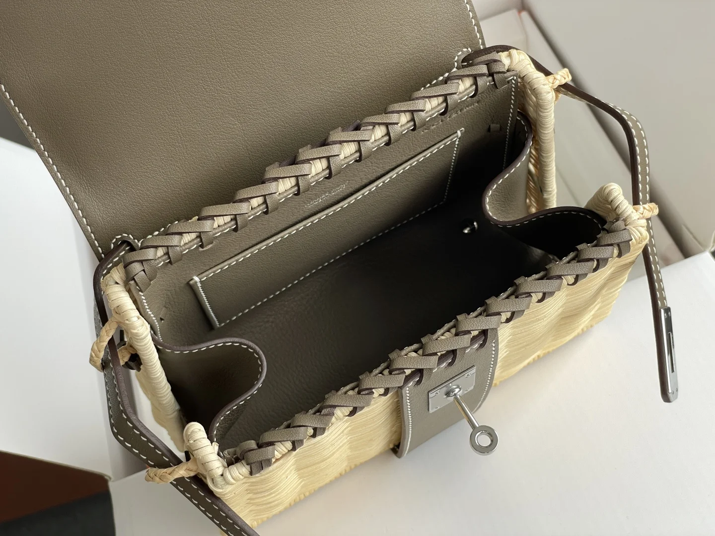 New Kelly Picnic Bag 20cm, Original Imported Swift Leather with Hand-Woven Wicker, Elephant Grey, Silver Hardware, Limited Edition, Boutique Synchronization, Wax Thread Stitching, Pure Steel Hardware