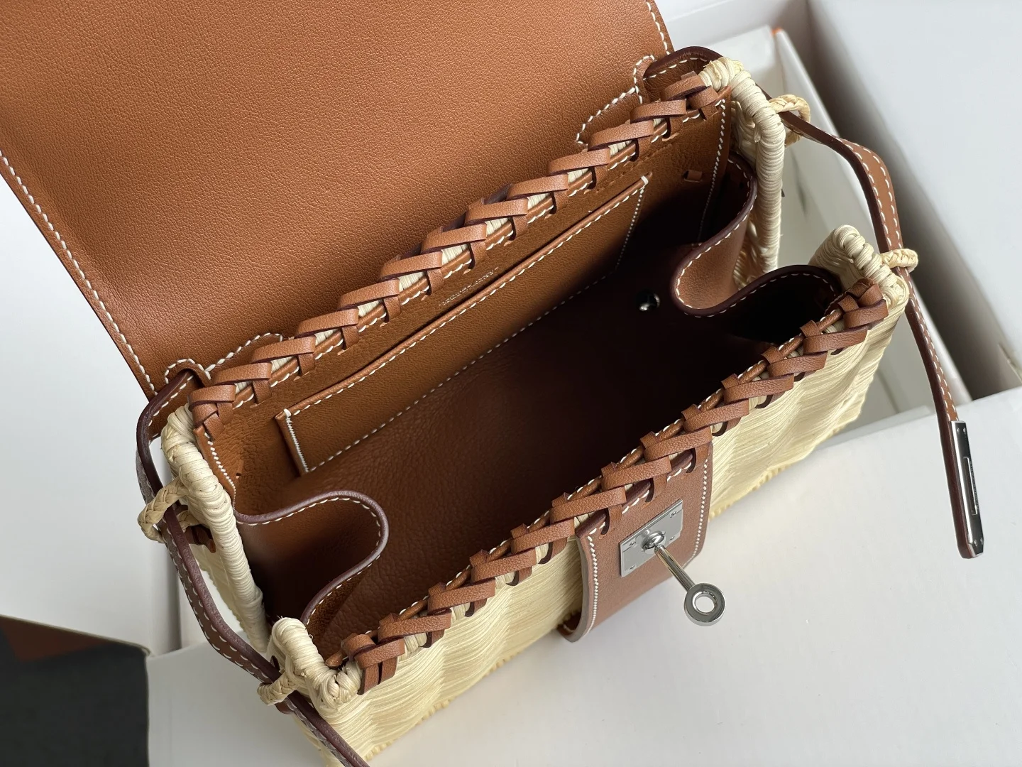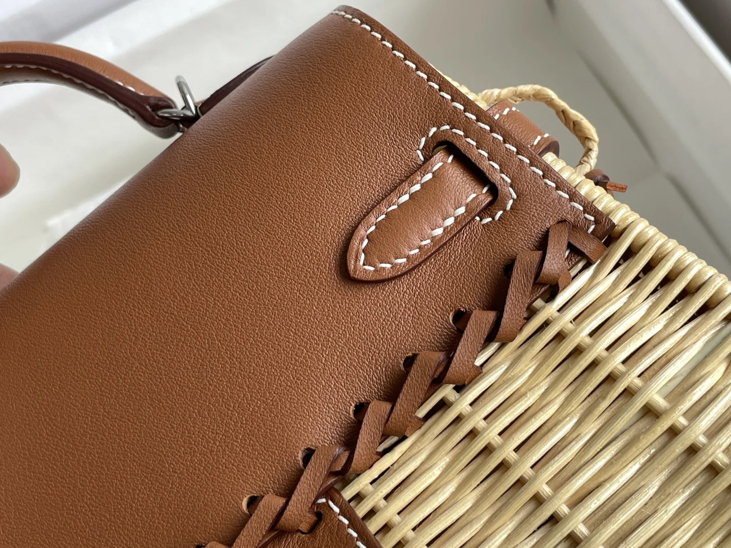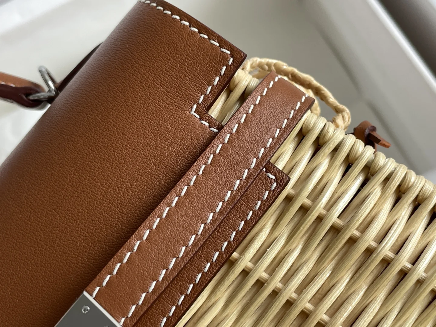 New Kelly Picnic Bag 20cm, Original Imported Swift Leather with Hand-Woven Wicker, Gold Brown, Silver Hardware, Limited Edition, Synchronized with Boutique, Wax Thread Stitching, Pure Steel Hardware
