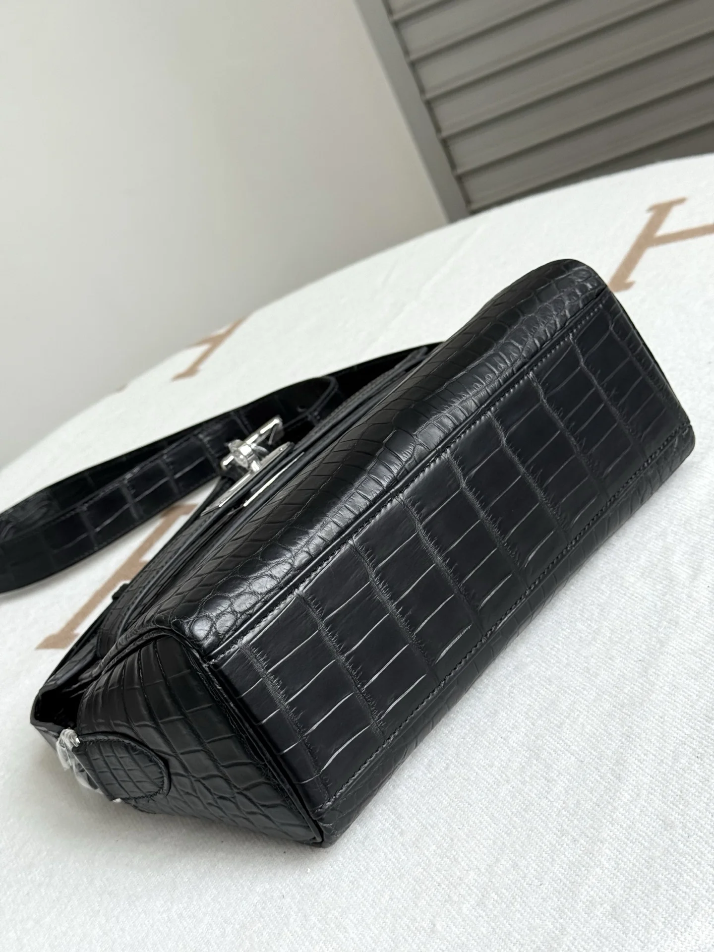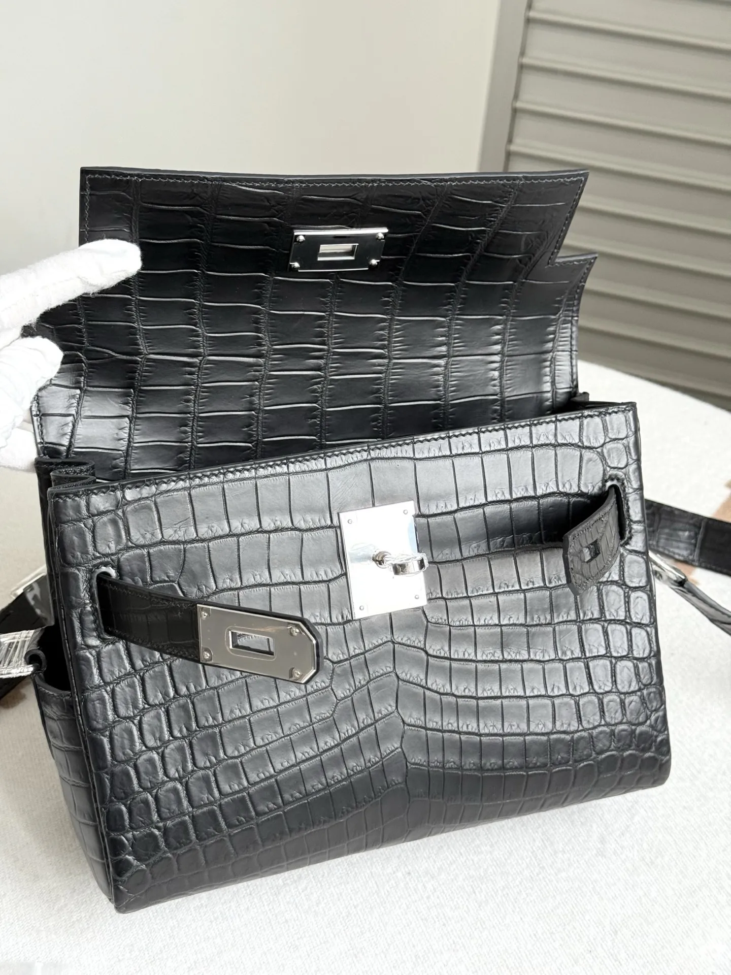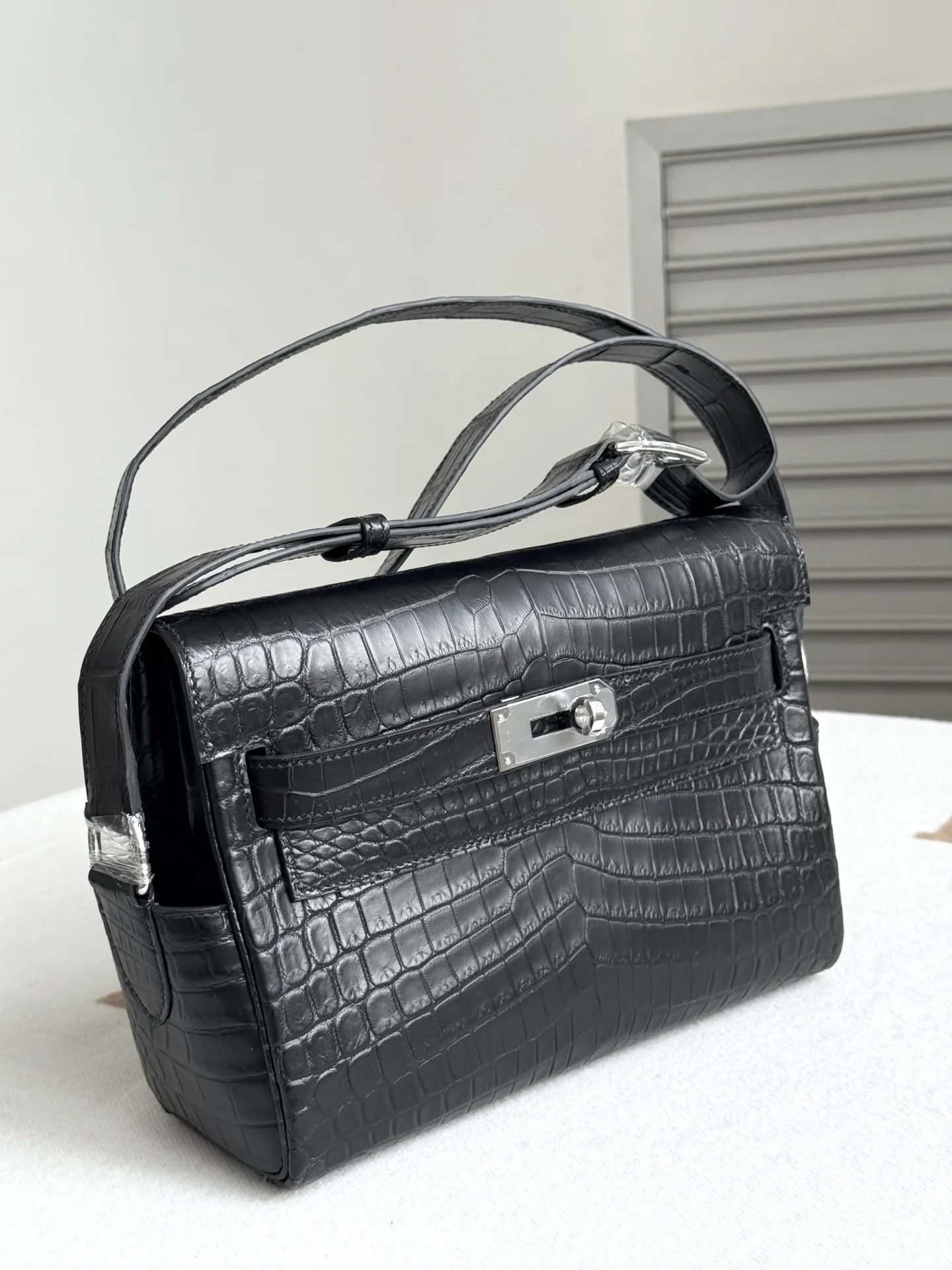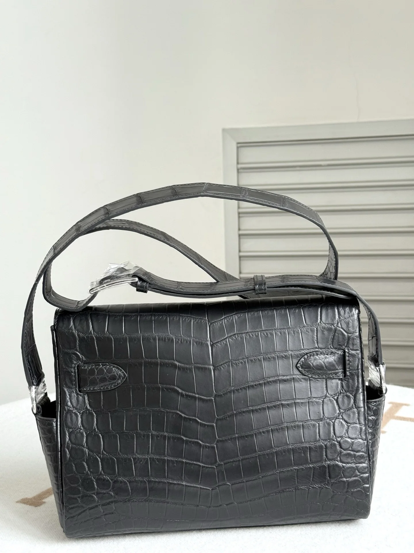 Imported Nile matte crocodile leather, Kelly Messenger Bag 25cm, cut from three pieces of belly skin. Lined with imported lambskin, full set of hand-hammered hardware, hand-stitche..