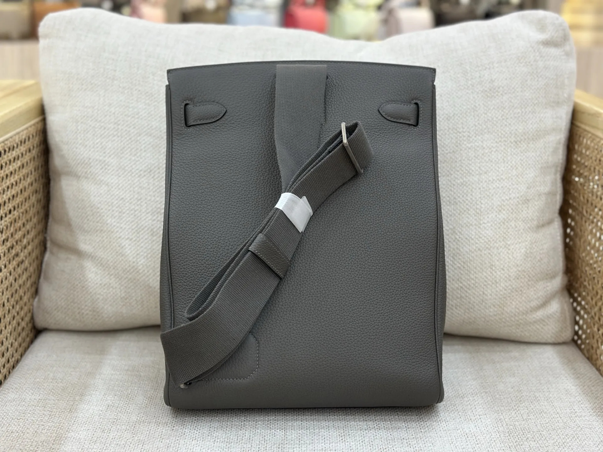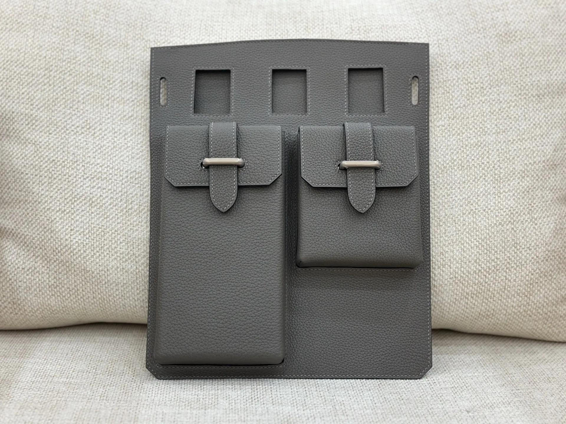 Semi-handmade latest chest bag with detachable front pocket, large size 26cm, 26x36x11cm, shoulder strap length 62 115cm. Togo top-grain cowhide with silver hardware, pewter grey, ..