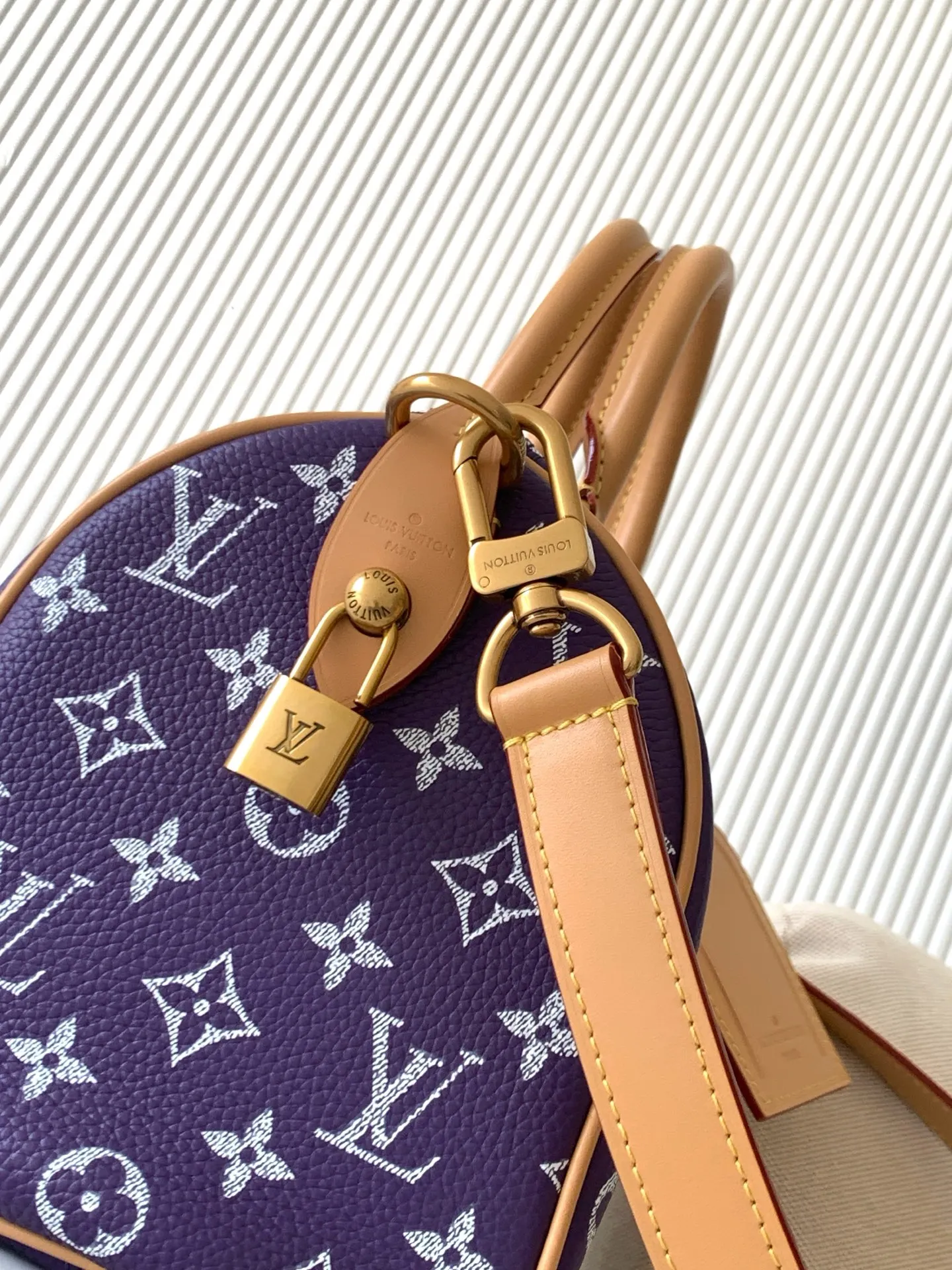 All-Steel Hardware MB163c01 Variable Code Chip Model M11562 Purple. This Speedy P9 Bandouliere 25 handbag combines a cowhide leather body with leather trim, offering both trendy style and functionality. The lobster pattern embossed on the handle fasteners symbolizes longevity and prosperity in Japanese culture, continuing the iconic elements of the Speedy P9 series along with the removable leather storage pouch. Detailed features: 25 x 15 x 15 cm (Length x Height x Width). Soft cowhide leather. Cowhide leather trim. Sheepskin lining. Metal hardware. Main compartment with padlock zipper. Interior pocket. Removable leather storage pouch. Name tag. Key bell. Strap: Removable and adjustable. Strap drop: 55.0 cm. Adjustable strap drop: 63.0 cm. Handle: Double handle.