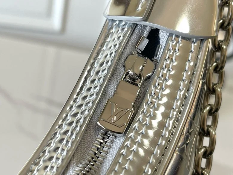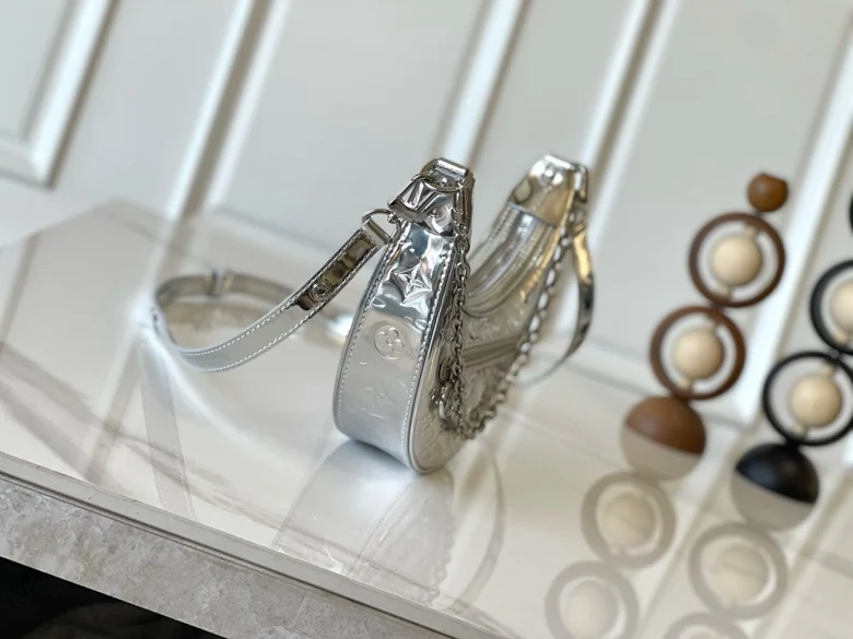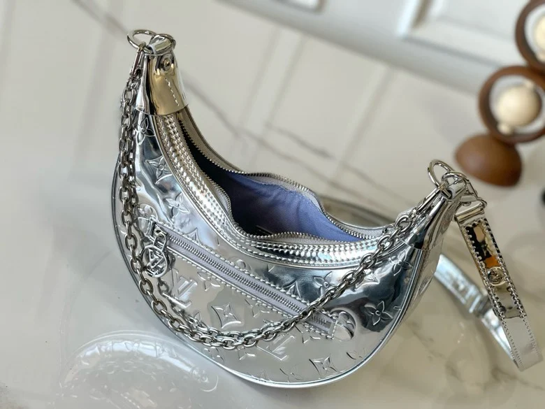 M11833 Silver Moon, a color-shifting chip version. This petite Loop handbag from the LV Ski Collection draws inspiration from the House s classic metal trunks of 1892. Monogram Miroir effects are rendered on Monogram-embossed coated canvas, lending a retro-futuristic feel to traditional aesthetics. The adjustable leather strap and chain are both removable, making it a flexible choice for carrying everyday essentials and long wallets from day to night. Dimensions: 23.0 x 13.0 x 6.0 cm (Length x Height x Width)