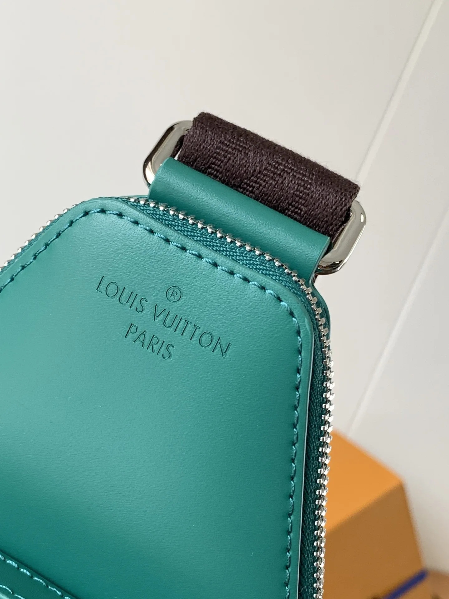 Model number: M12734 Old Flower Green. This Avenue shoulder bag is made from Damier Graphite canvas, featuring a leather patch with the Louis Vuitton Paris logo on the front external pocket. The adjustable nylon shoulder strap can be secured on both sides through D-rings, and the canvas strap and lining adhere to sustainable principles. Damier Graphite coated canvas, cowhide leather trim, fabric lining, front square metal piece, main compartment, zippered front pocket, small zippered pocket on top, shoulder strap is non-detachable and adjustable! Dimensions: 20x31x7CM