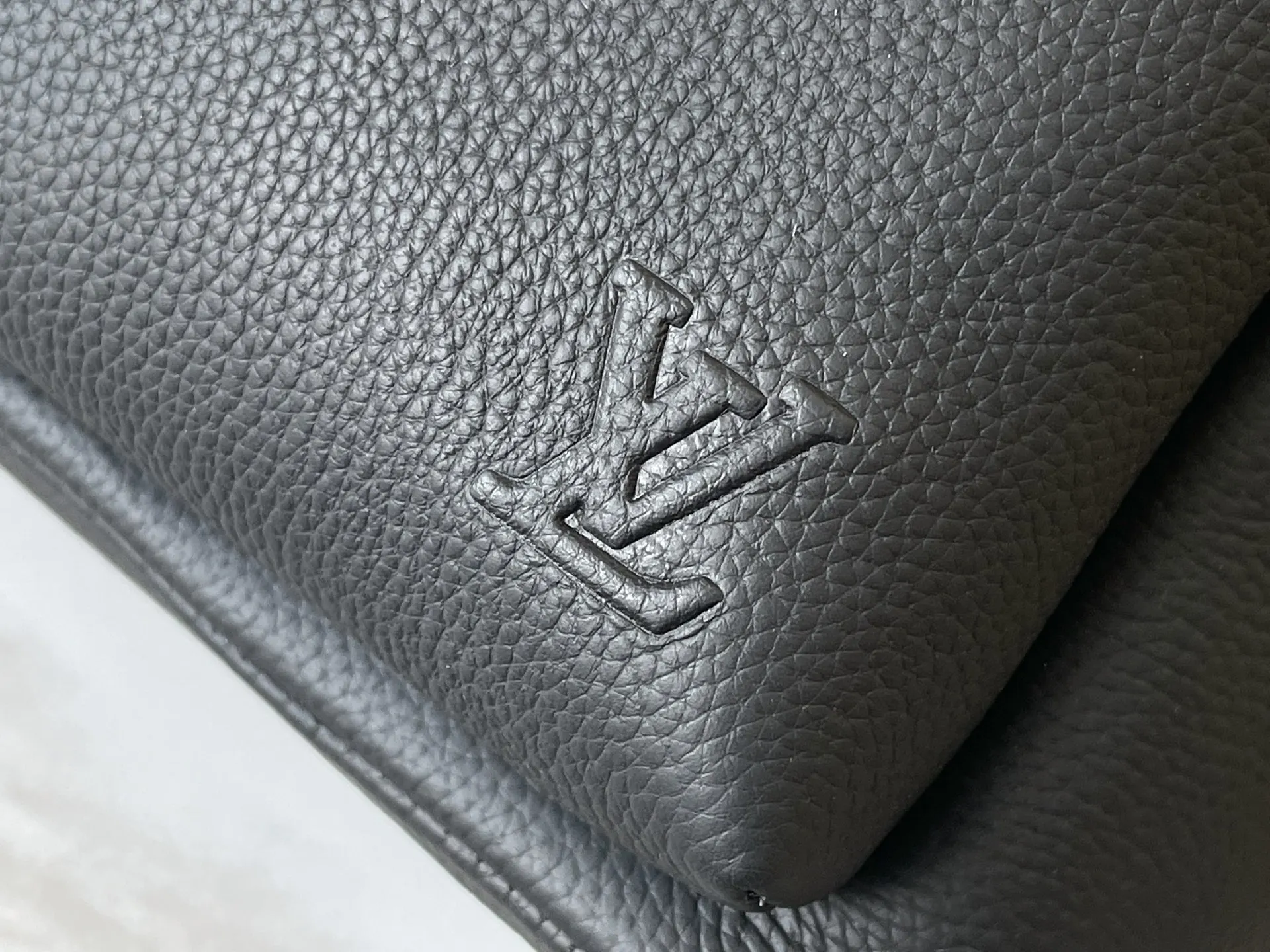 Model: M15259 [163C01 Dynamic Chip] Top-tier Original, the Discovery Work is crafted from waxed calf leather and textile lining into a spacious design, suitable for storing daily essentials. Padded compartments and pockets can respectively hold a 14-inch laptop, and the embossed LV letter zippered outer pocket allows for convenient access. Waxed calf leather Waxed calf leather trim Textile lining Metal hardware Double zipper closure Ample capacity Main compartment, can hold a 14-inch laptop Zippered front pocket, can hold an 8.3-inch tablet Padded inner patch pocket Adjustable shoulder strap Shoulder strap: non-removable, adjustable!! Size: 32x42x19CM