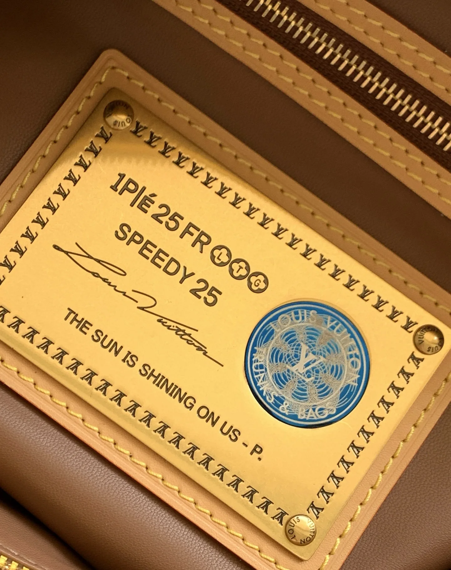All-Steel Hardware MB163c01 Variable Code Chip Model number M24426 Yellow. This Speedy P9 Bandouliere 25 handbag combines a cowhide leather body with leather trim, offering both trendy style and functional considerations. The lobster pattern embossed on the handle fasteners symbolizes longevity and prosperity in Japanese culture, continuing the iconic elements of the Speedy P9 series along with the detachable leather storage pouch. Detailed features: 25 x 15 x 15 cm (Length x Height x Width). Supple cowhide leather. Cowhide leather trim. Sheepskin lining. Metal hardware. Main compartment with padlock zipper. Interior pocket. Detachable leather storage pouch. Name tag. Key bell. Strap: Removable, adjustable. Strap drop: 55.0 cm. Maximum strap drop: 63.0 cm. Handle: Double handle.