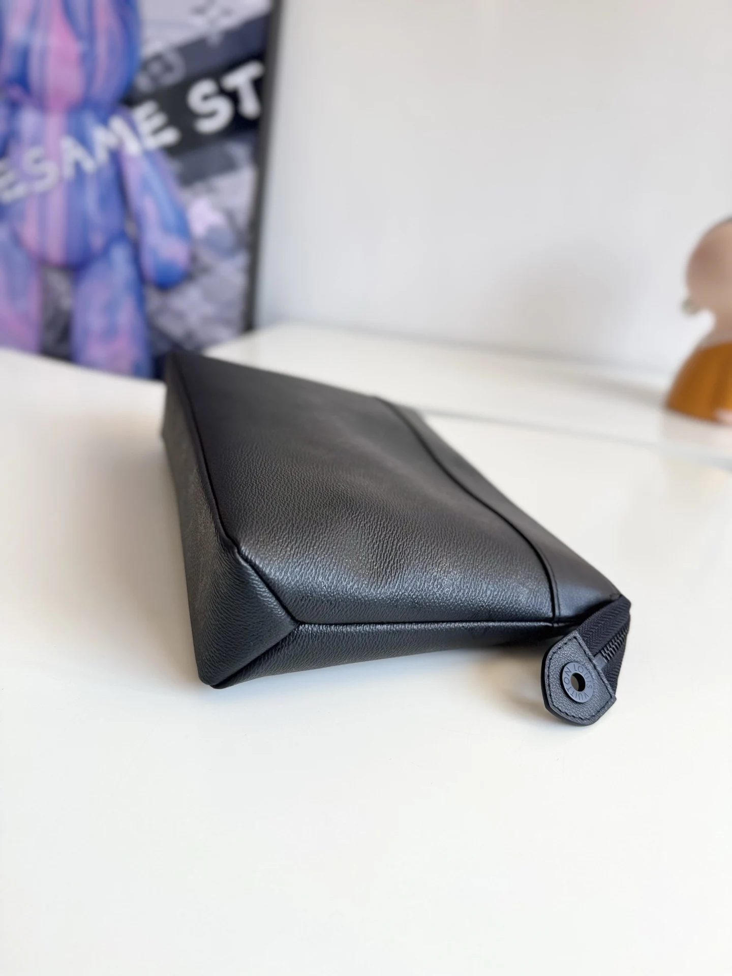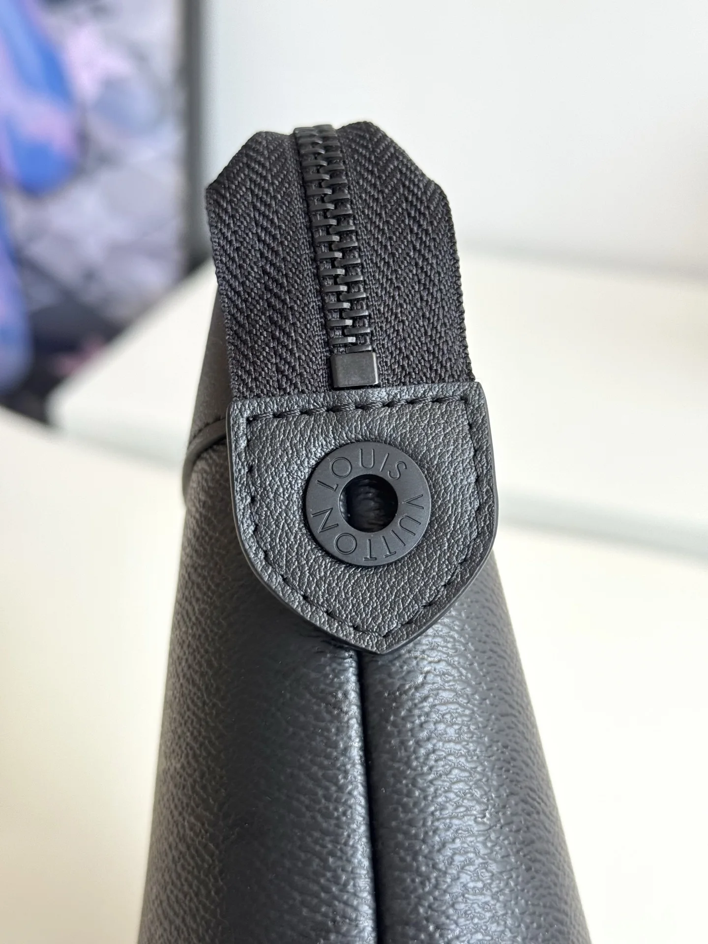 Exclusive real shot of overseas original M26741! This Pochette Voyage Souple clutch is made of Monogram Midnight coated canvas adorned with subtle Monogram floral patterns and LV letters. The soft silhouette is complemented by a fabric lining and a magnetic back pocket. Matte metal fittings and understated grained leather trim complete the overall look. Dimensions: 30×21×7.5cm