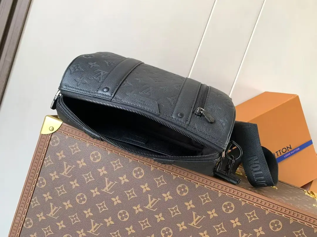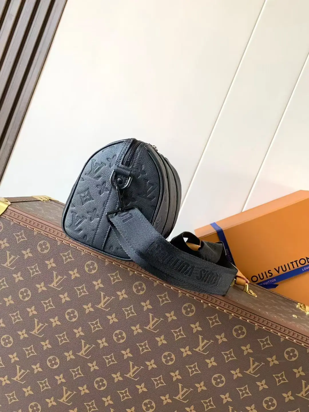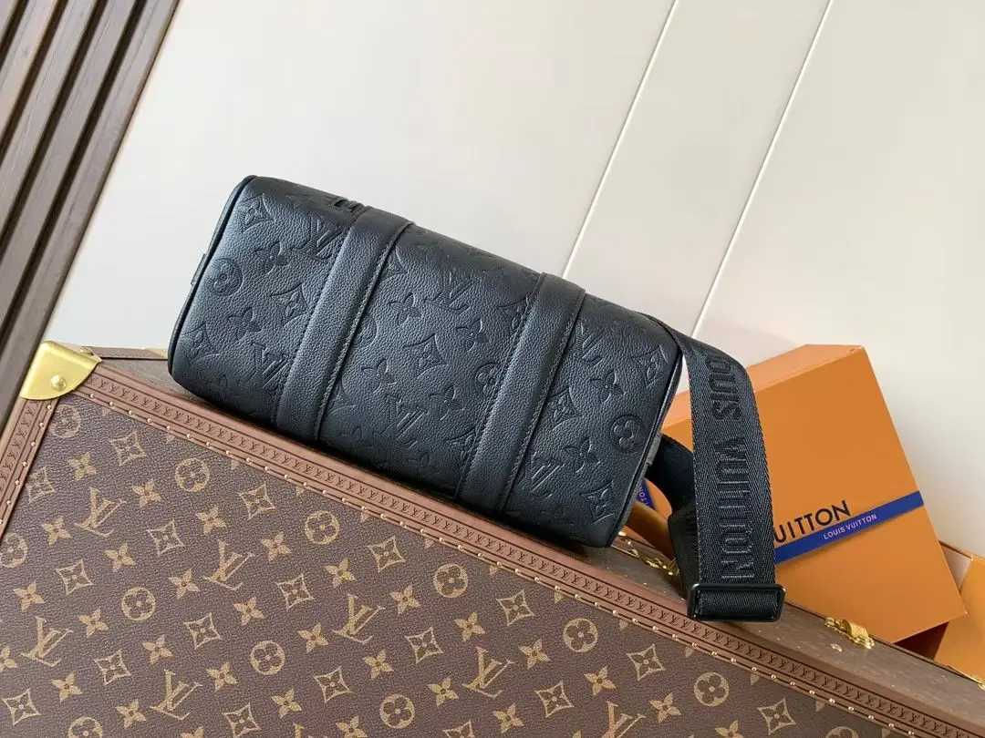 M26750, the Keepal travel bag condenses classic design, achieving this trendy urban handbag. The side design playfully presents a flip effect of the Monogram pattern, cleverly echoing Kim Jones Upside Down collection from 2018. The Monogram Eclipse canvas body is paired with a detachable shoulder strap, allowing for easy carrying of daily essentials.