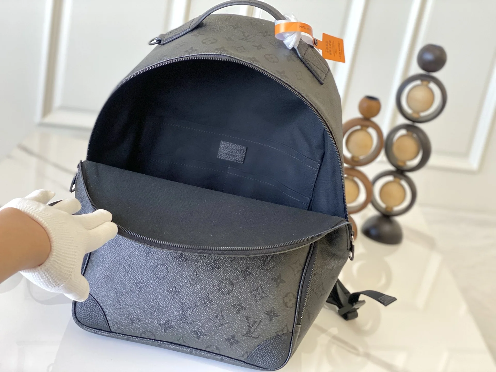Discovery Cargo Backpack M26765 Black: This Discovery series cargo backpack features a spacious front zipped pocket and is crafted from Mickey signature-printed canvas. The understated, tone-on-tone Mickey pattern lends a minimalist style to the backpack. Two open side pockets enhance practicality, while adjustable shoulder straps ensure comfortable carrying for both business trips and leisure activities. Dimensions: 30 x 39 x 19 cm